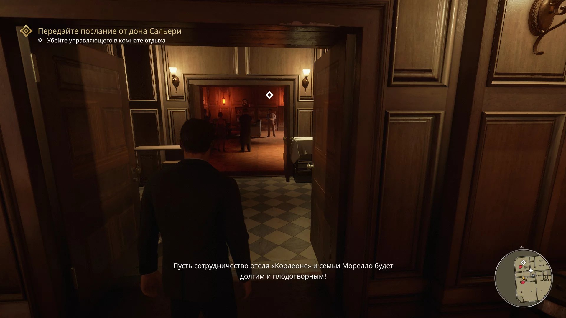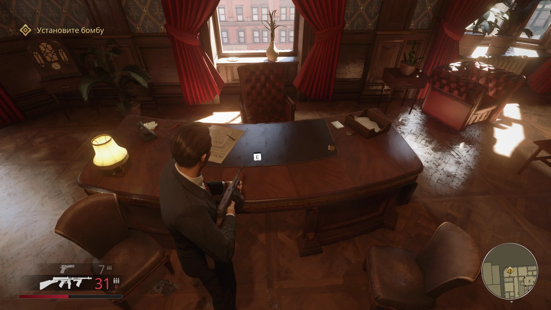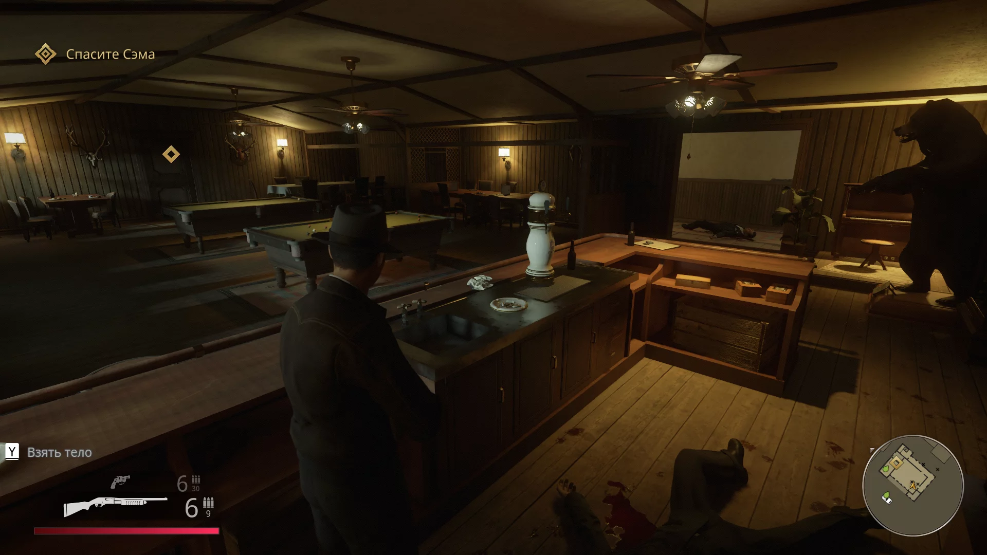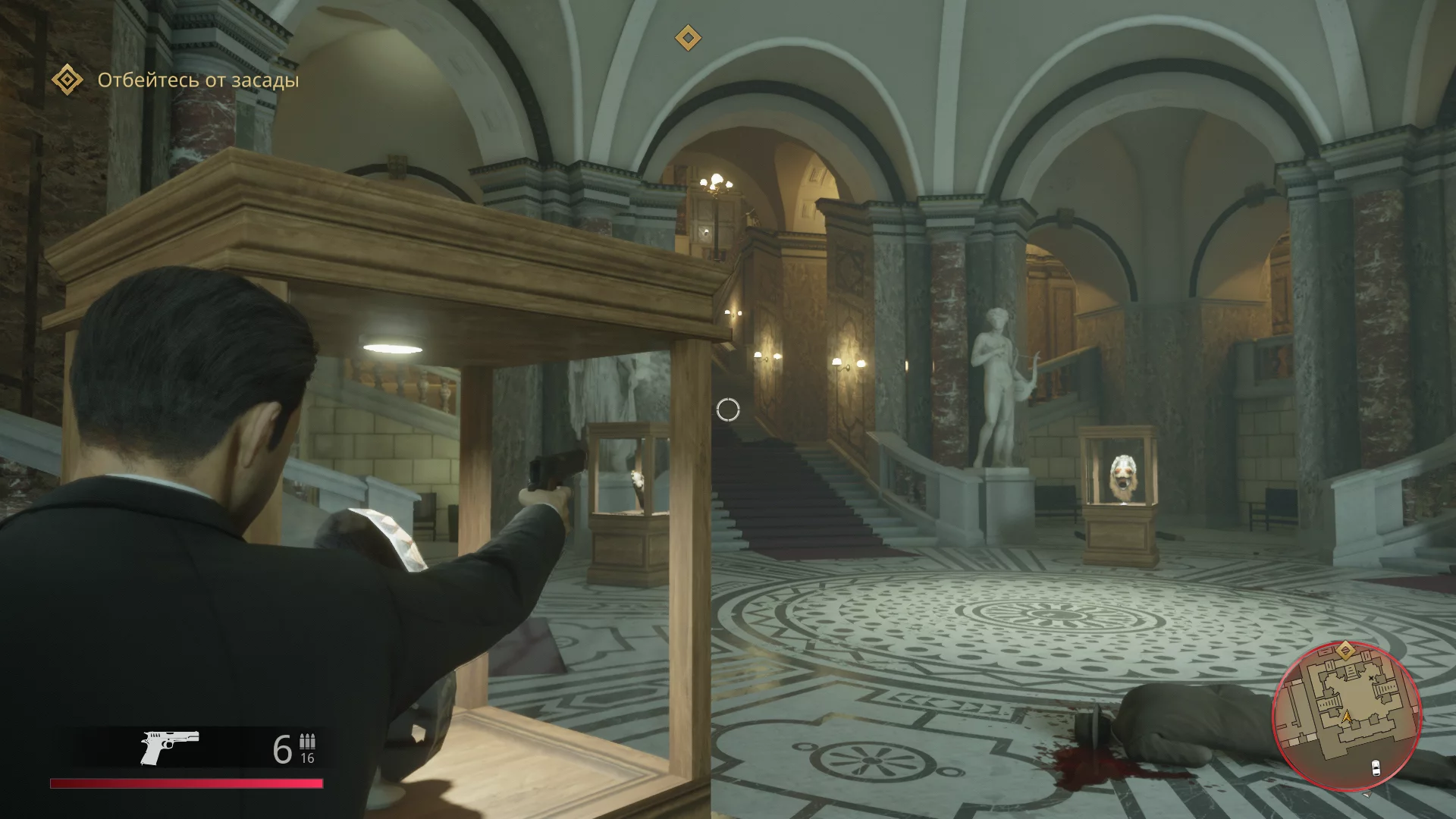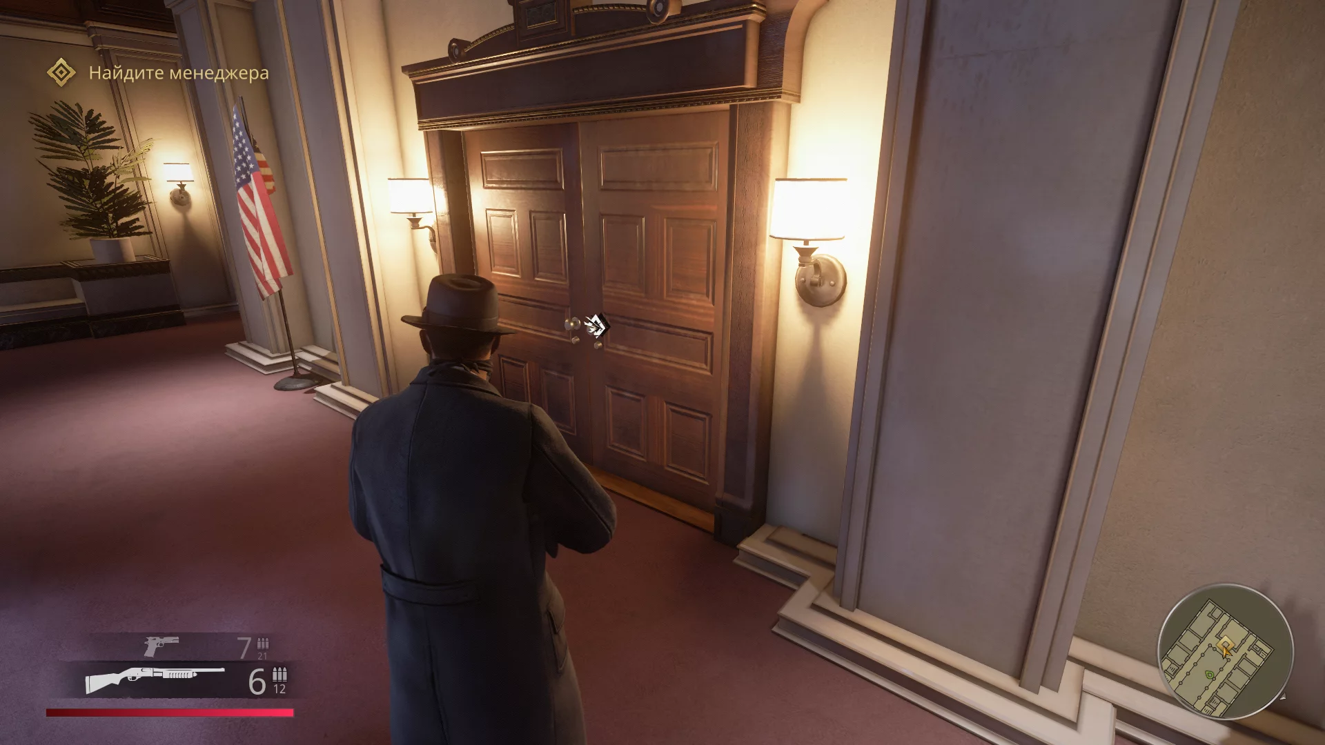 Управляющий будет в зале слева от бара. Рядом с ним находятся несколько охранников. Как только начнется стрельба, появятся еще противники. Нам нужно будет прорваться на самый верх в кабинет управляющего. Если что-то пошло не так, но ка каждом этаже можно найти аптечку.