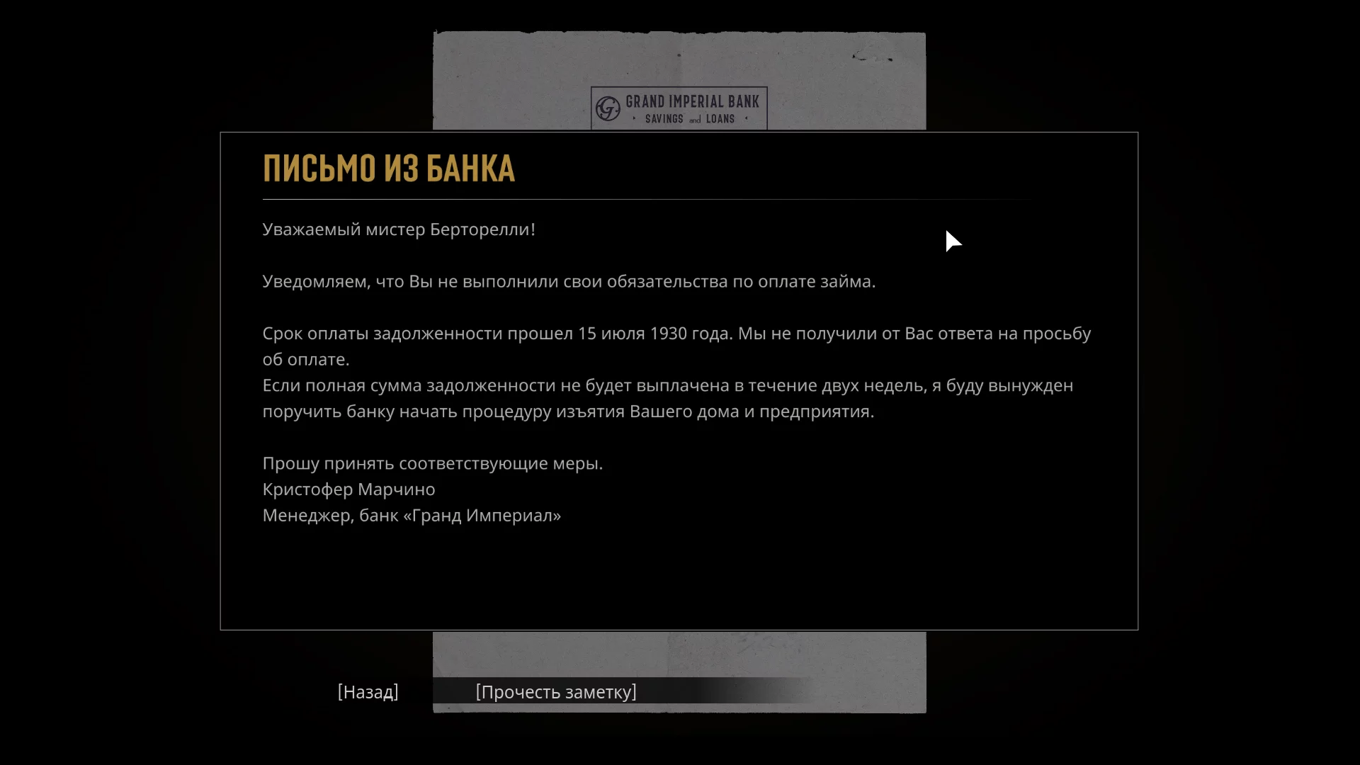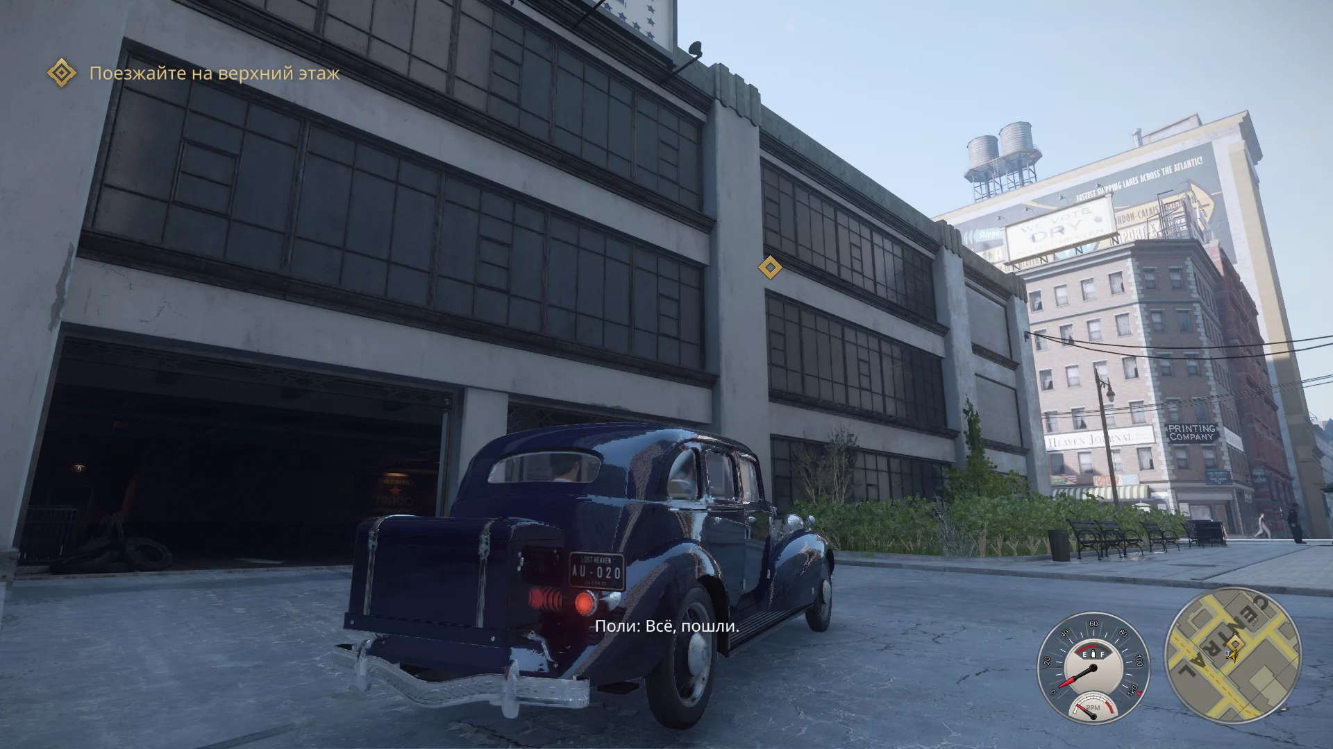 Говорим с Сальери. Теперь можно осмотреть бар: найти сигаретный вкладыш, прочитать записку и газету. Идем с Поли в соседнее здание и получаем оружие. Идем к Ральфи в гараж и берем машину.