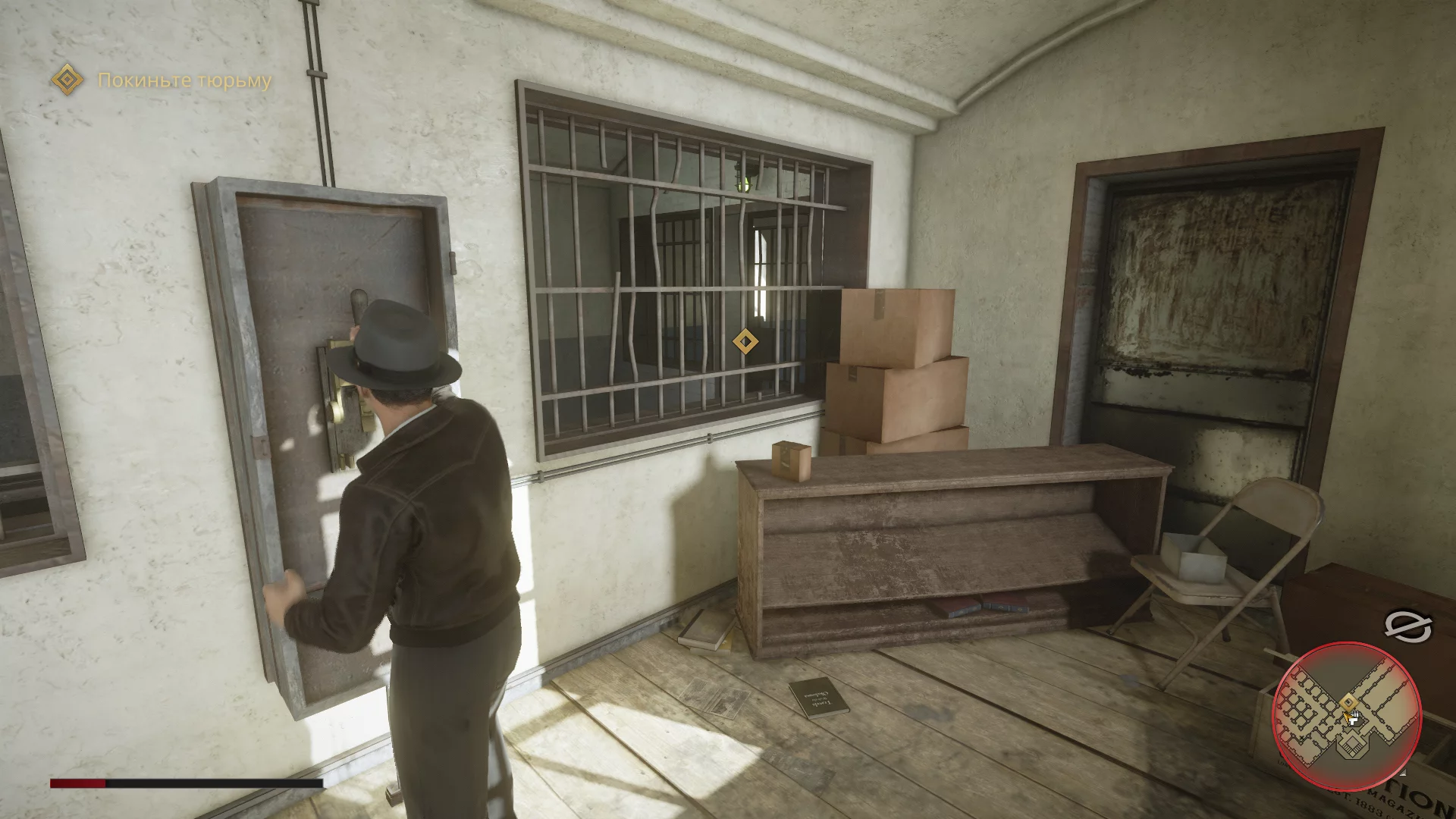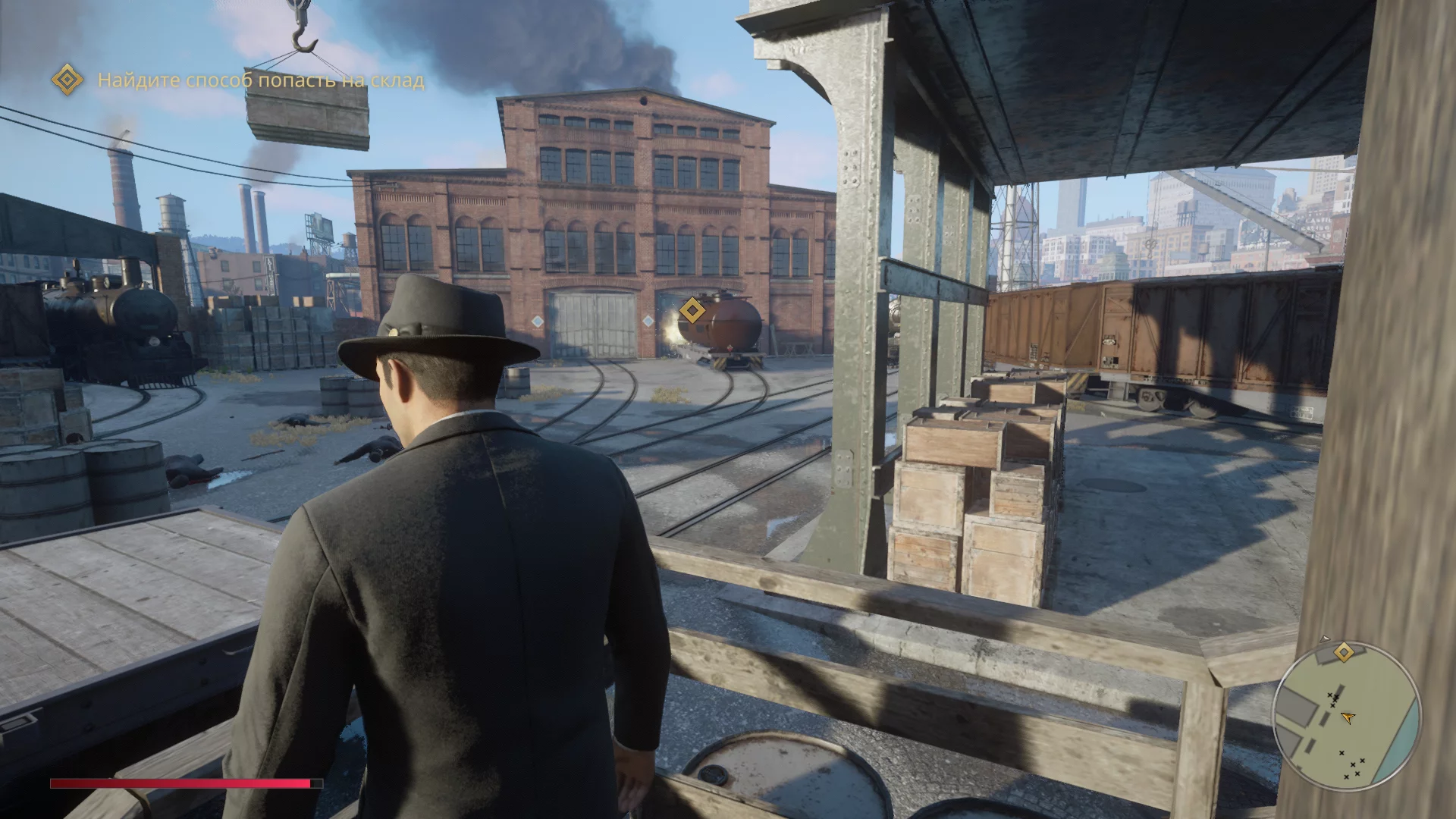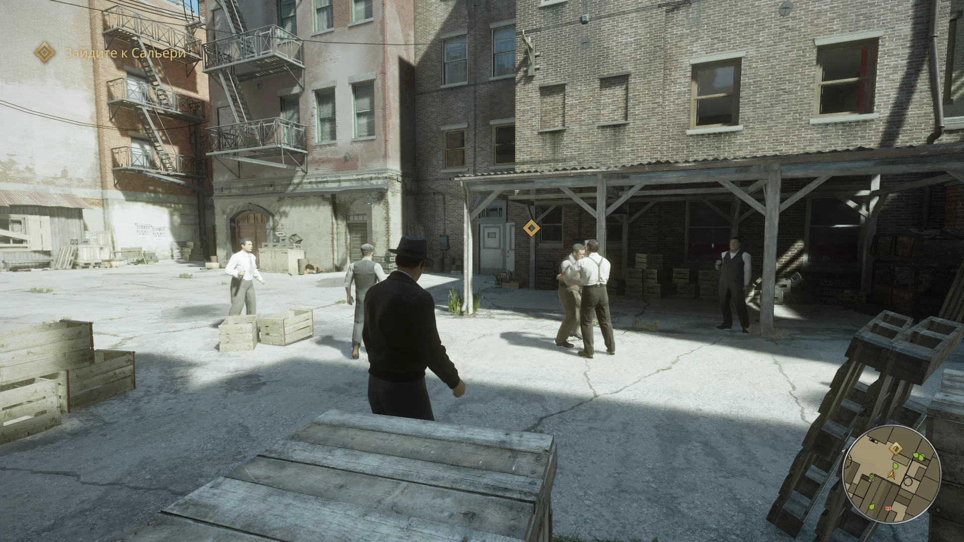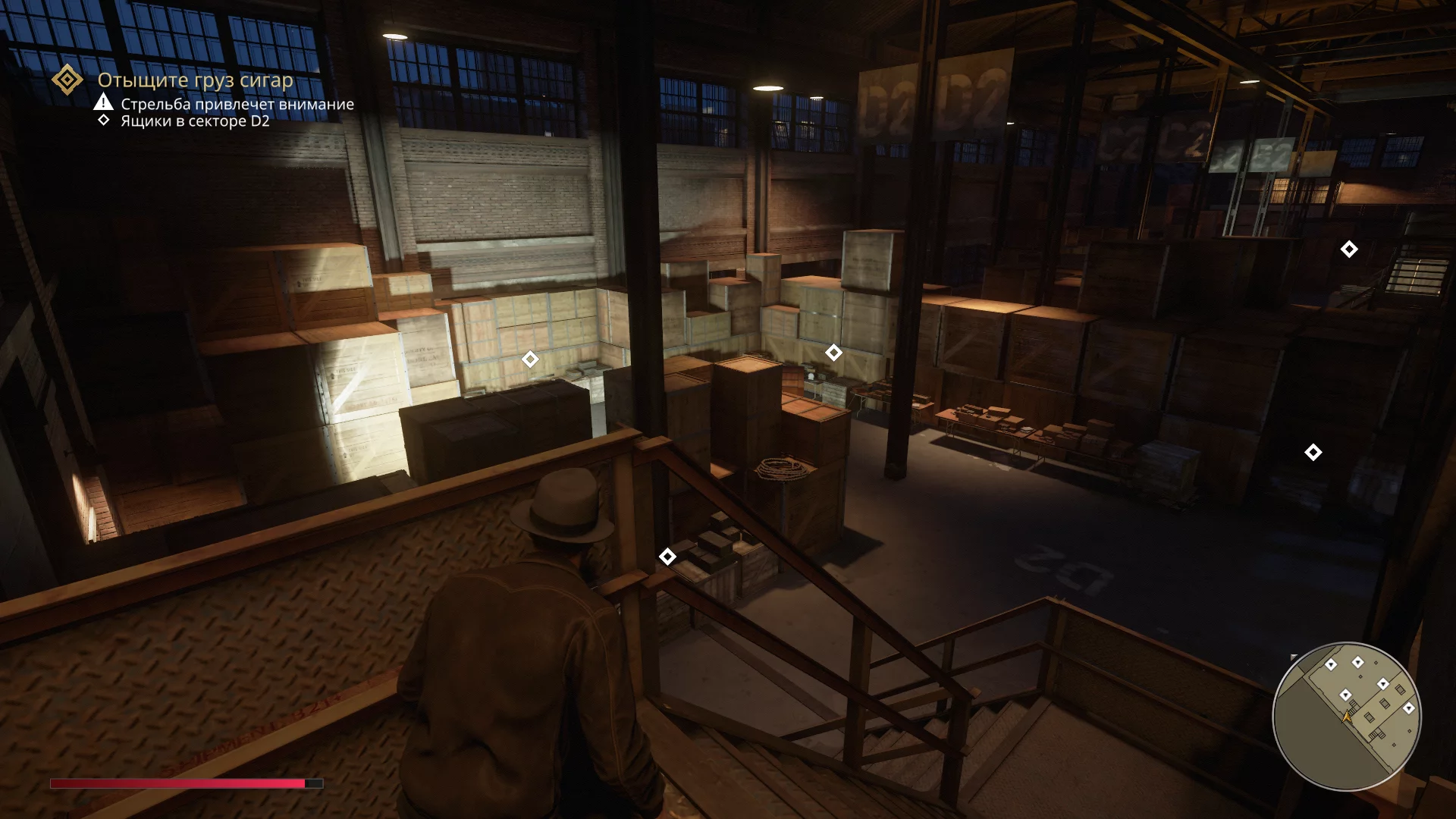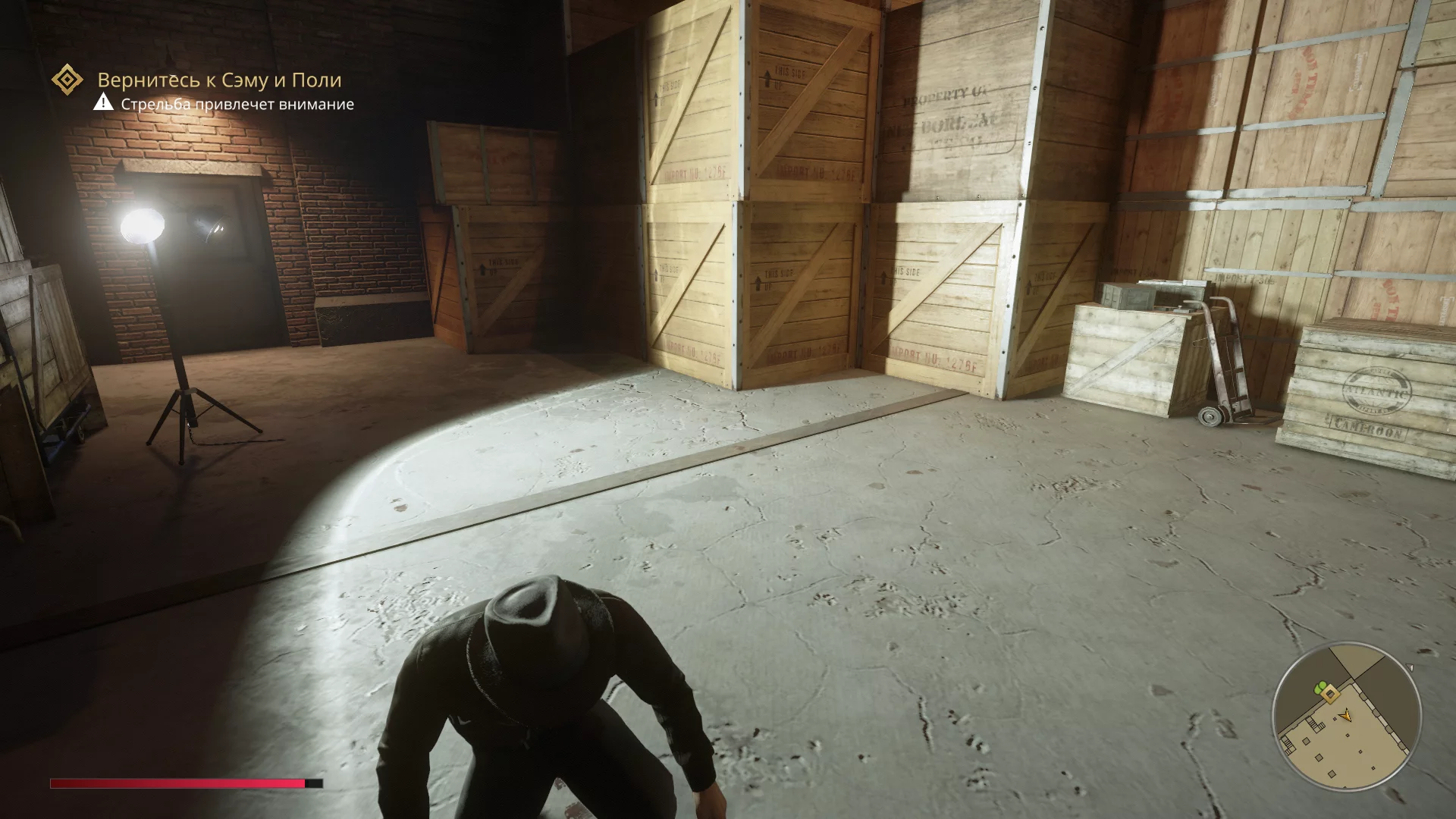 Отправляемся в мотель по третьему адресу. Тут все идет не по плану. Можно обойти здание сзади и тихо прокрасться внутрь, а можно просто всех перестрелять, не зря же нам выдали пистолет. Забираемся по коробкам на второй этаж.