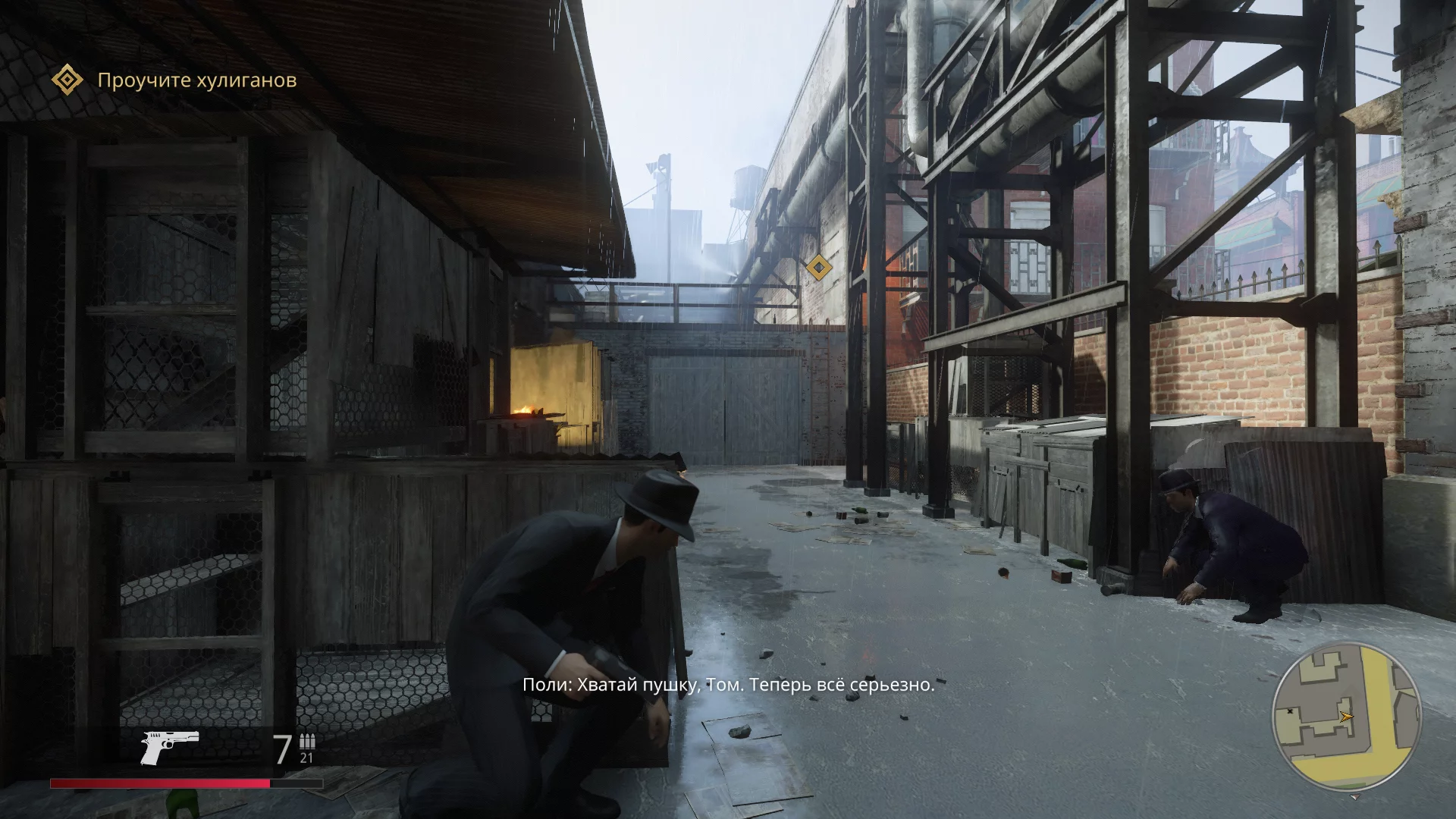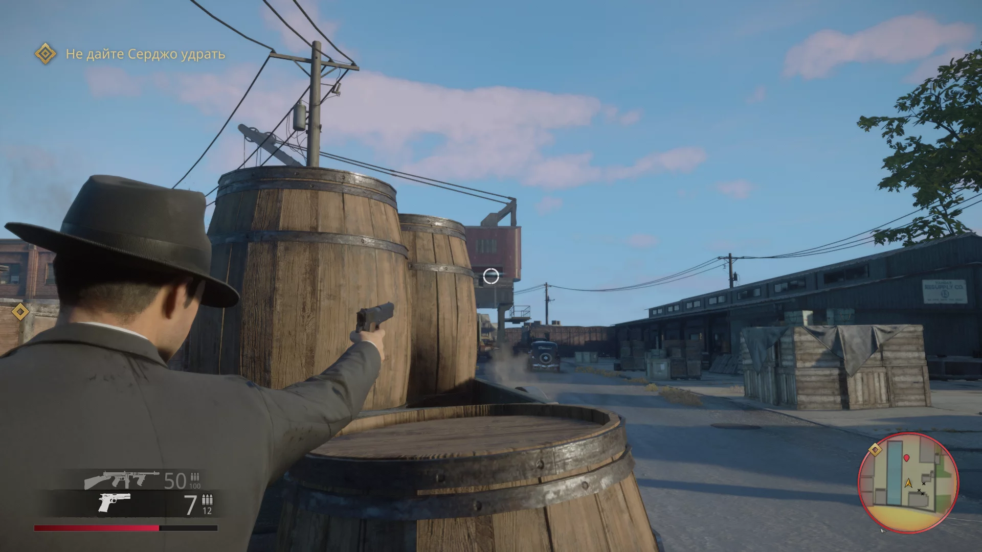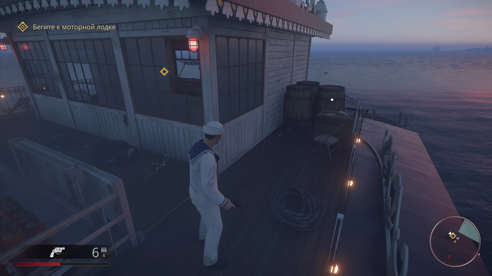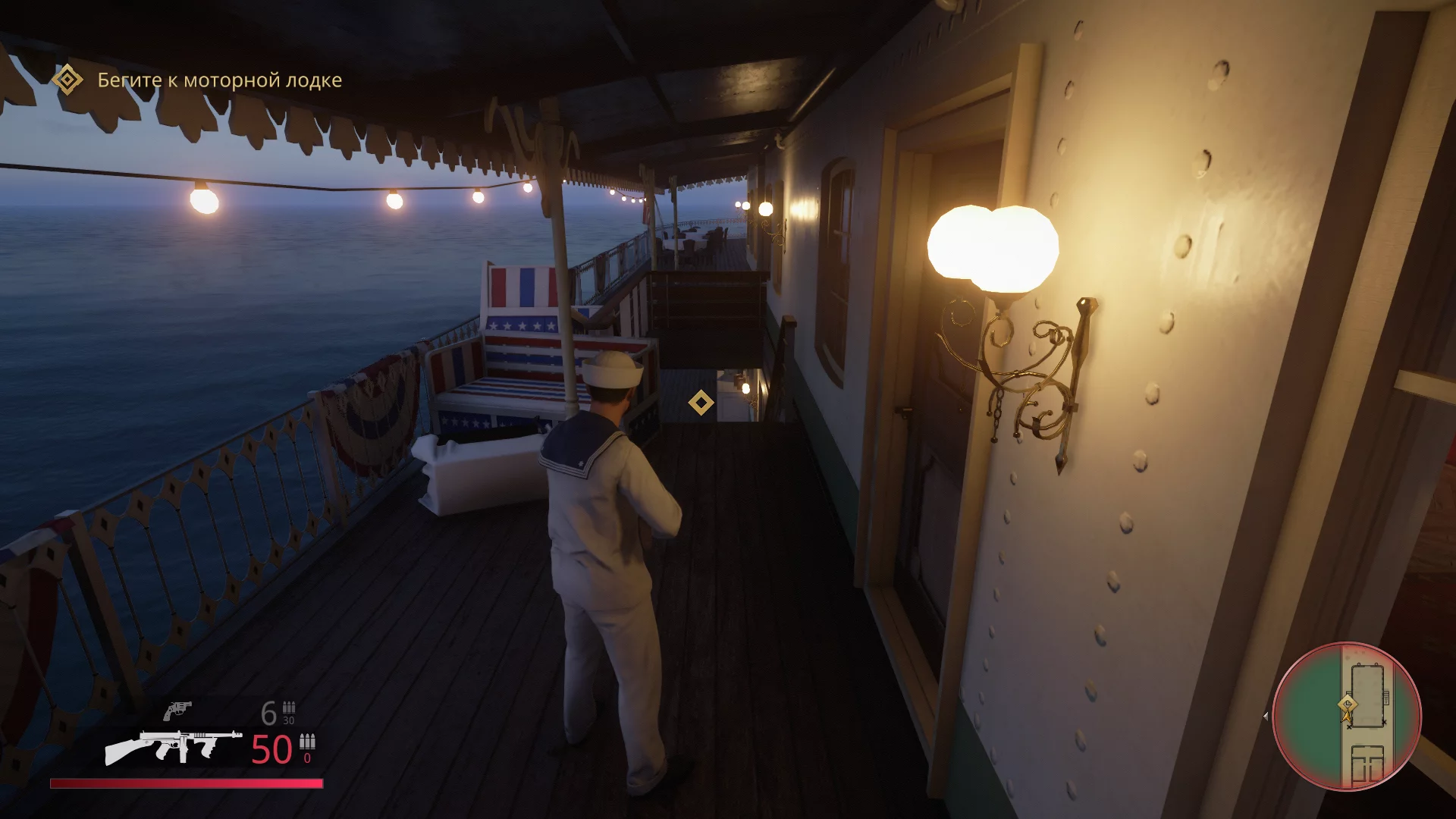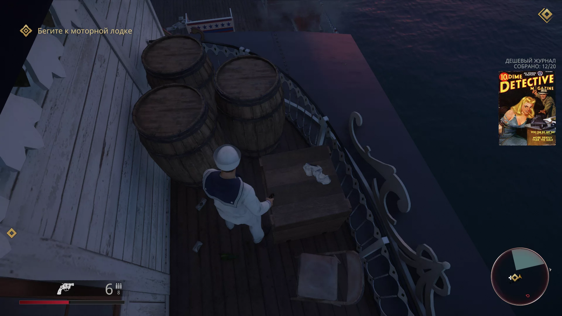 Берем со стола ключ и поднимаемся на этаж выше. По пути придется разобраться с матросом, который узнал Томми. Берем пистолет и поднимаемся на самый верх, занимаем удобную позицию.