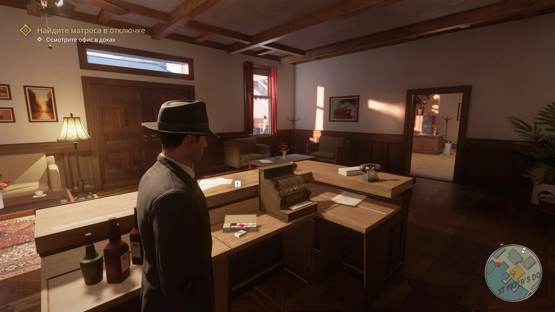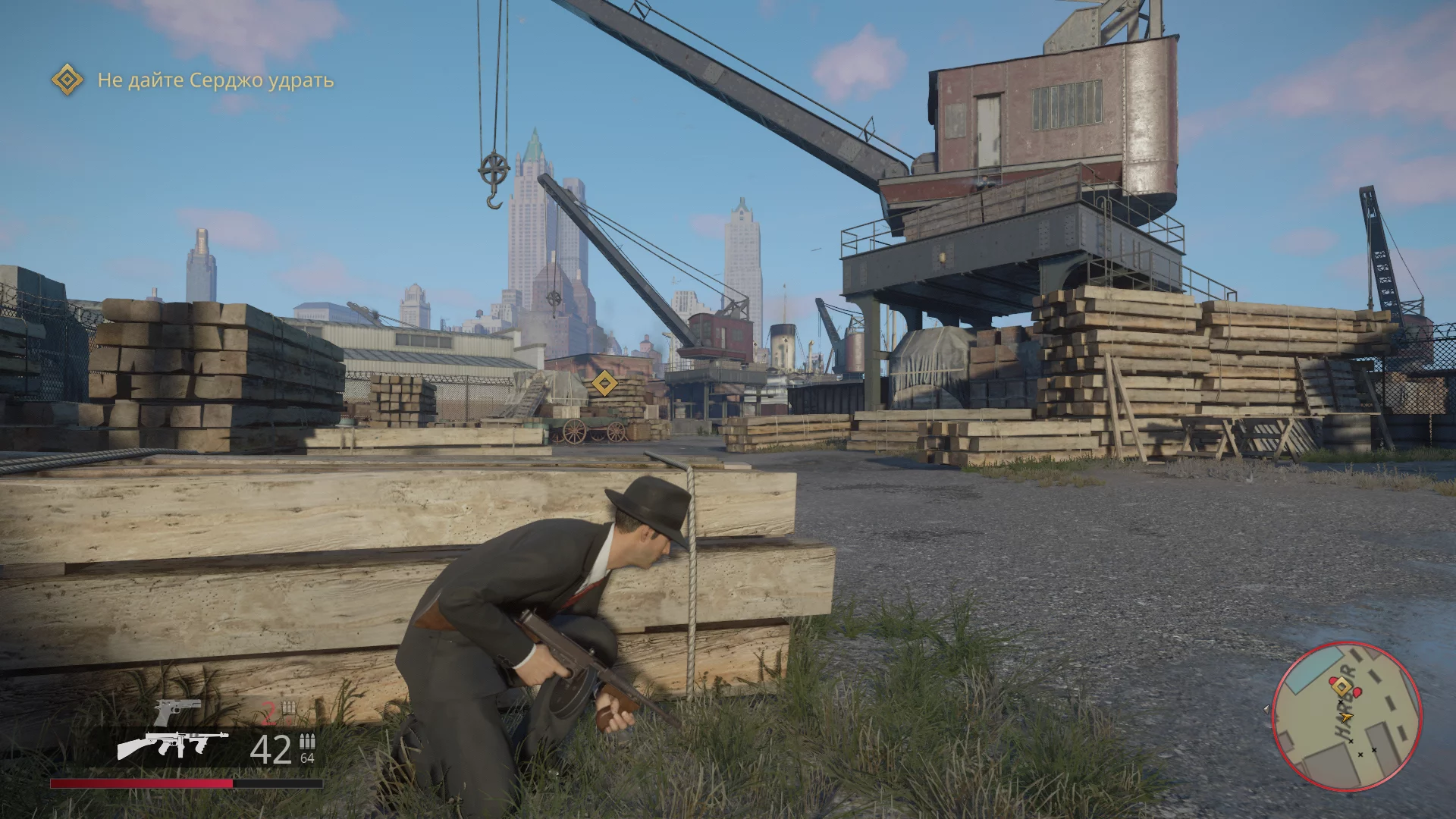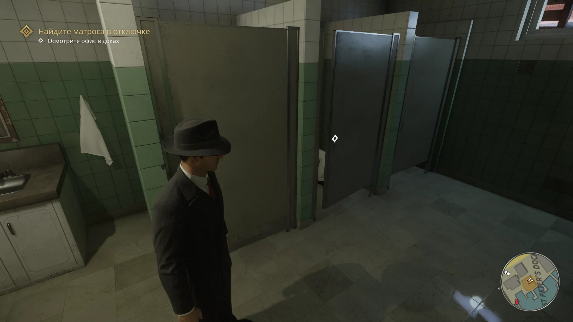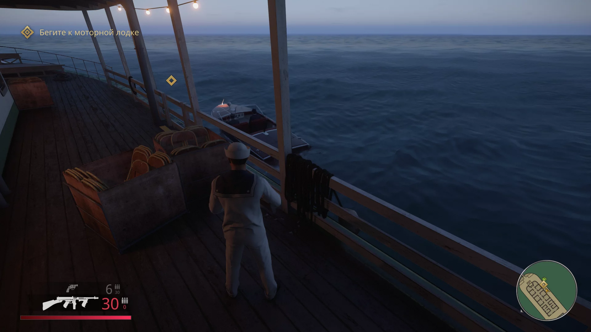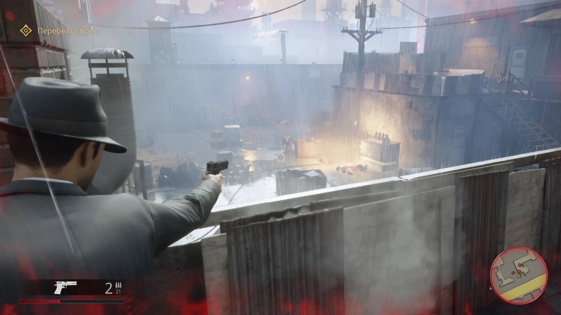 Берем со стола ключ и поднимаемся на этаж выше. По пути придется разобраться с матросом, который узнал Томми. Берем пистолет и поднимаемся на самый верх, занимаем удобную позицию.