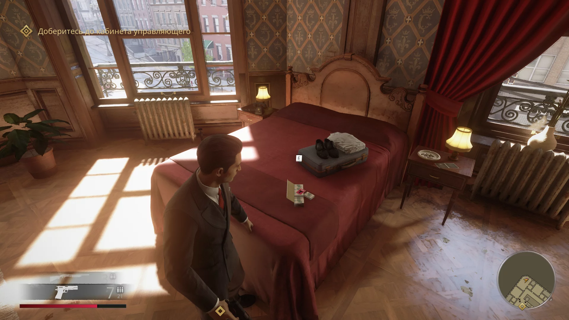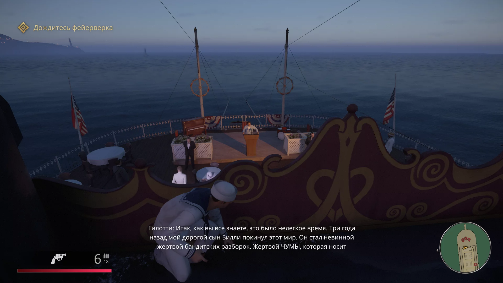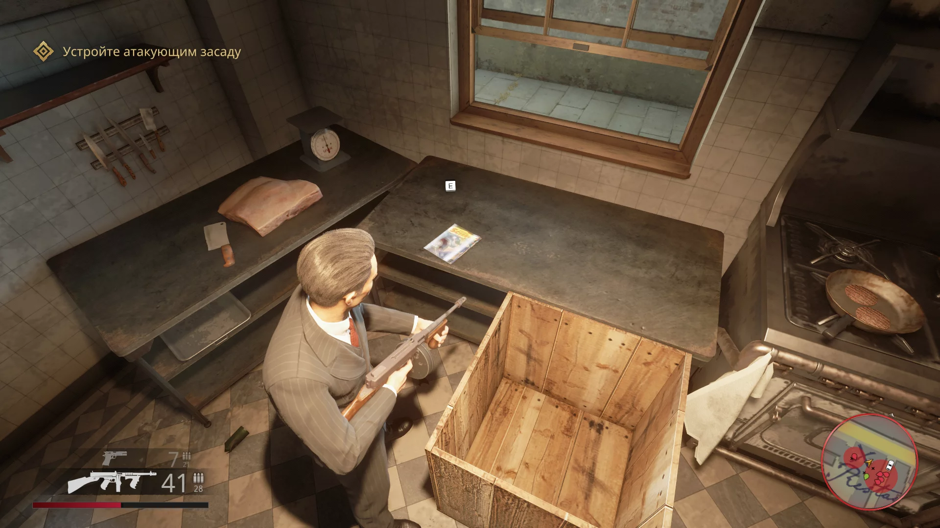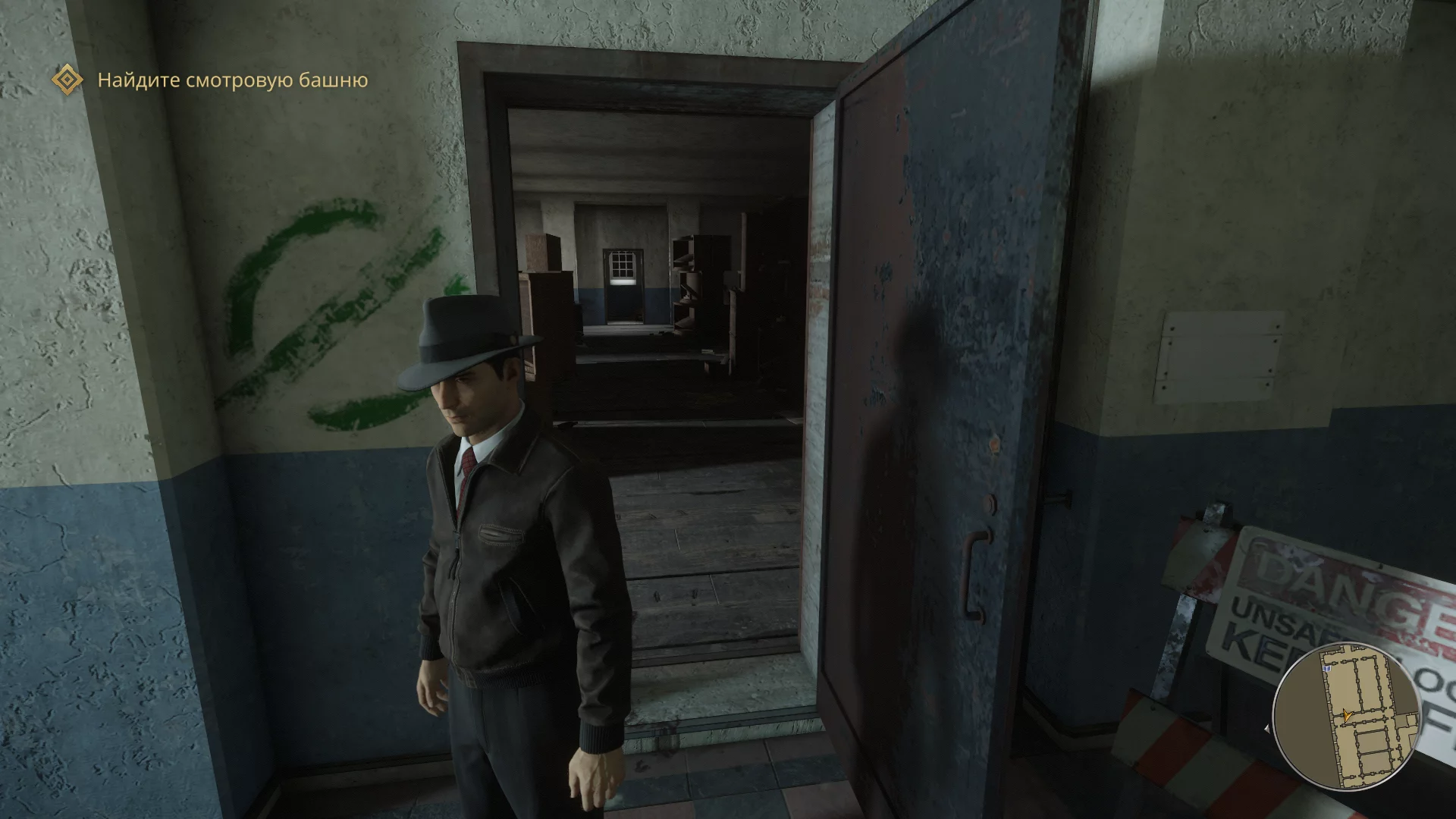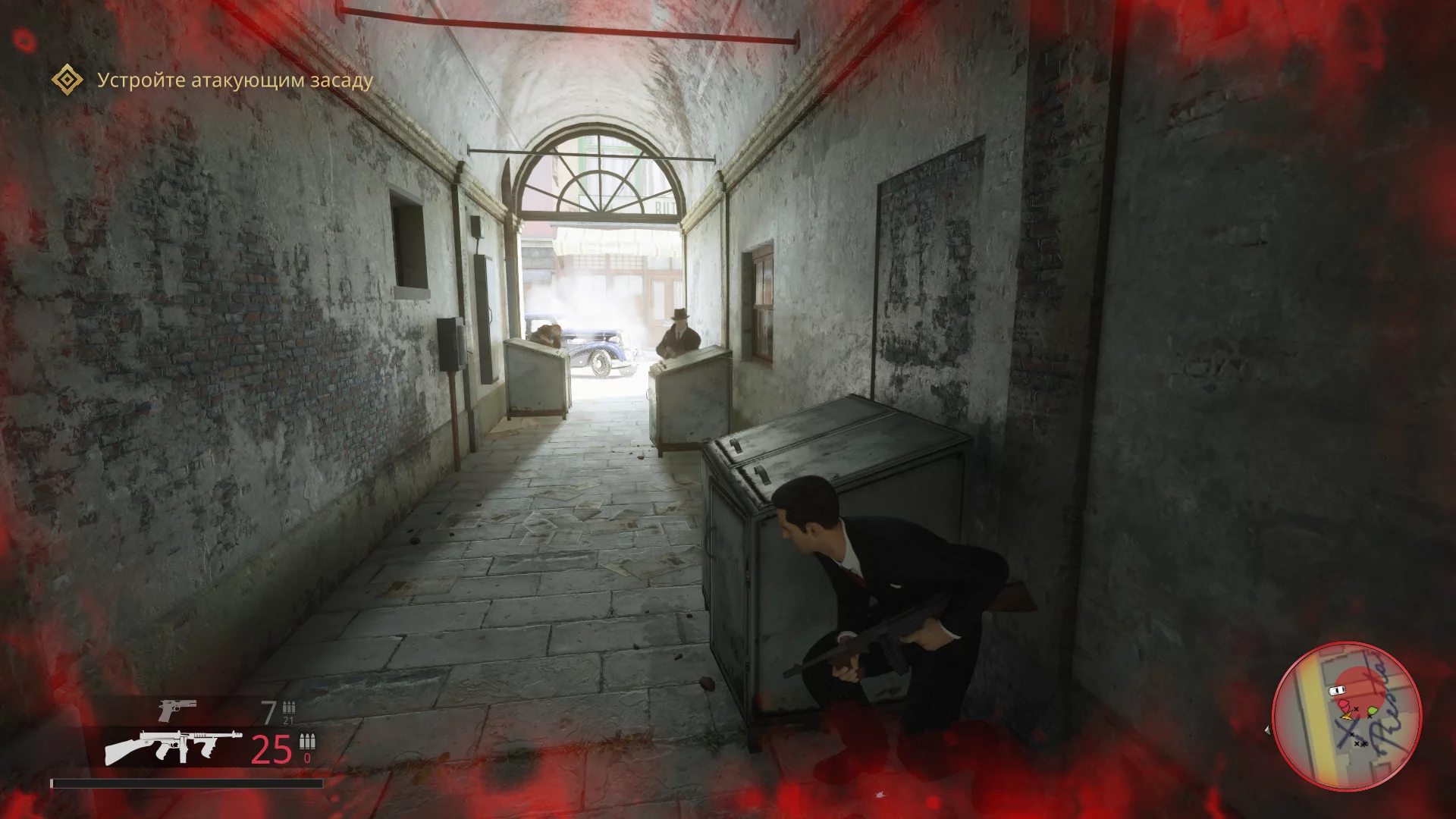 Берем со стола ключ и поднимаемся на этаж выше. По пути придется разобраться с матросом, который узнал Томми. Берем пистолет и поднимаемся на самый верх, занимаем удобную позицию.