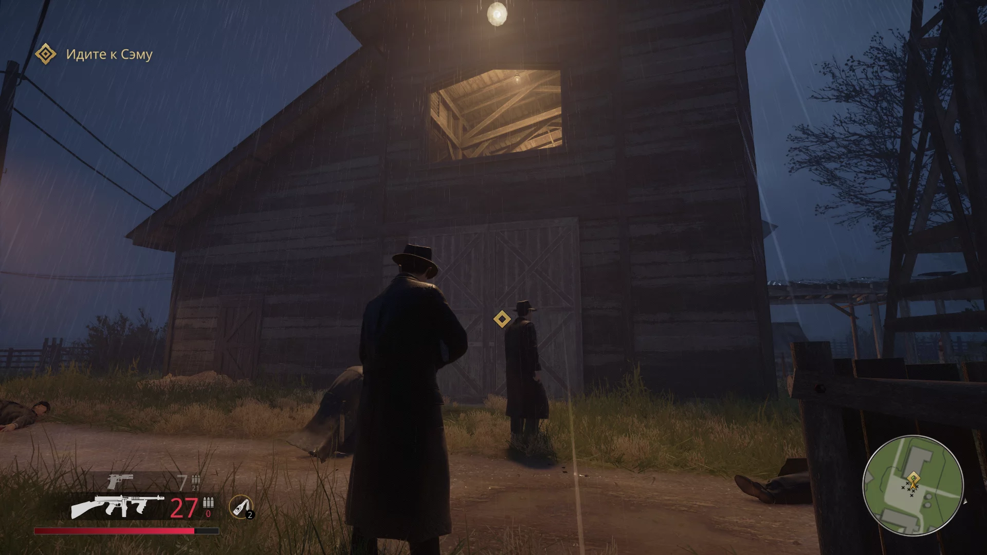 После разговора с Поли идем к большому амбару. Осматриваемся и идем к следующему зданию. Внутри будет трое противников. Проходим соседнее здание и находим Сэма. Прорываемся через толпу противников.