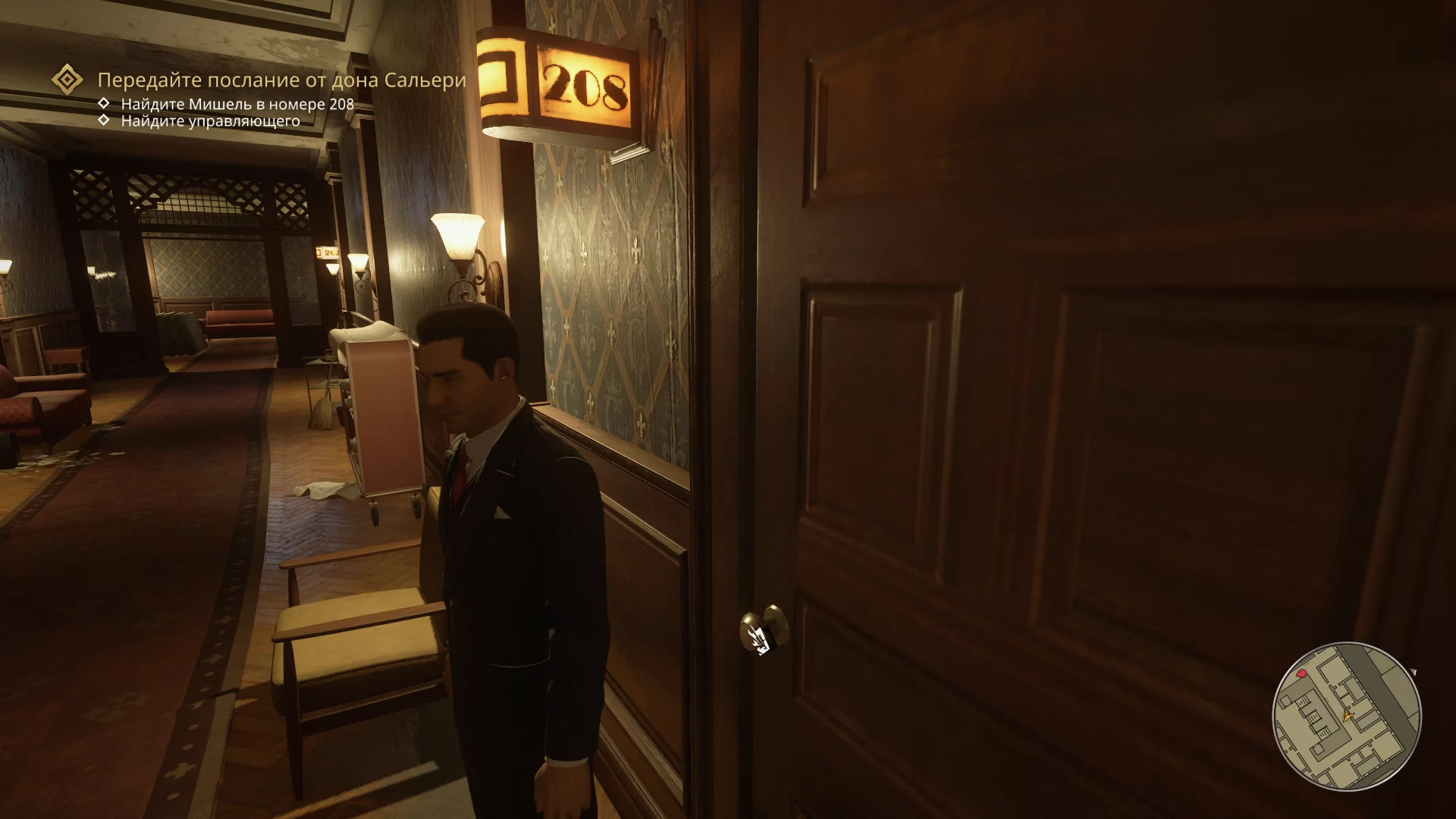 Заходим в клуб, в комнате на первом этаже можно найти журнал. Из записки на стойке можно узнать, что Мишель находится в комнате 208. По пути заходим в 104 и берем сигаретный вкладыш, в 210 берем комикс. Говорим с девушкой и спускаемся вниз.