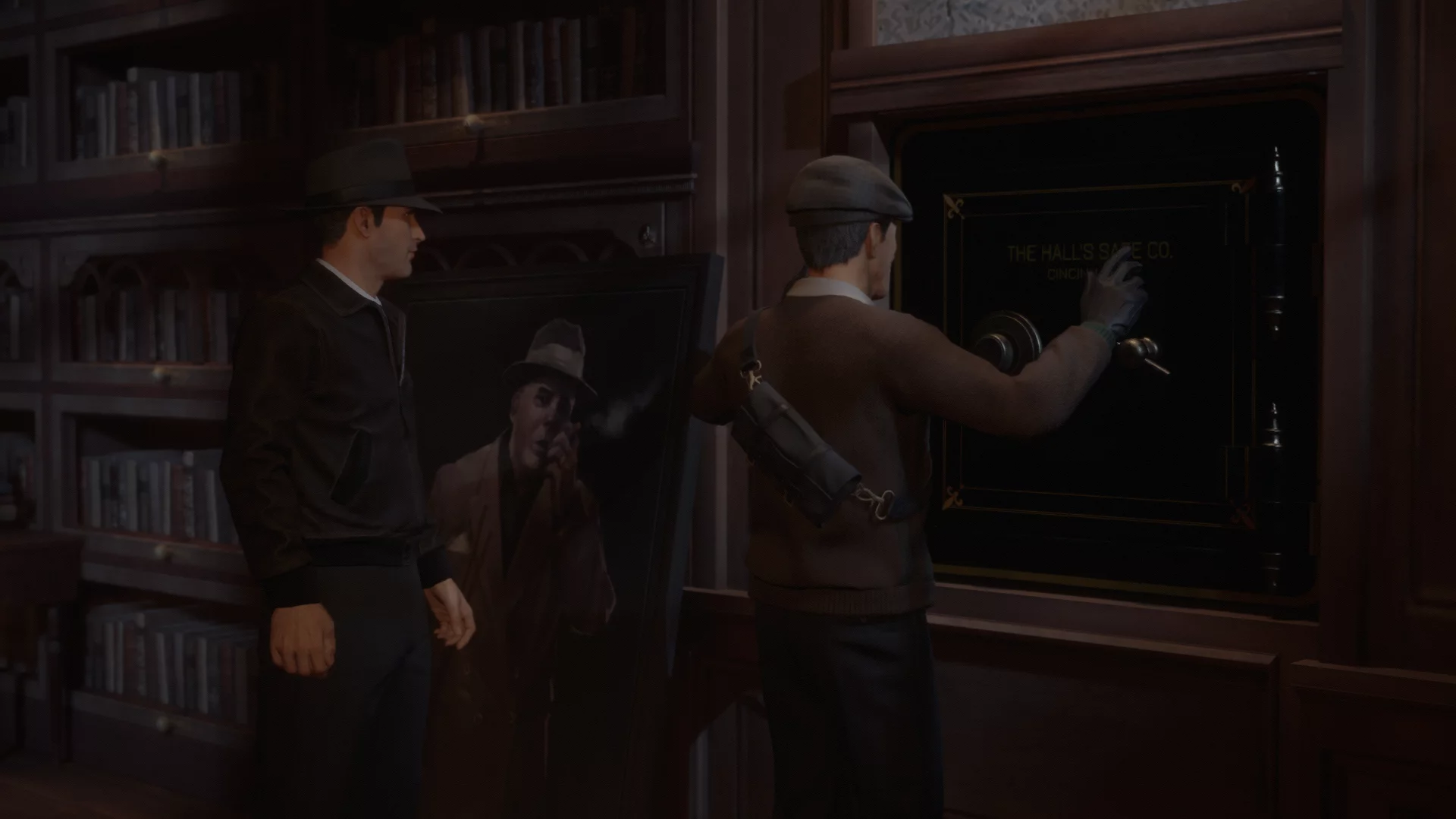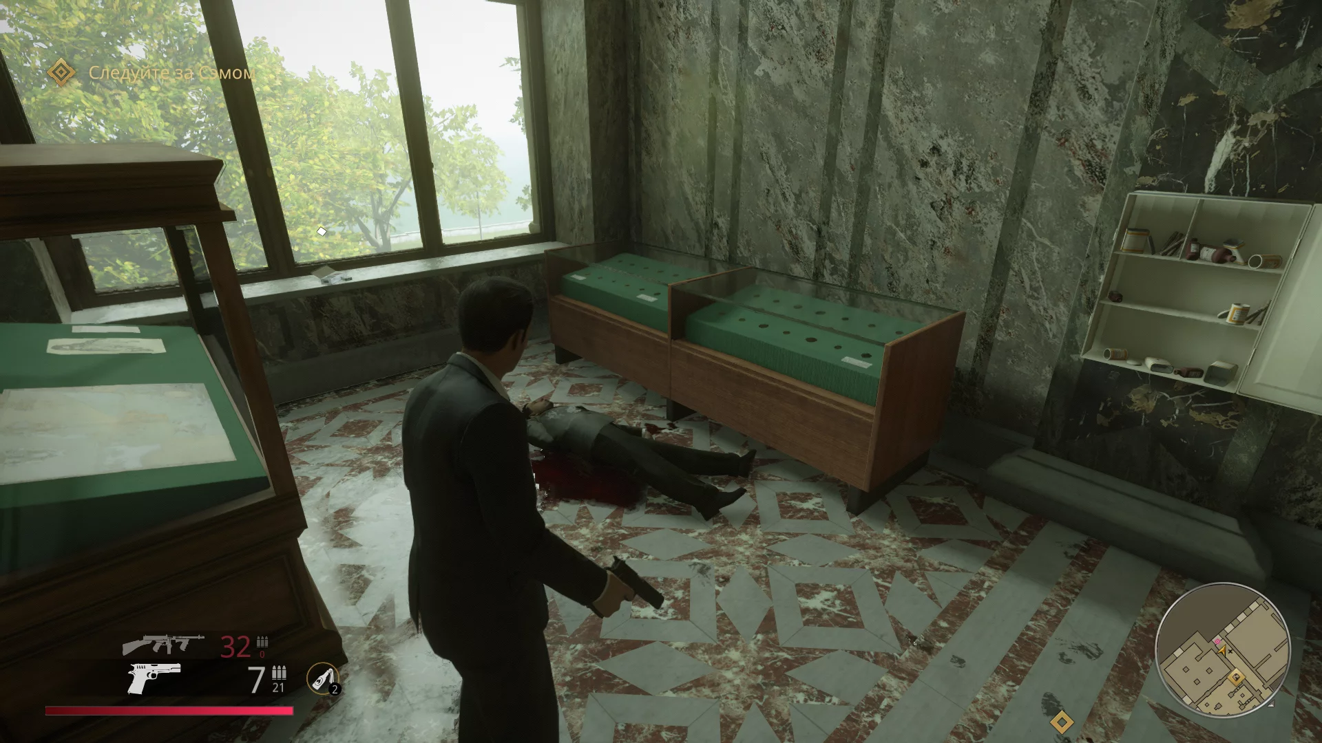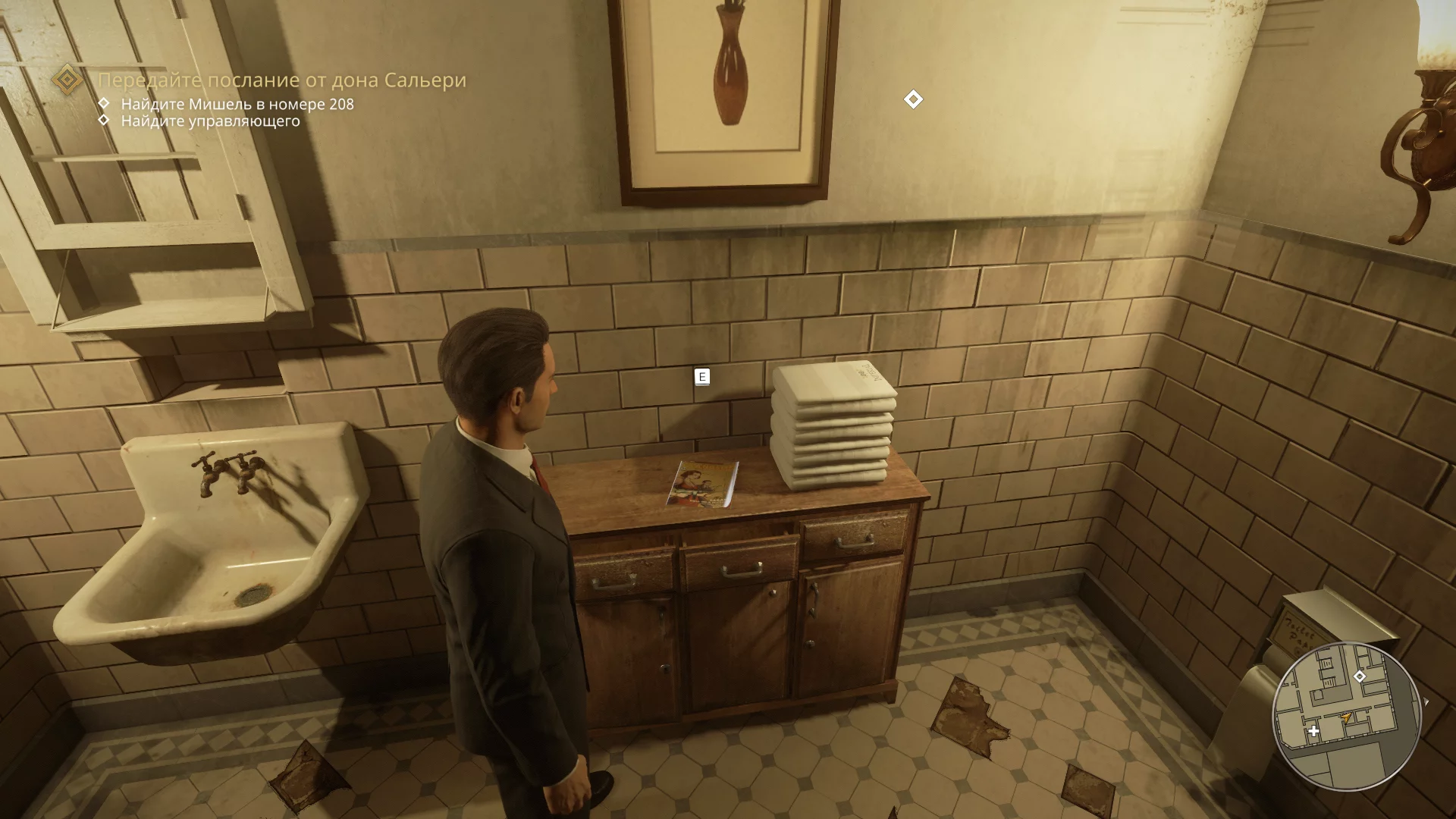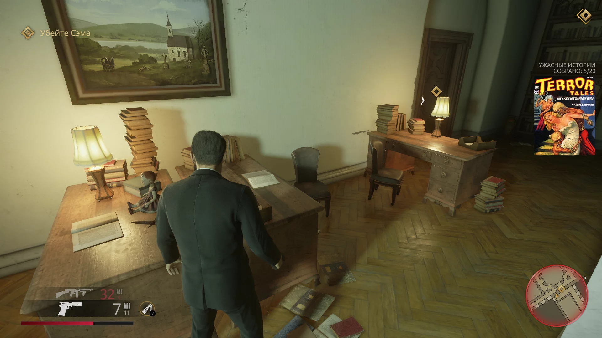 В верхней части также три охранника. Около бассейна можно найти книжку. Бегаем по саду за Сальваторе. Вламываемся внутрь и пытаемся найти сейф за одной из картин. В одной из комнат с картиной будет журнал. В комнате с другой стороны можно найти сигаретный вкладыш. Поднимаемся на второй этаж, нам нужна картина с портретом, на которой изображен мужчина с сигарой.