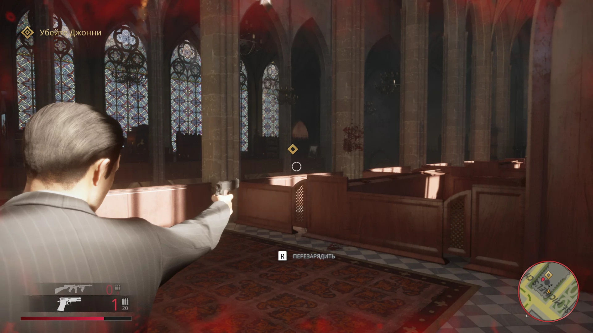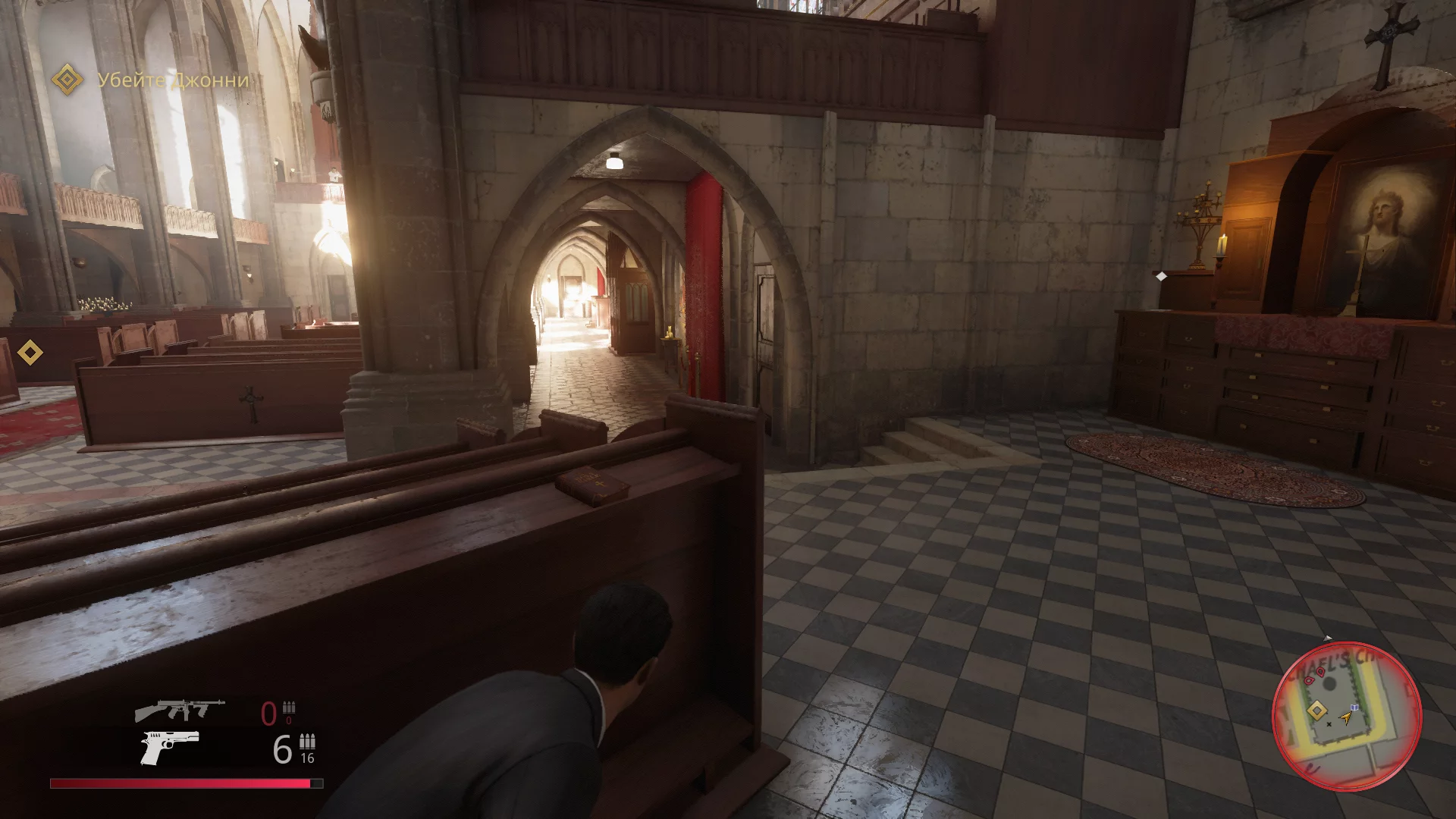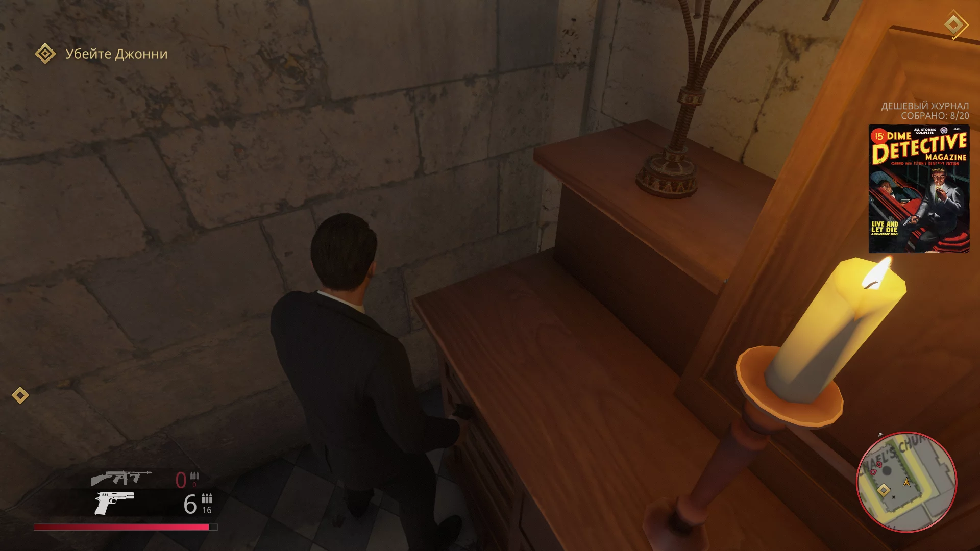 Тут и начинается самое интересное. Слева берем журнал. Разбираемся с противниками и бежим на балкон второго этажа за Джонни. Догоняем его и говорим со священником. На выходе можно подобрать сигаретный вкладыш.