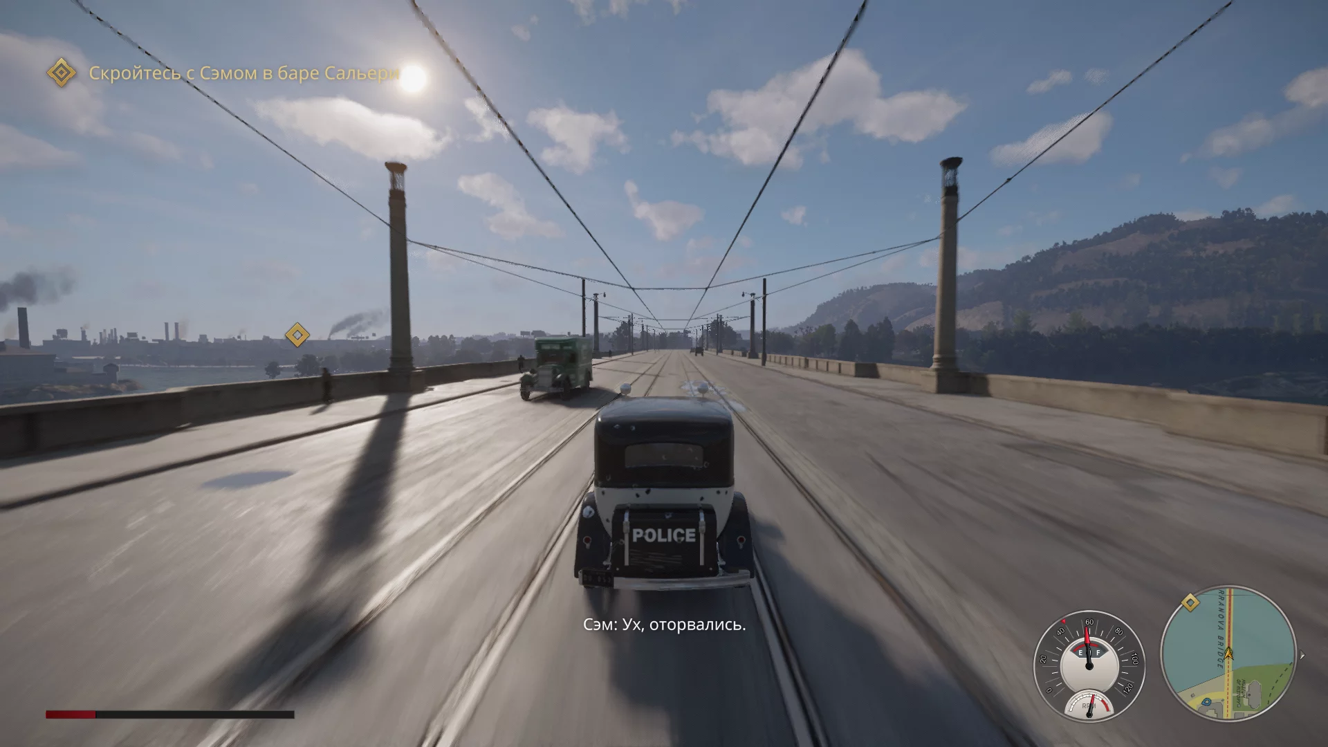 Уходим от погони на грузовике, объезжая скопления копов, отмеченные восклицательными знаками на карте. Отрываемся и едем на склад Сальери. После кат-сцены идем с Поли до поезда.