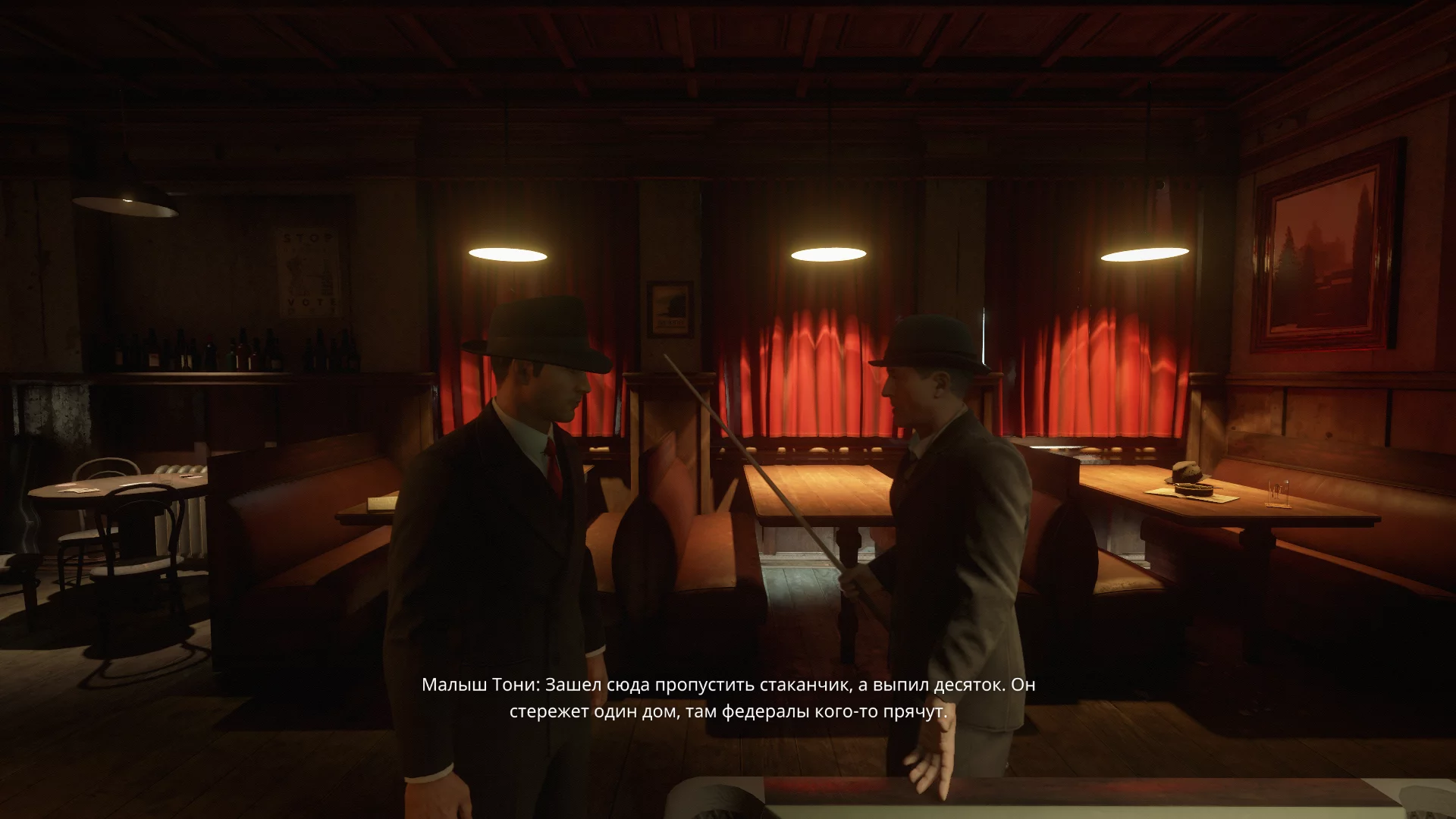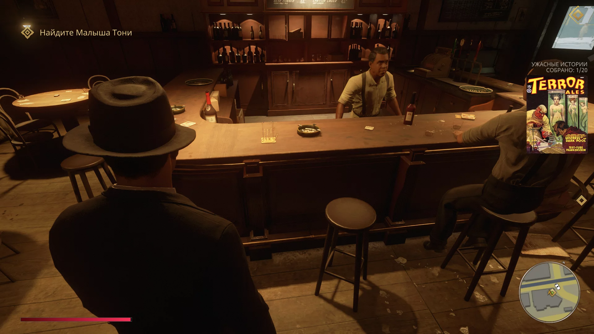 Едем в бар к Малышу Тони. На барной стойке берем журнал. После разговора отправляемся к укрытию ФБР.