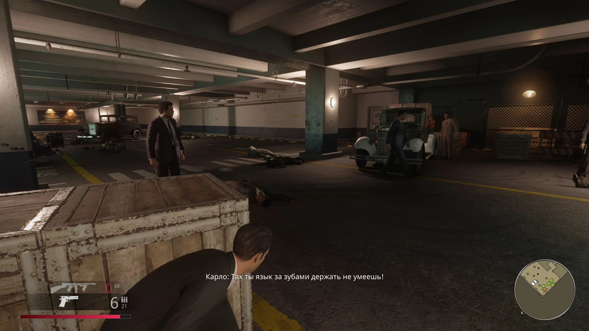 Идем к Винченцо и берем машину. На коробках за его спиной можно найти журнал. Едем в лавку и говорим с Биффом.