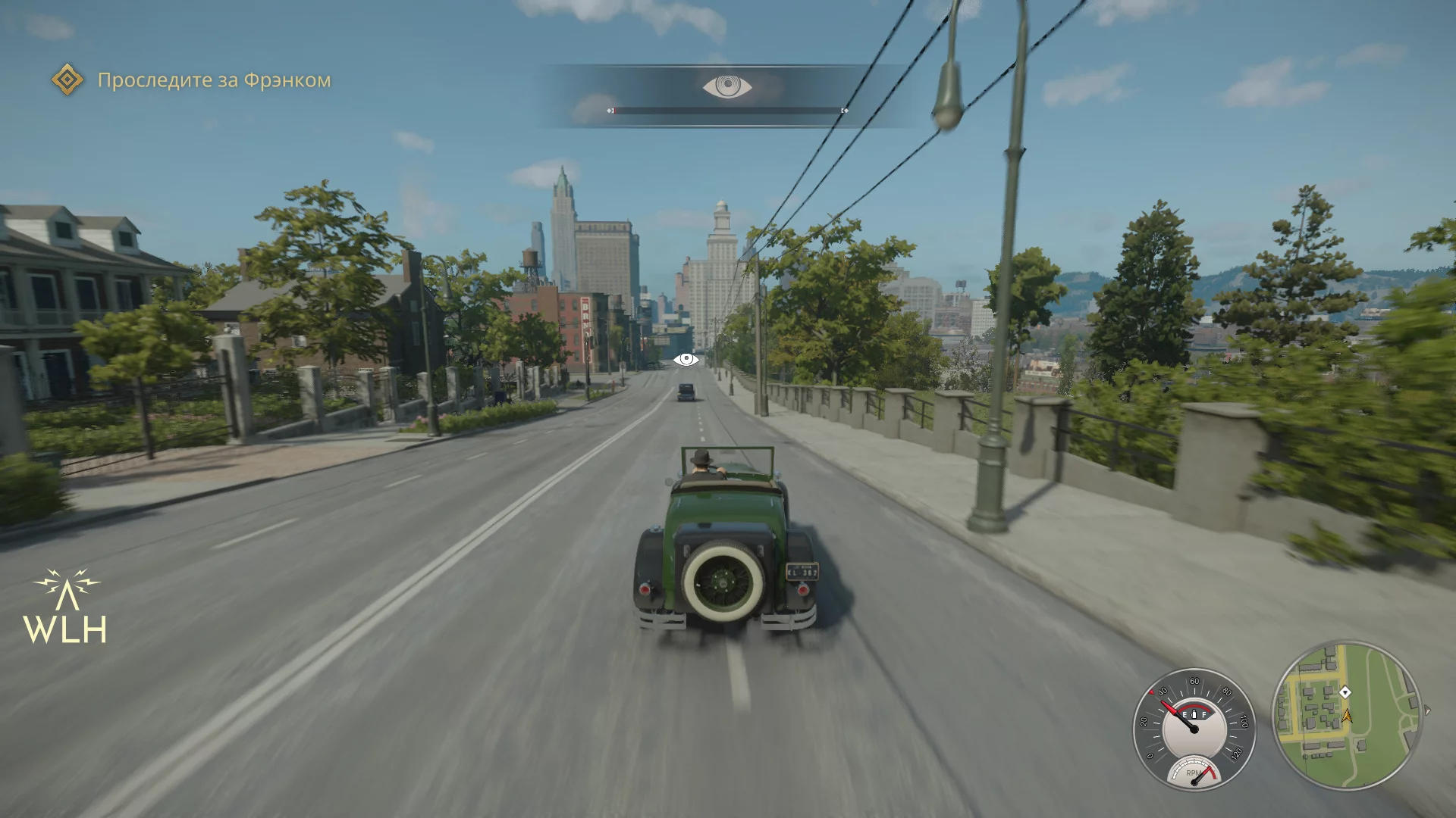 Едем за машиной Фрэнка. Соблюдаем дистанцию, следим за шкалой обнаружения.