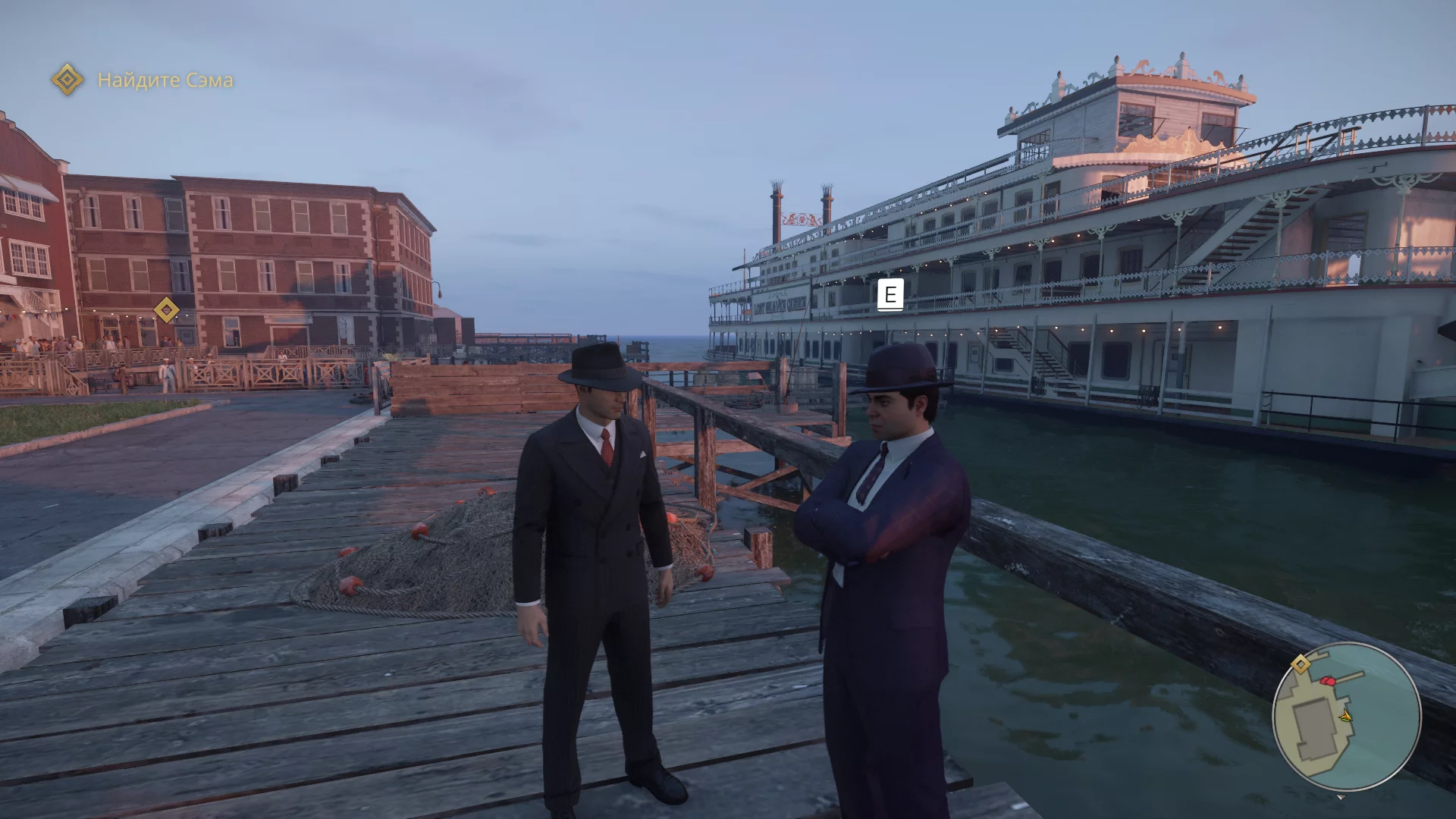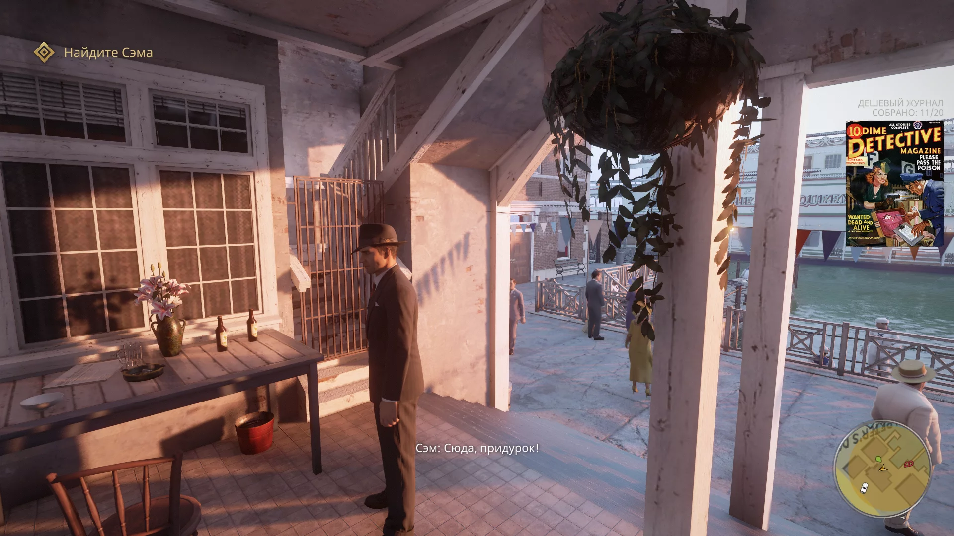 Поднимаемся на второй этаж к Сальери. Берем в гараже машину и едем в доки. Слева можно взять журнал. Сэм будет чуть дальше, а Поли — справа, около моторной лодки.