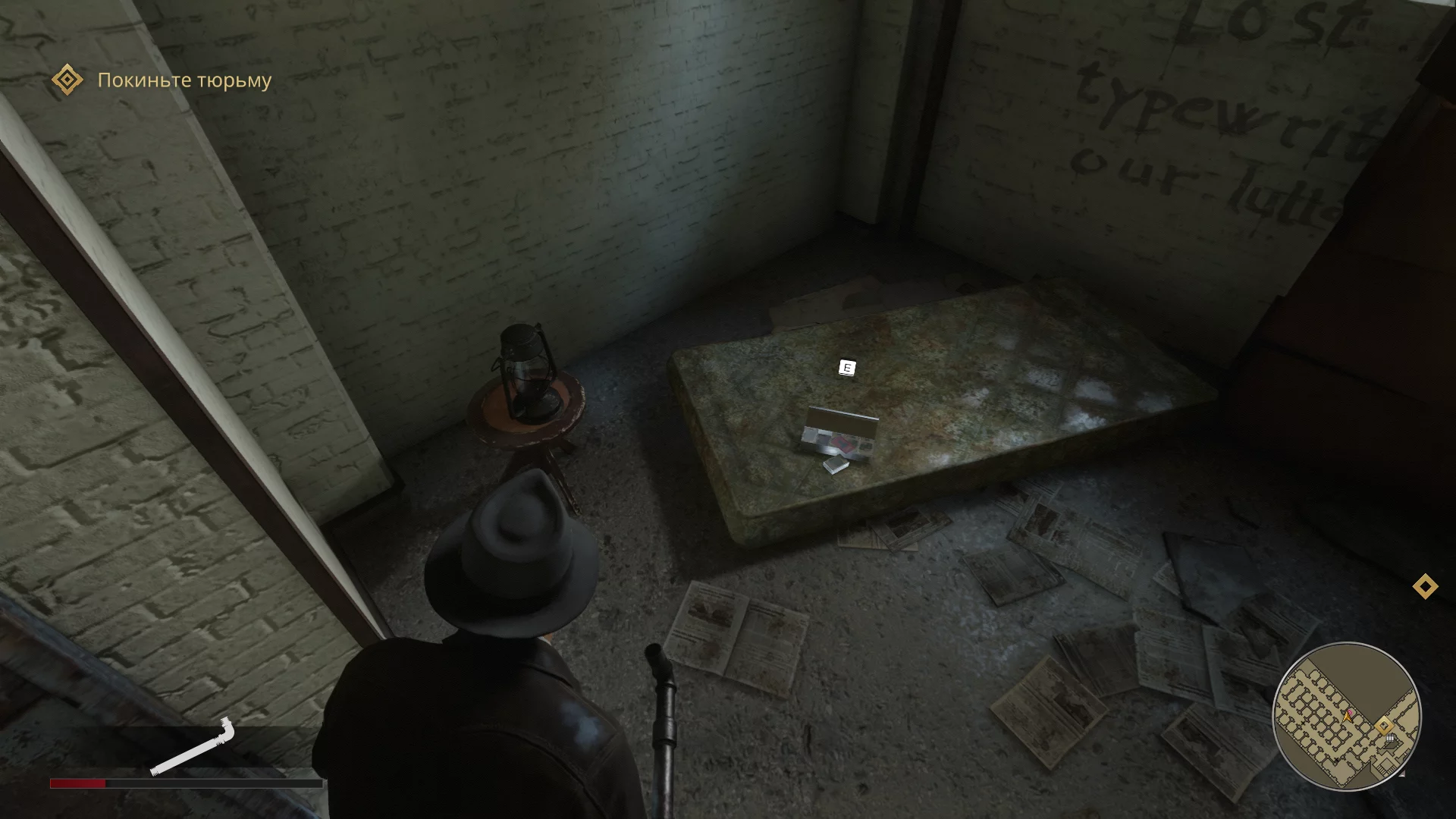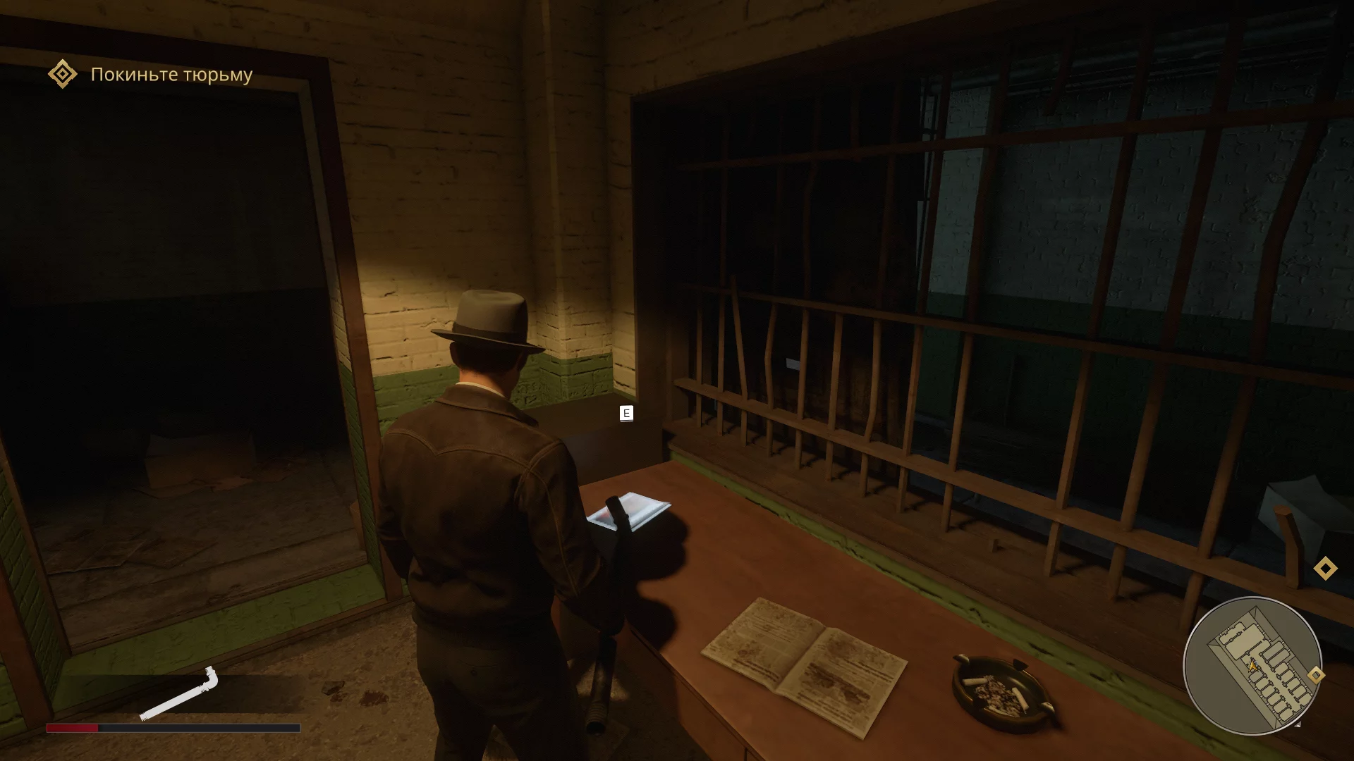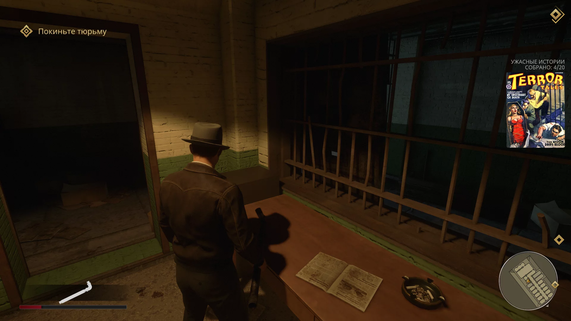 При побеге рушится мостик и Томми падает вниз. В одной из камер можно найти трубу, а в комнате охраны взять журнал.