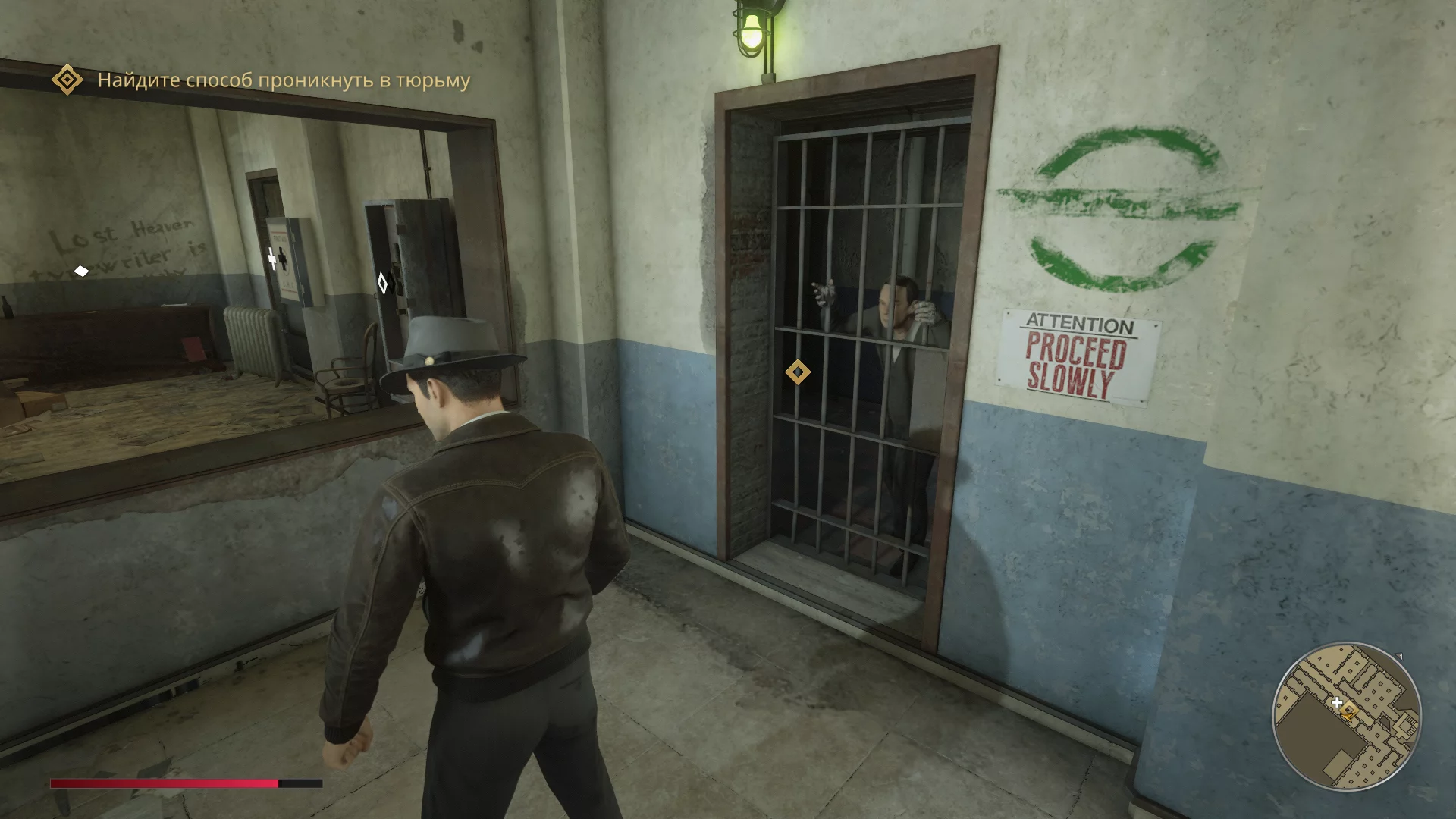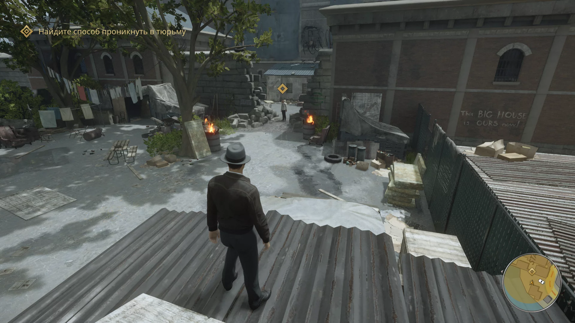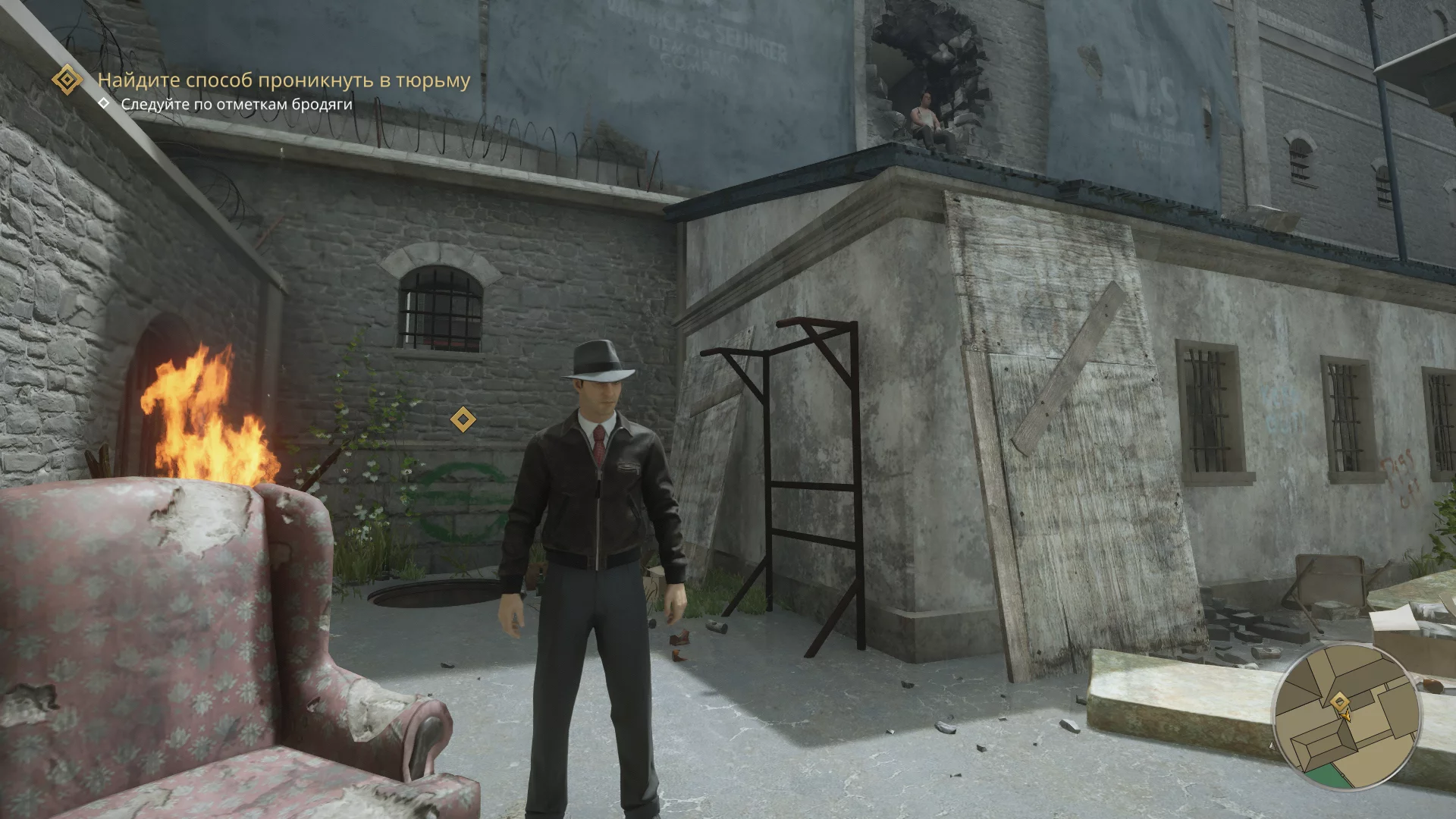 Идем к Винченцо за винтовкой. Едем к тюрьме, перебираемся через забор и находим нужного человека. Спускаемся в канализацию и проходим по туннелю. В конце придется подраться с бродягой.