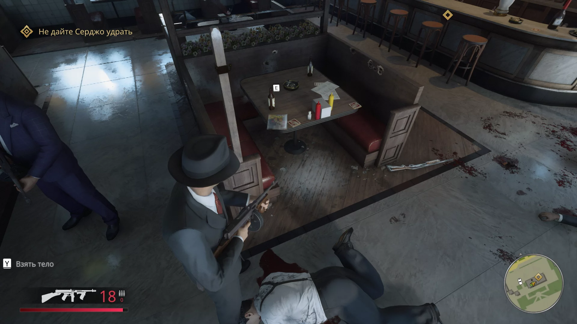 Садимся в машину и везем босса к ресторану Пепе. После начала перестрелки бежим к заднему выходу. На кухне берем журнал, по пути разбираемся с противниками.