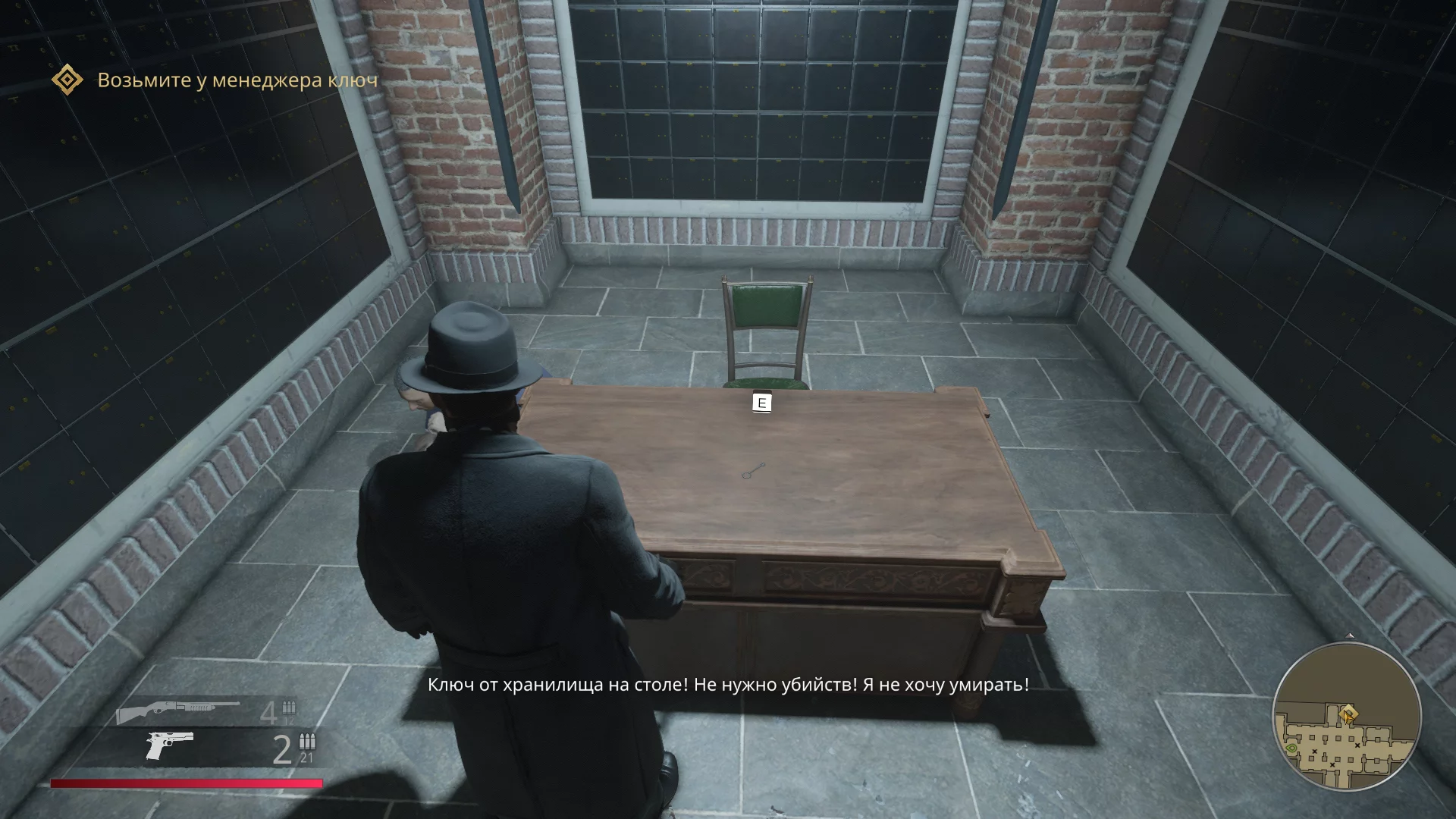 Поднимаемся по лестнице на второй этаж и заходим в кабинет менеджера. Ведем менеджера в хранилище. Охранники нападут, поэтому придется отбиваться. Заходим в хранилище и используем ключ со стола.