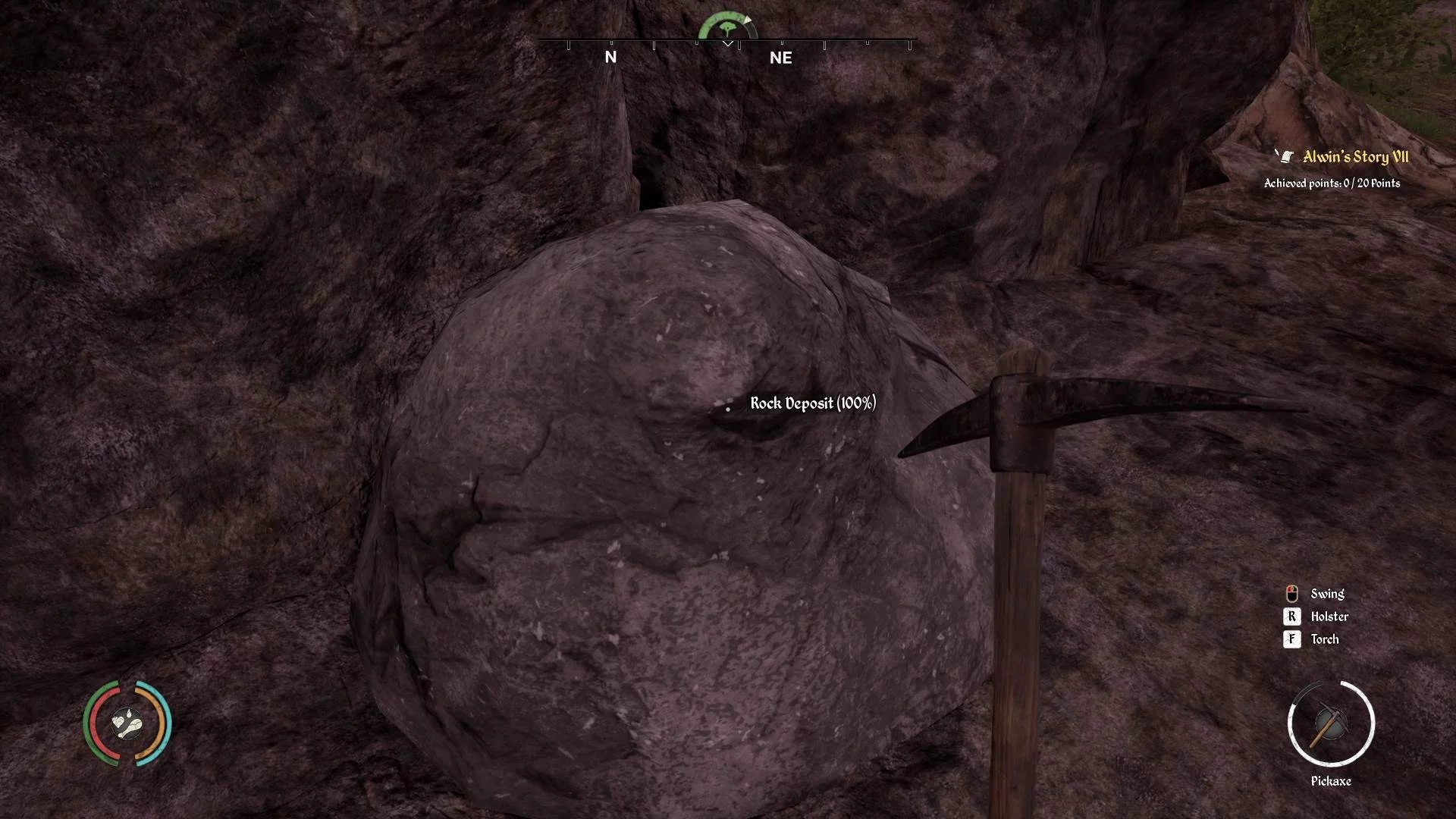 В игре есть пещера, она полна камней, из которых может падать железо и соль. Вы можете использовать кирку, чтобы добыть ее. Вокруг пещеры полно медведей и волков. Если у вас нет кирки, то купить ее можно в деревне справа.