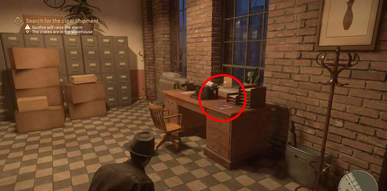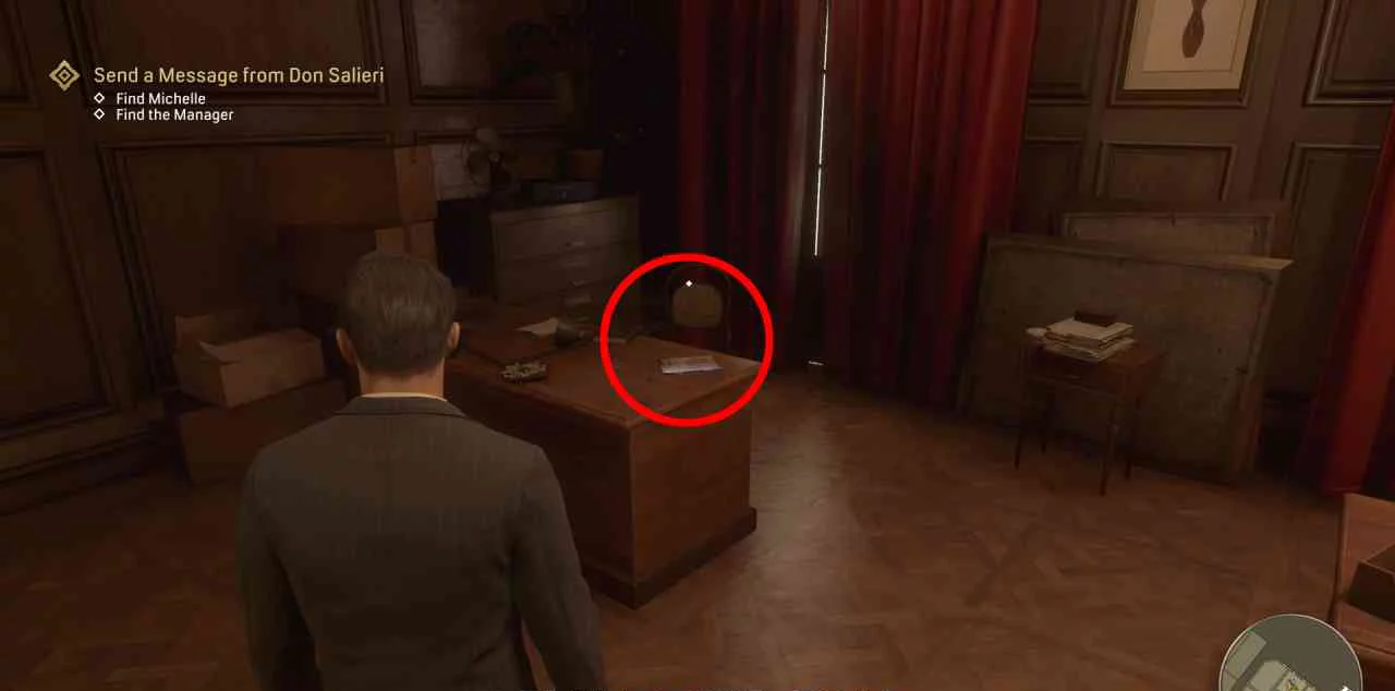 Глава 19: Небольшая халтурка — в здании банка, на верхнем этаже, в боковом офисе (на столе).
