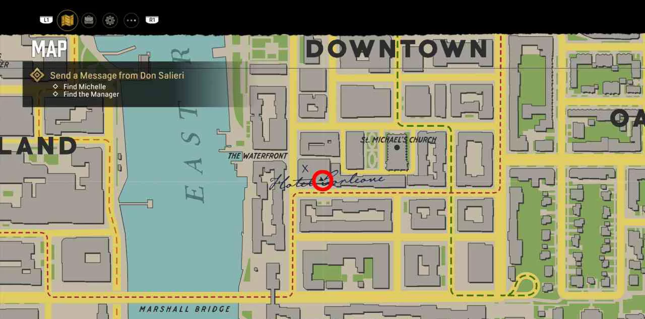 Глава 8: Святые и грешники — в отеле Corleone, на первом этаже, в юго-восточном углу. В этой комнате парень разговаривает по телефону, просто задушите его сзади.