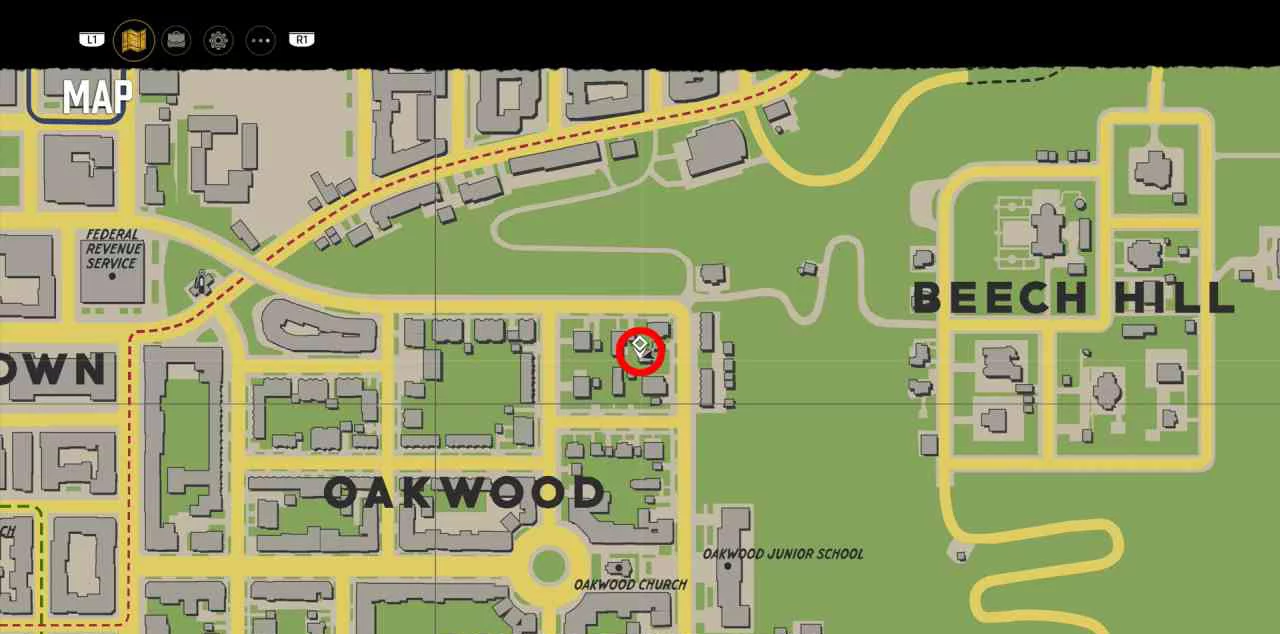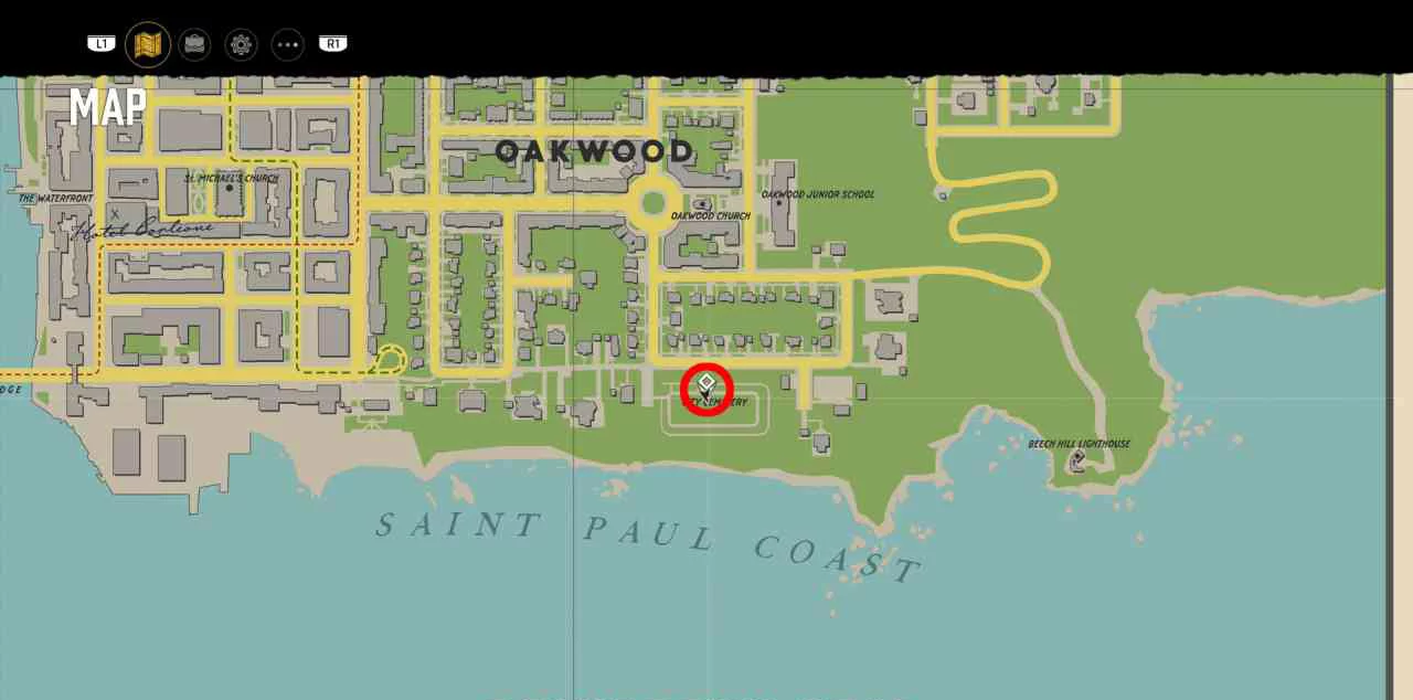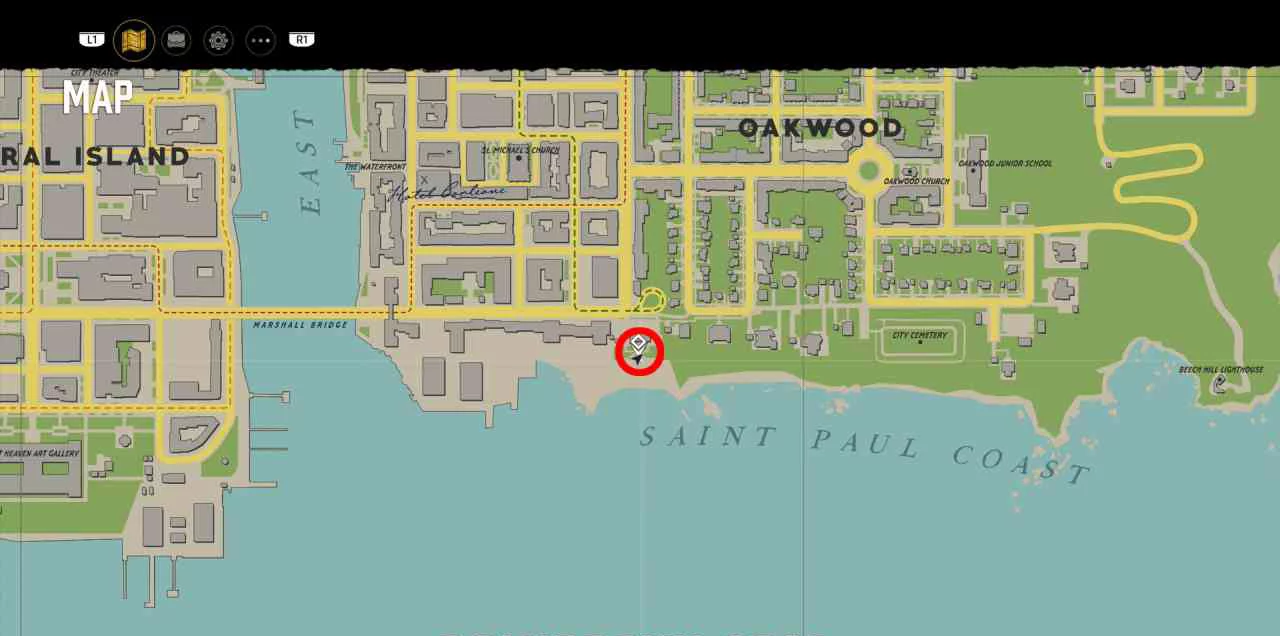 Оквуд — в самом юго-западном углу, недалеко от центра города, вы можете спуститься по лестнице на побережье Сент-Пол. Около лестницы лежит журнал «Черная маска».