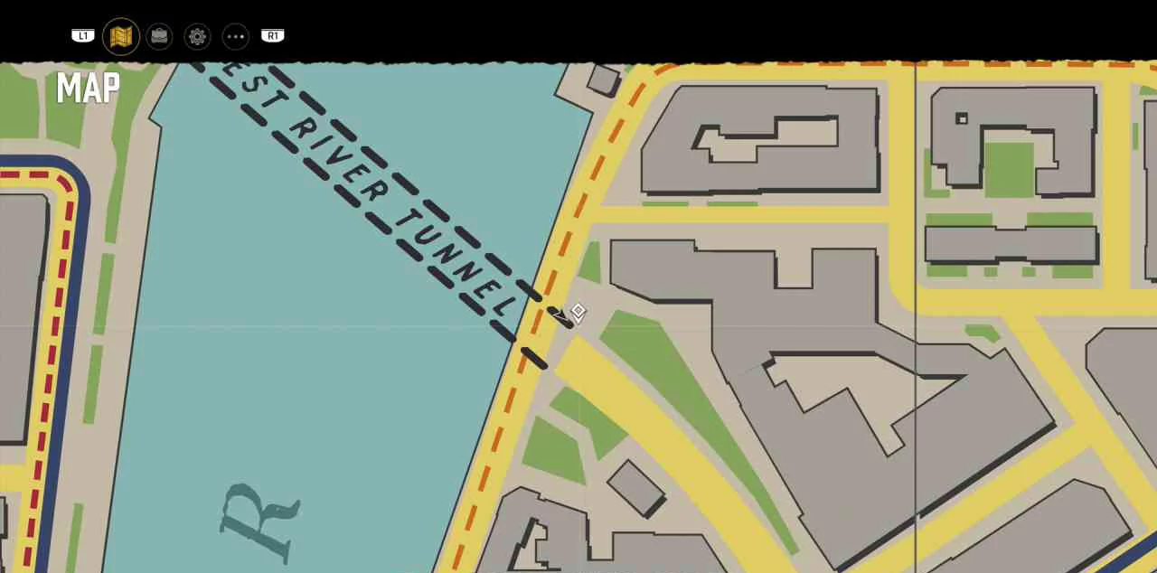 Центральный остров — там, где туннель Вест-Ривер встречается с Центральным островом на пешеходной эстакаде (на скамейке).