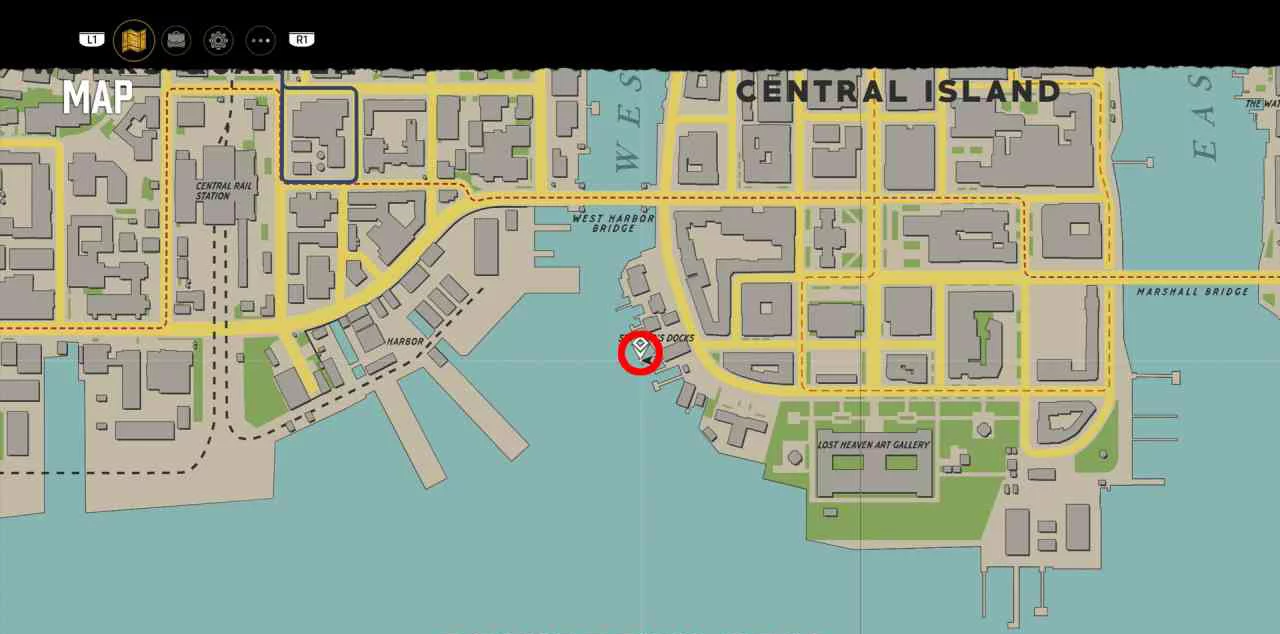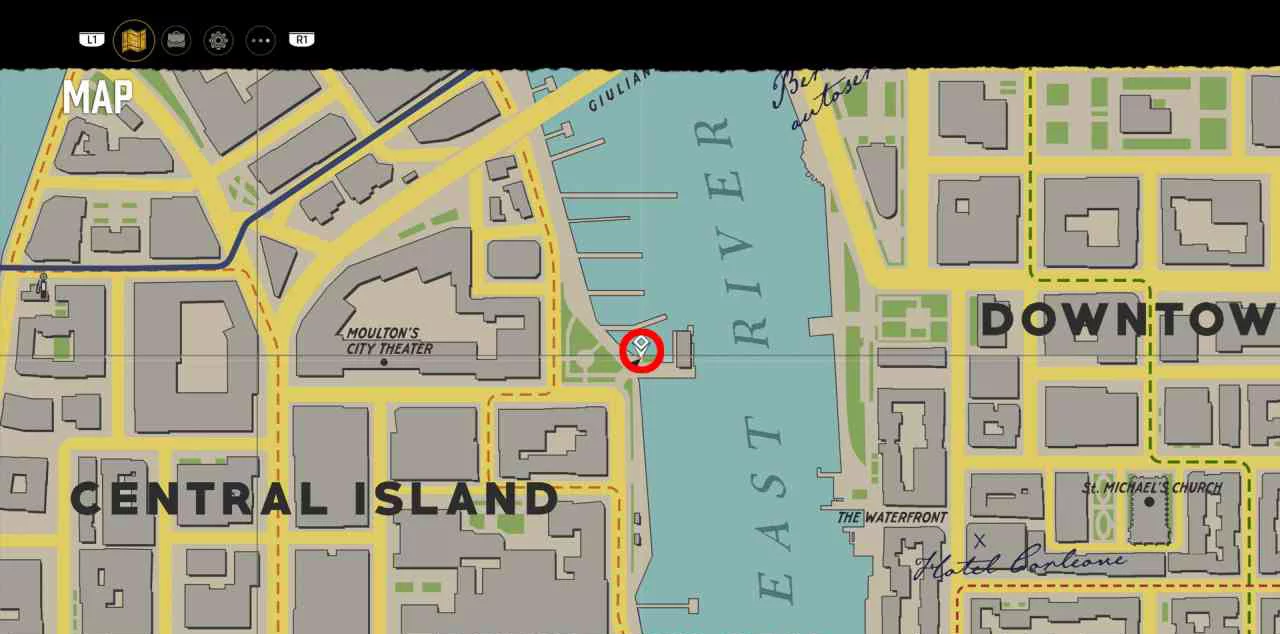 Центральный остров — в доках Святого Петра, на одном из причалов.