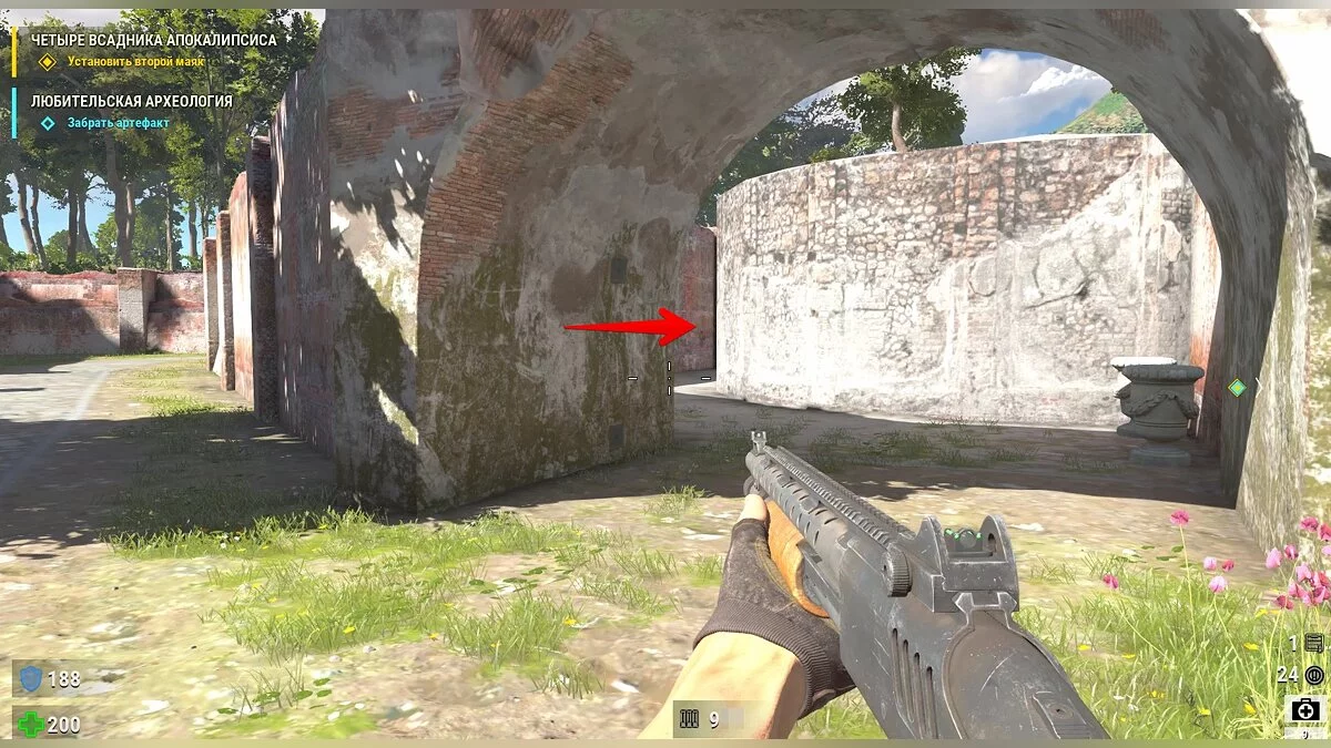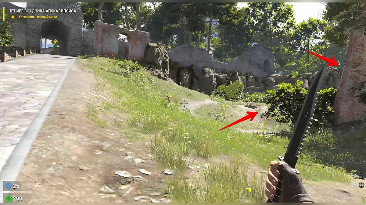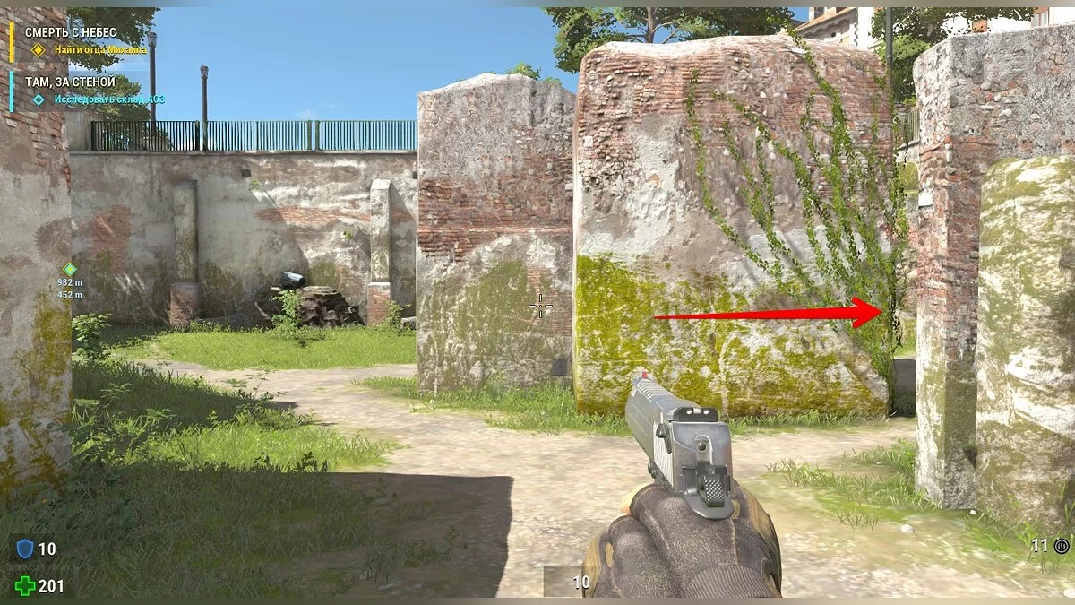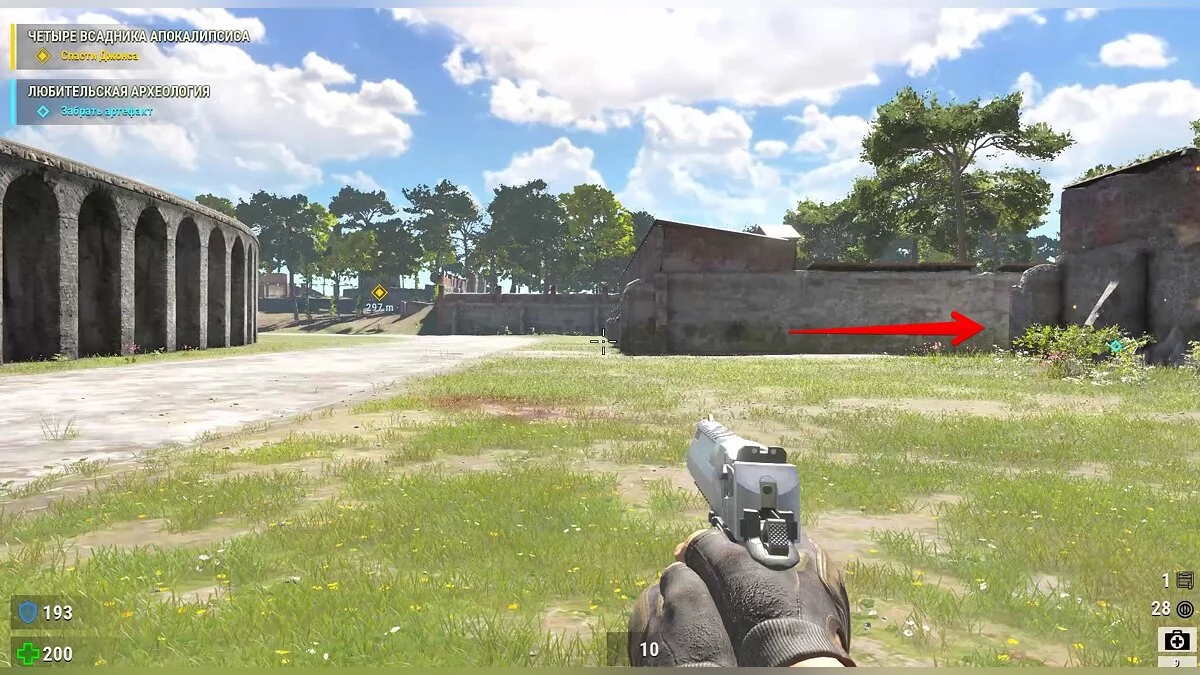 Тайник боеприпасов. Как только вы появитесь в новой главе, мы советуем хорошенько обыскать стартовую локацию. Первым делом направляйтесь в левую часть карты и осмотрите развалины за кустами. Здесь находится тайник боеприпасов.