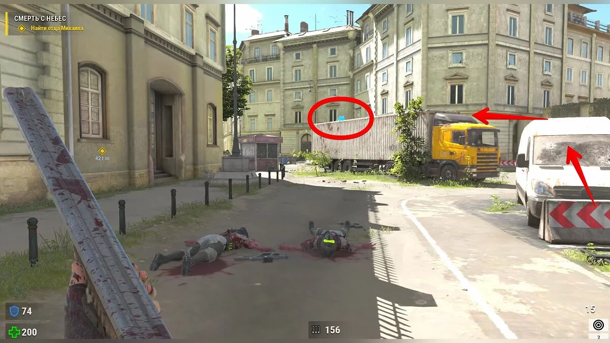 Тайное хранилище. Так как миссия довольно короткая, все секреты находятся недалеко друг от друга. Первую секретную комнату можно найти в локации с фургоном черного цвета. По правде говоря, это единственный тайник, до которого очень сложно добраться. Учитывая неповоротливость героя и постоянные баги при приземлениях на небольшие поверхности, сделать это будет действительно нелегко.