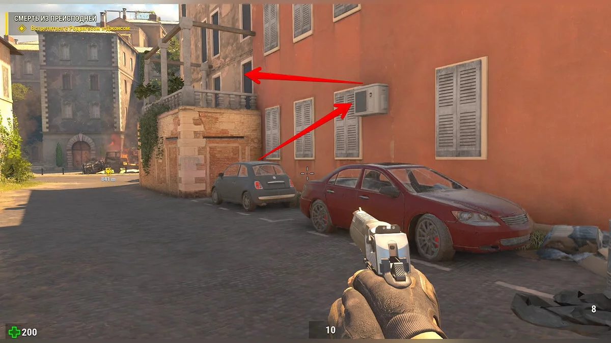 Тайник боеприпасов. Перед тем, как войти в ворота и поставить первый маячок, недалеко от вагончика на одной из стен вы увидите большой ящик с патронами. Его можно достать, если запрыгнуть на радио у стены перед вагончиком, затем прыгнуть на стену с боеприпасами.