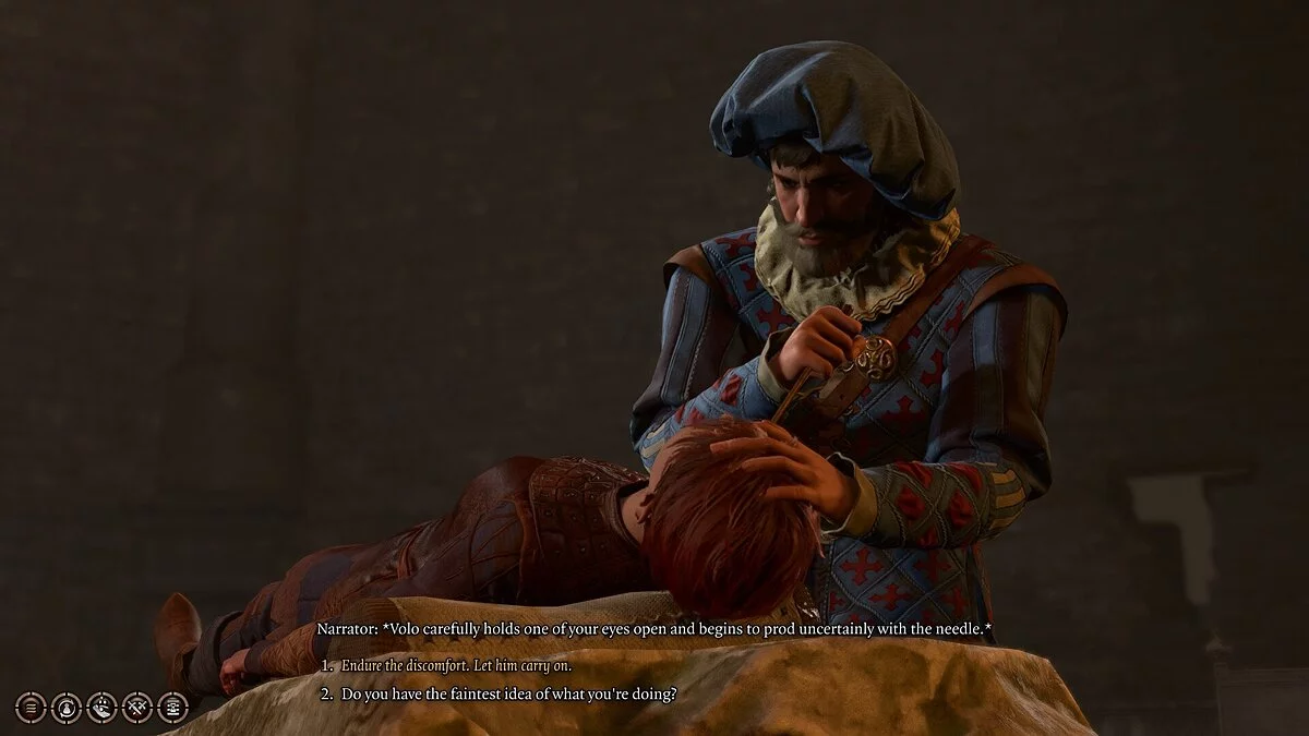 Если вы согласитесь на операцию, то увидите очень жестокую и мерзкую сцену. Если откажетесь, то игра продолжится в привычном русле. К слову, Воло будет частенько напоминать о возможности удалить паразита.
