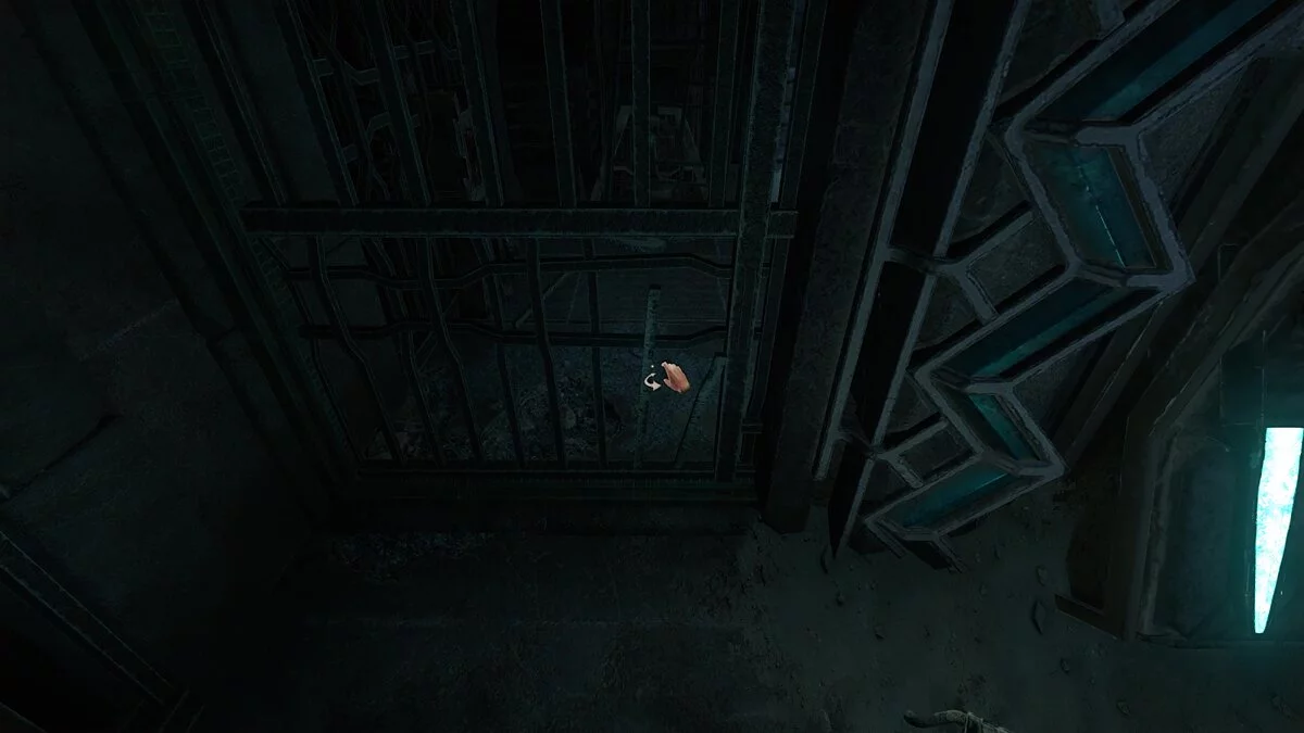 Лифт, на котором вы будете ехать в первый раз, сломается. В поисках решения вы в итоге придете в комнату с двумя силовыми кабелями. Отсоедините тот, что с левой стороны, а затем сломайте решетки справа. Через проем протяните кабель к правому блоку и запитайте его. После этого можно возвращаться в зал с лифтами и подниматься.