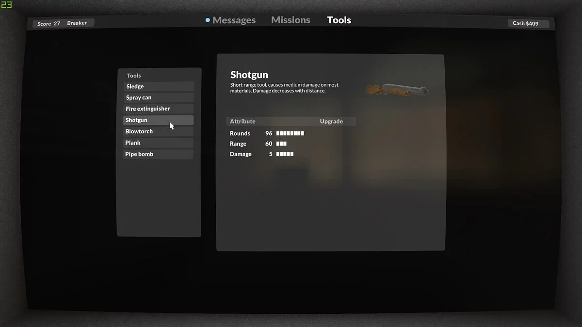 Открыть новое оружие и инструменты можно единственным способом — выполняя сюжетные квесты. После завершения очередной миссии вы будете получать один или несколько новых инструментов, которые будут храниться в вашем ангаре до момента их сбора. Вы также можете улучшать некоторое оружие, чтобы повысить его боезапас и эффективность. Сделать это можно при помощи денег и компьютерного терминала в ангаре.