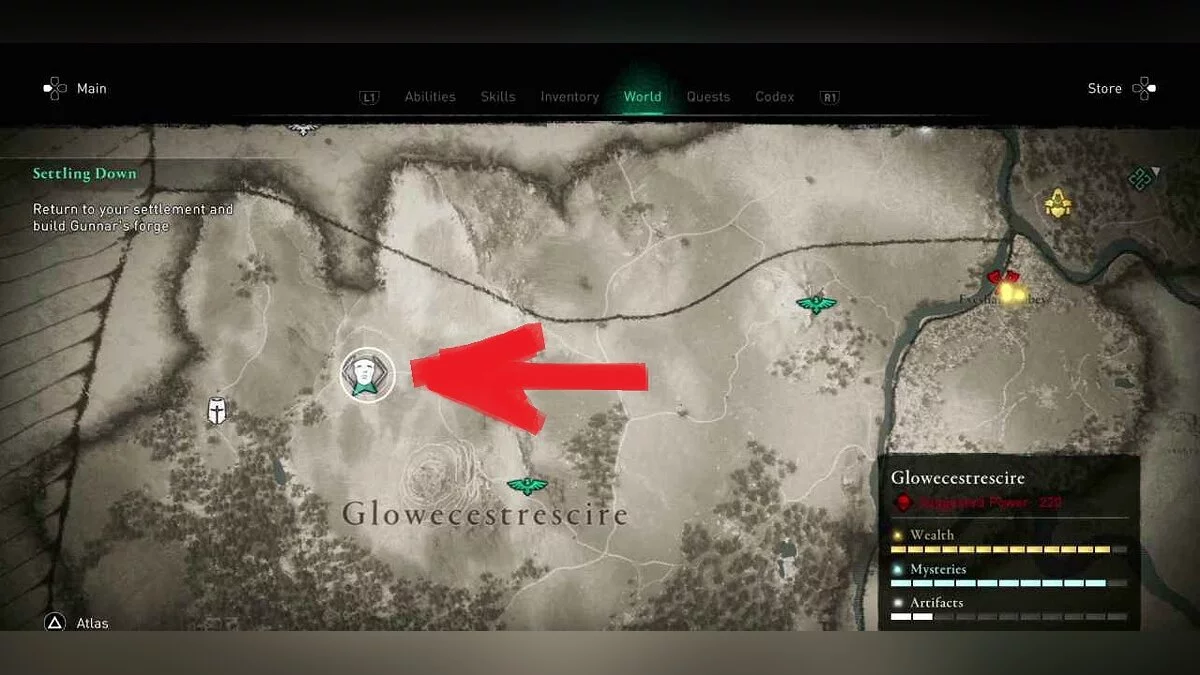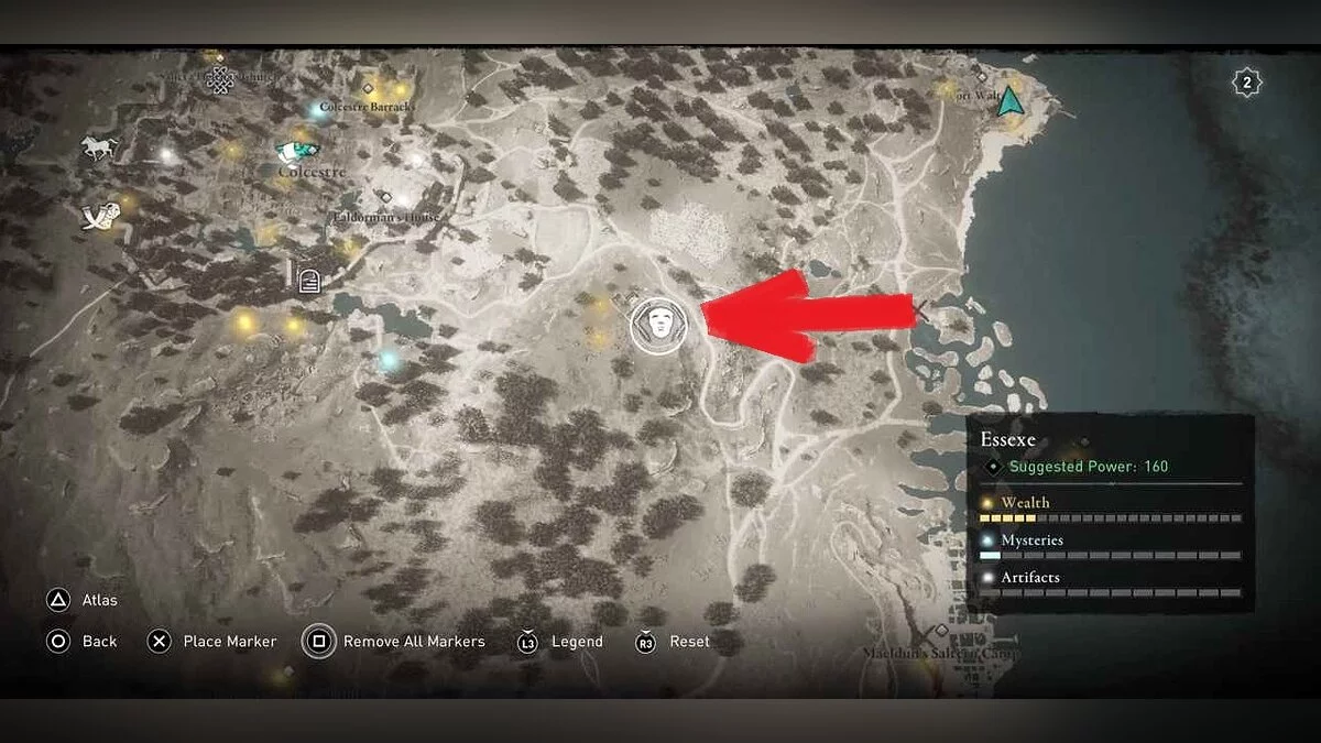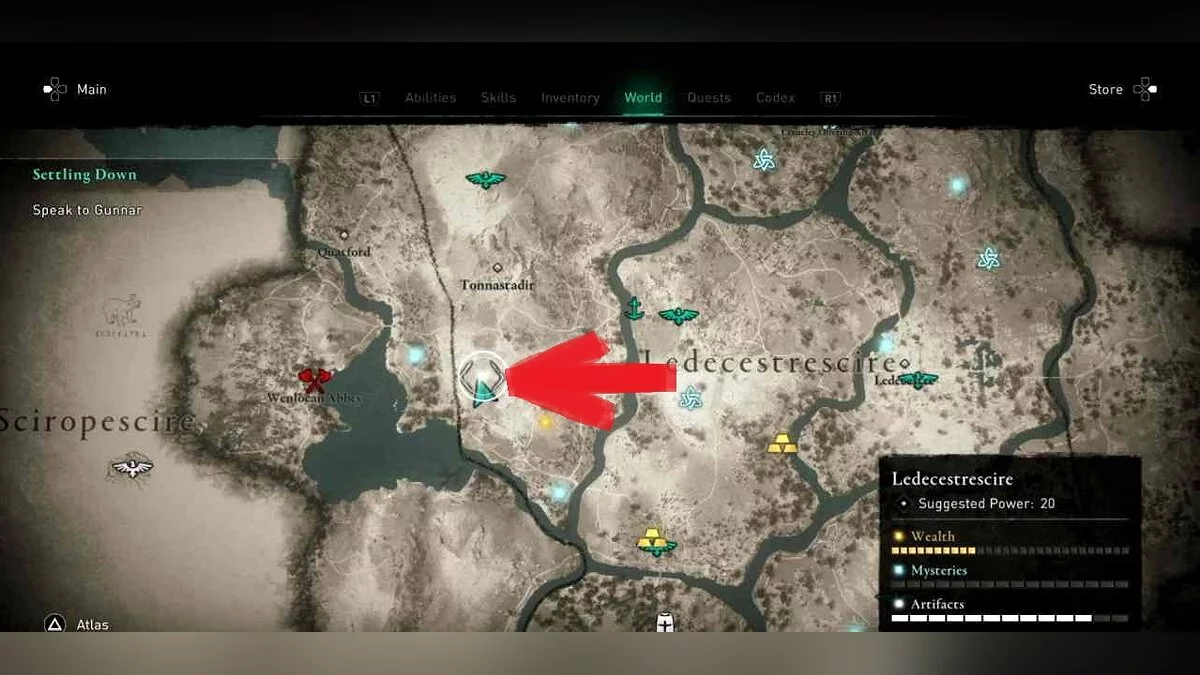 На юго-востоке от города Ледечестер есть руины. Найдите статую и сломайте деревянный пол рядом с ней. Спускайтесь вниз и бегите вперед. В дальнем конце коридора вы увидите каменную фигуру. В ее руке лежит римский артефакт.
