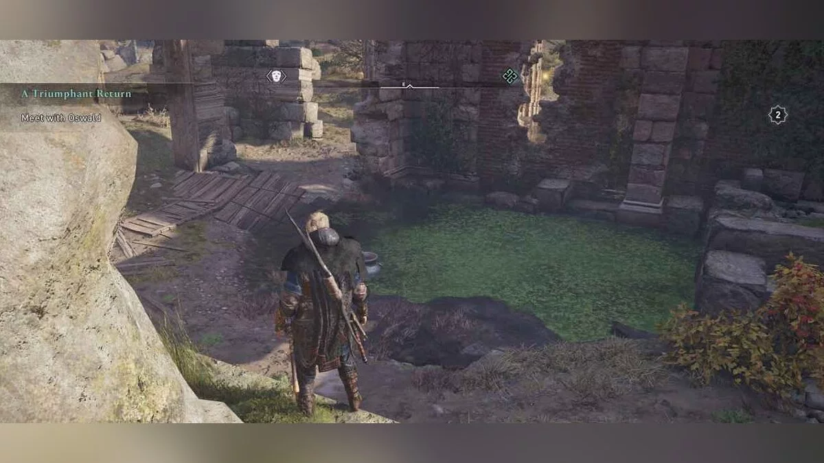 Отправляйтесь на север от города Ледечестер к руинам. На правой стороне вам нужно найти лестницу. Поднимайтесь по ней, берите в руки вазу и кидайте ее на обломки, чтобы пробить пол. Спускайтесь вниз и забирайте артефакт.