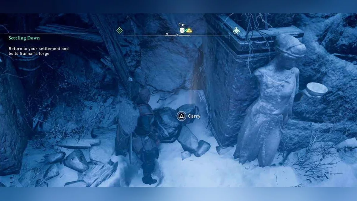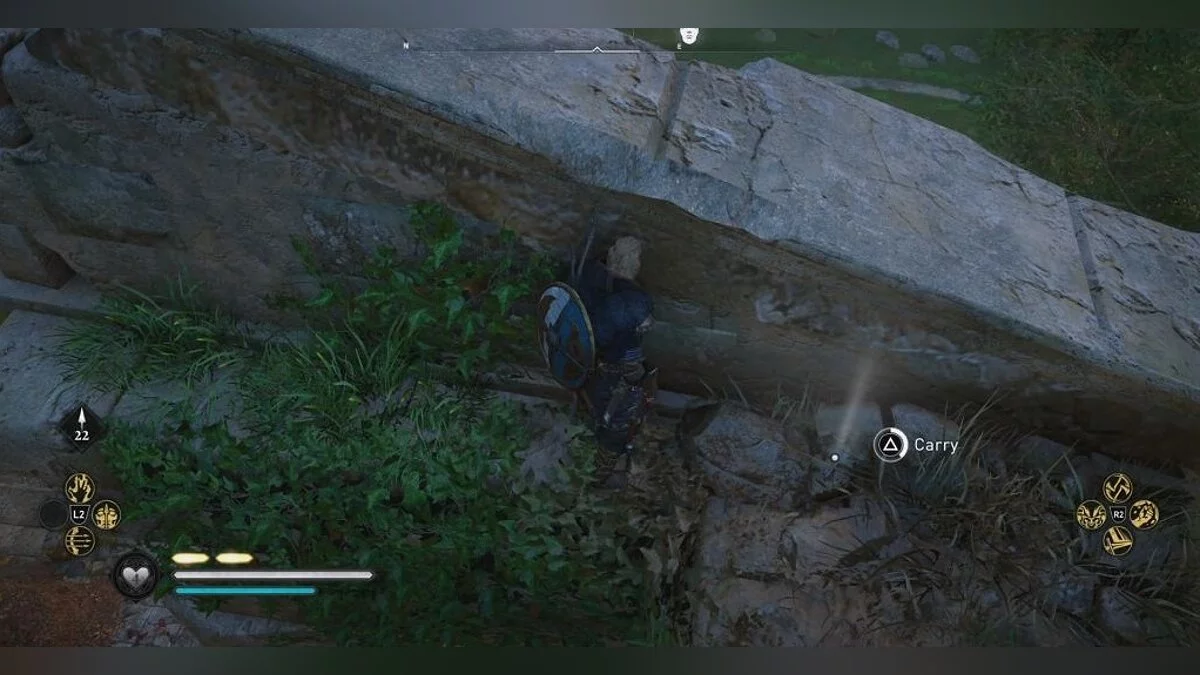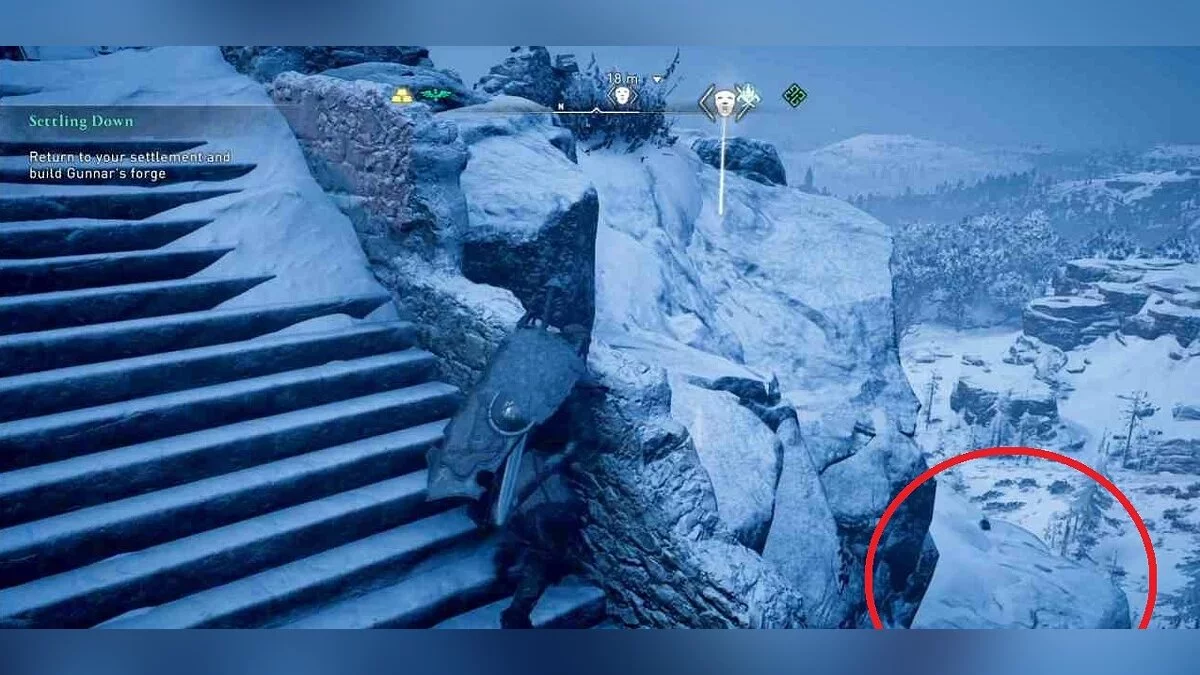 Чтобы добраться до этого артефакта, вам нужно протиснуться через небольшую трещину в скале. Ее местоположение указано на скриншоте.