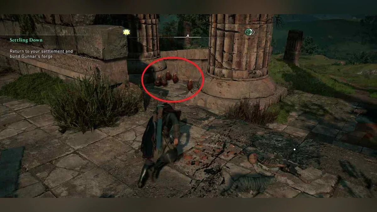 Чтобы добраться до артефакта, вам нужно расчистить небольшой завал. Для этого отправляйтесь на север от указанной точки и возьмите кувшин с маслом. Используйте его как взрывчатку, после чего забирайте артефакт.