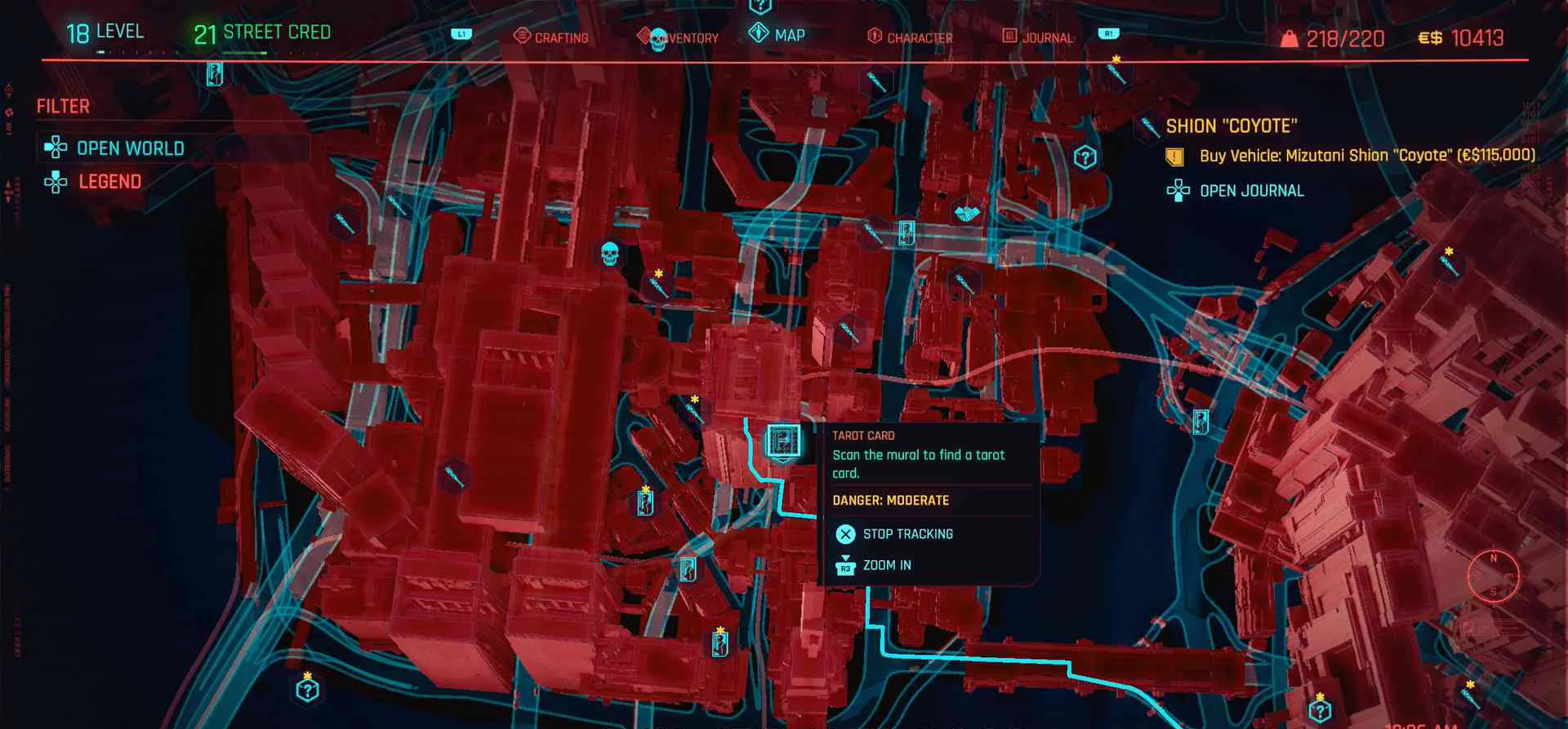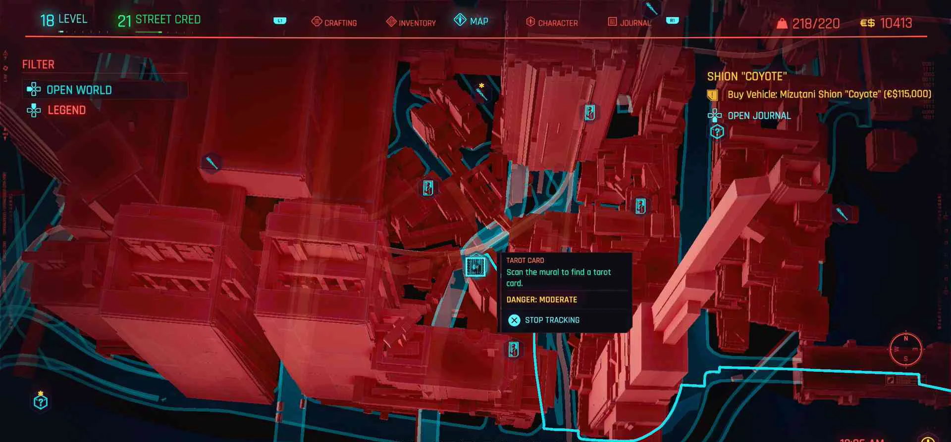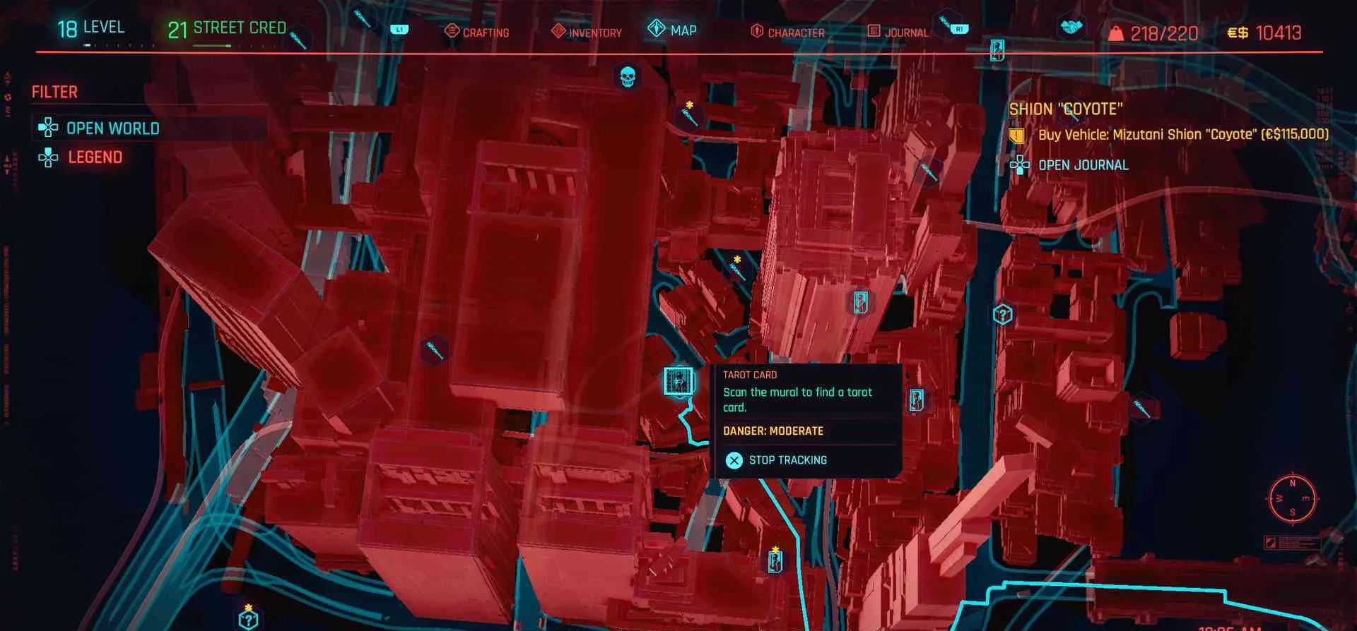 Карты таро — это один из видов коллекционных предметов в Cyberpunk 2077. Граффити постепенно отмечаются на вашей карте во время прохождения истории. Все они будут доступны на вашей карте после завершения сюжета. Используйте сканер, чтобы добавить изображение со стены, после чего вы будете вознаграждены картой таро.