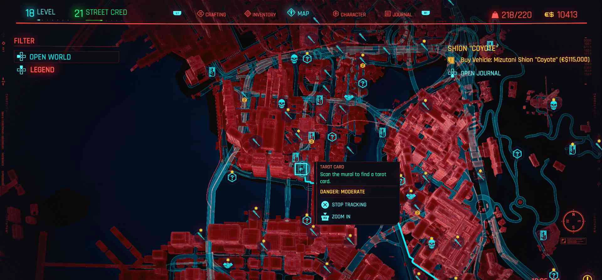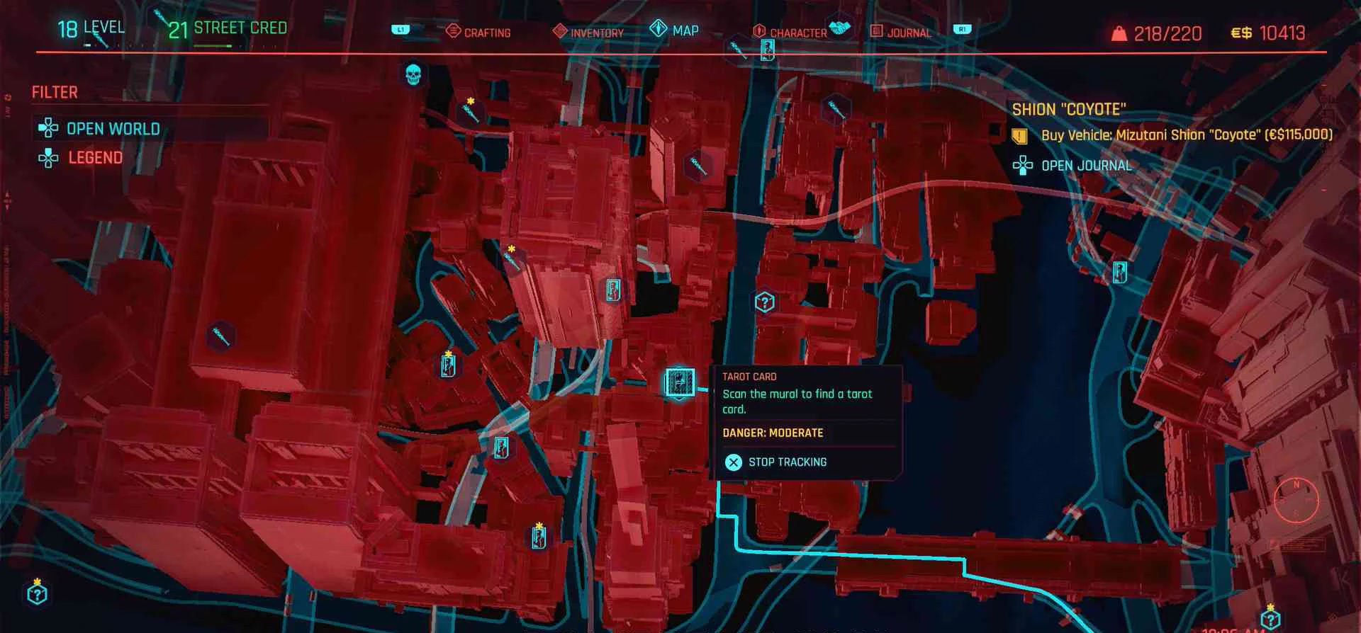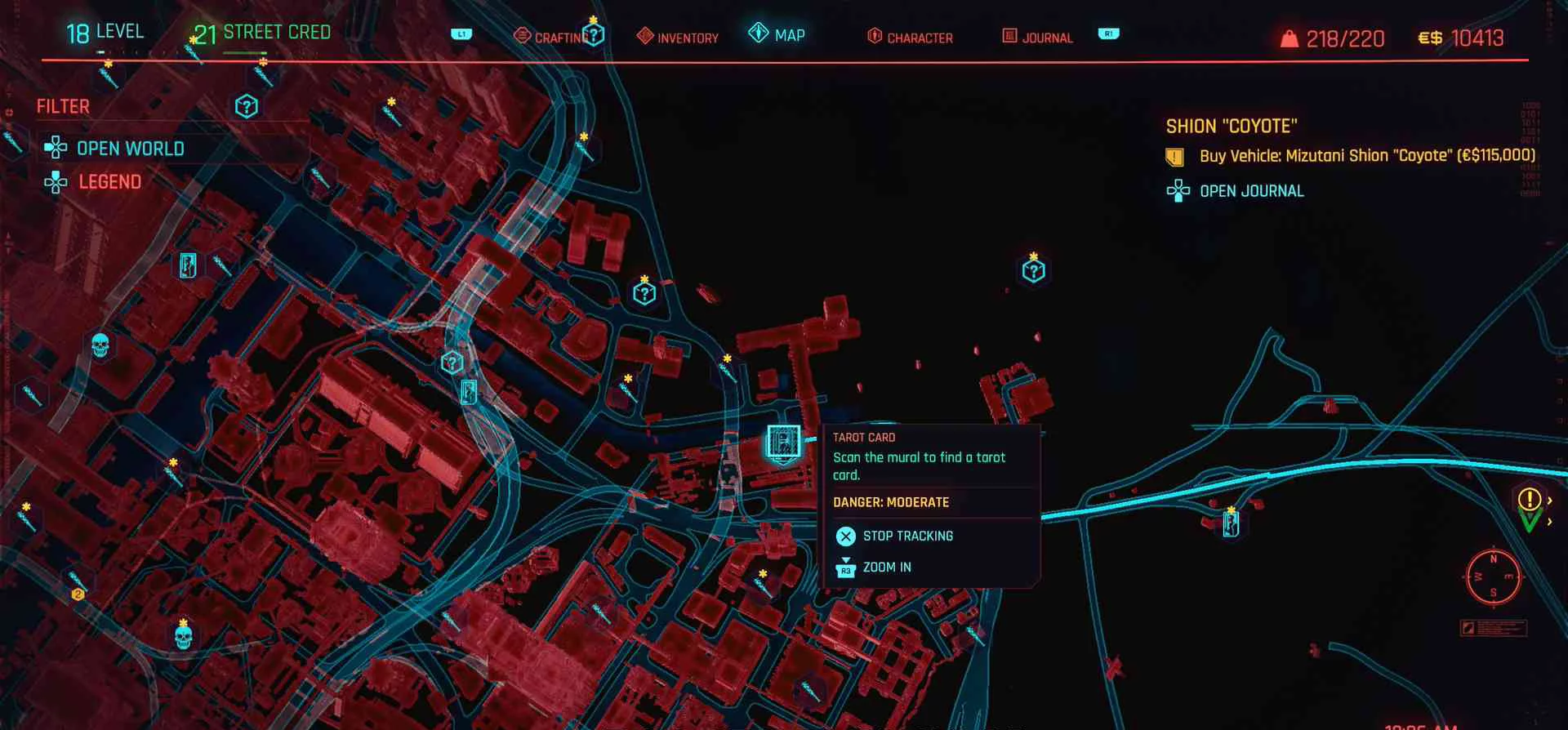 Карты таро — это один из видов коллекционных предметов в Cyberpunk 2077. Граффити постепенно отмечаются на вашей карте во время прохождения истории. Все они будут доступны на вашей карте после завершения сюжета. Используйте сканер, чтобы добавить изображение со стены, после чего вы будете вознаграждены картой таро.