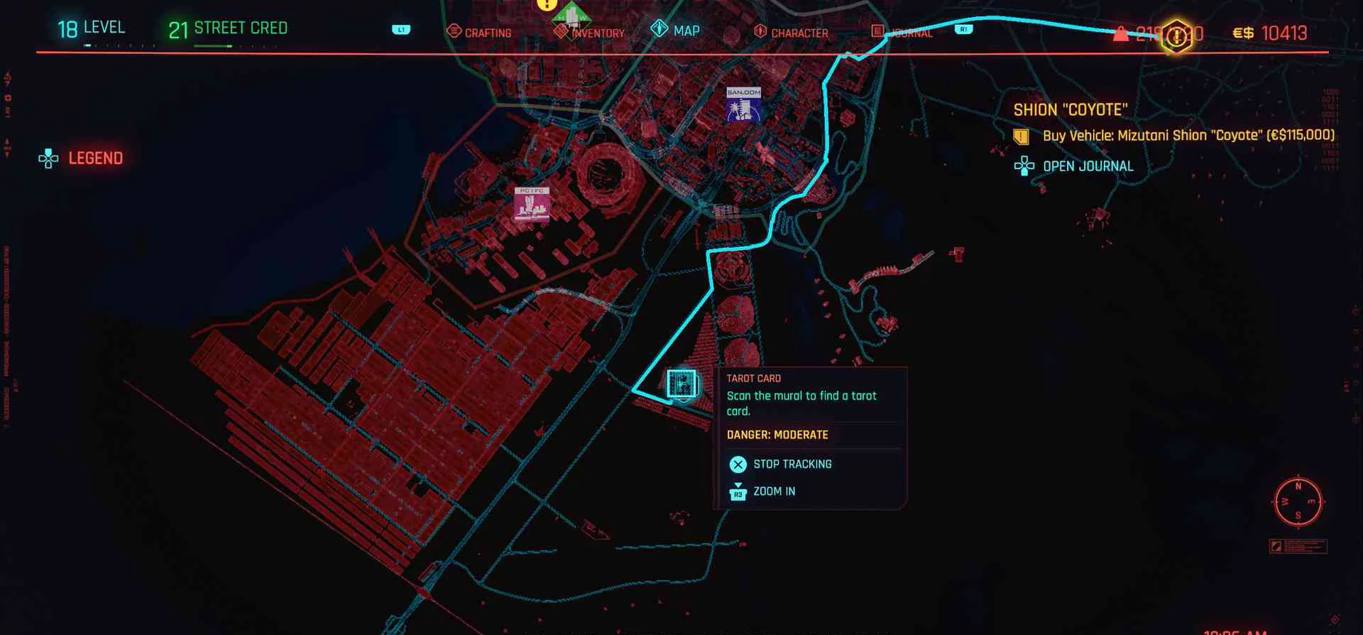 Карта находится в районе Ранчо Коронадо Найт-Сити. Можно найти в хижине к югу от станции скоростных поездов. Подойдите к фреске и осмотрите ее, чтобы забрать эту карту.
