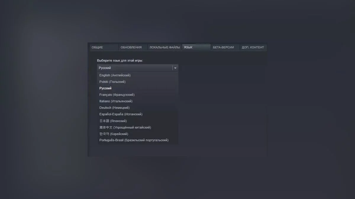 Как в Cyberpunk 2077 включить русскую озвучку (или другие языки) в Steam