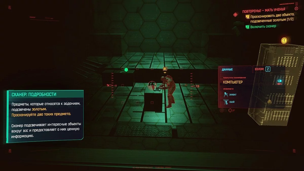 - В комнате управления осмотрите небольшой терминал в левой части помещения, взломайте и подключитесь к нему. С его помощью вы сможете переключаться между камерами в этом и соседнем помещениях.
