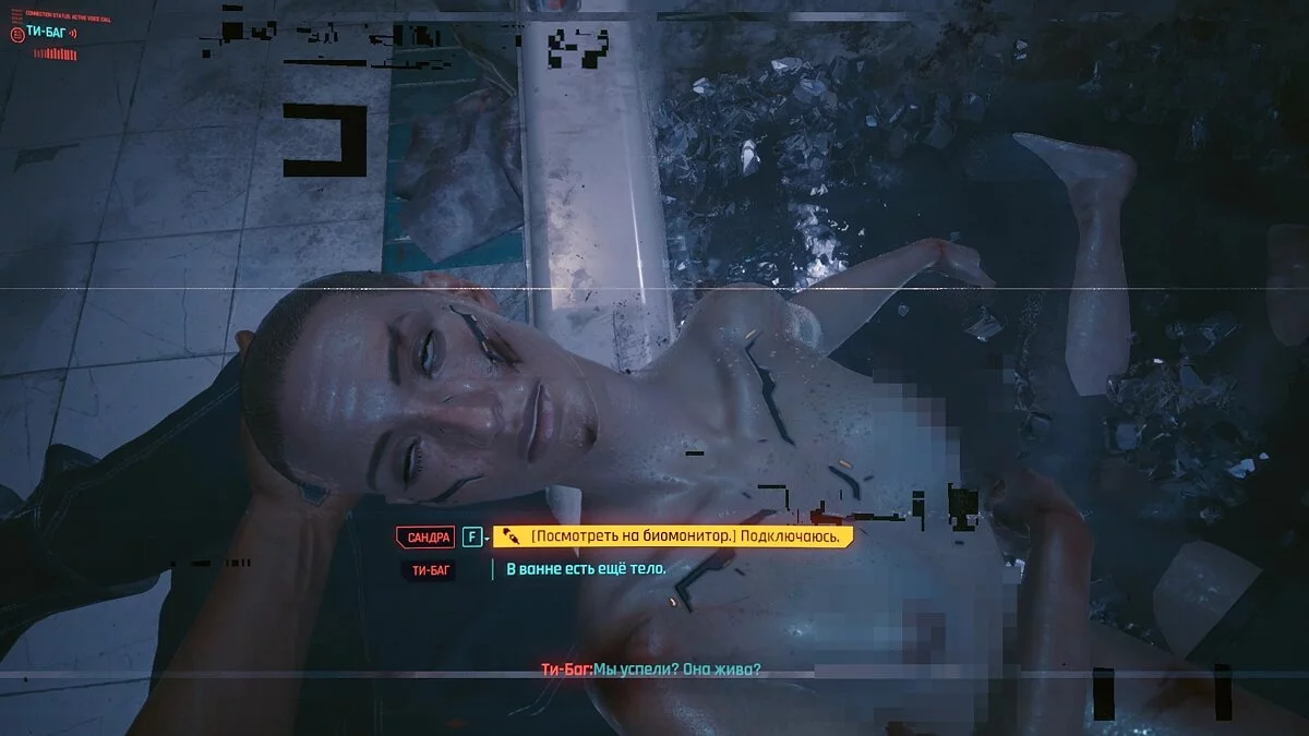 Следуйте за Брижитт в крипту и забирайтесь в ванную со льдом. Вы увидите воспоминания Джонни Сильверхенда в небольшом подквесте «Красота не умирает». Смотрите несколько видеороликов, затем Джонни окажется на улице рядом со своей девушкой Альт. На пару нападут бандиты. Вы можете выбрать «Бежать» или «Атаковать», но исход будет всегда один. Джонни ранят, а его спутницу погрузят в фургон и похитят.