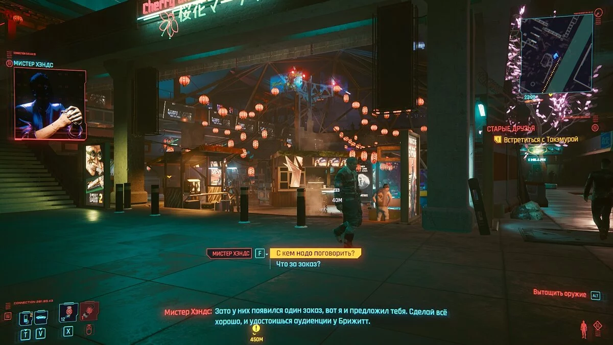 Это задание начнется сразу по завершении предыдущего квеста. Девушка назначит вам встречу в Джапан-тауне в ночное время суток. Чтобы узнать больше информации о чёрных брейндансах на Чпок-стрит, мы советуем посетить Патинко-салон Вакако. Если вы не успели забрать у неё награду за предыдущее задание, то визит к ней будет весьма кстати. Также она направит вас к владельцу секс-шопа.