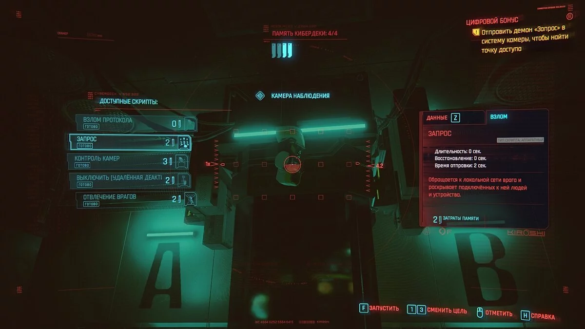 Этот квест — своеобразное обучение по использованию цифровых программ «Демонов». С вами свяжется Ти-Баг и направит к одному из местных нетраннеров. Отправляйтесь в отмеченное на карте место, поднимитесь на второй этаж и поговорите с торговцем. Нужный вам скрипт можно получить бесплатно. Для этого попросите показать все товары и выберите скрипт, который отмечен восклицательным знаком. Установите его в инвентаре (отсек «Кибердека»), затем просканируйте камеру в помещении. Отправьте скрипт «Запрос», чтобы увидеть, в какой терминал камера отправляет сигнал. Взломайте этот терминал и отключите камеру.