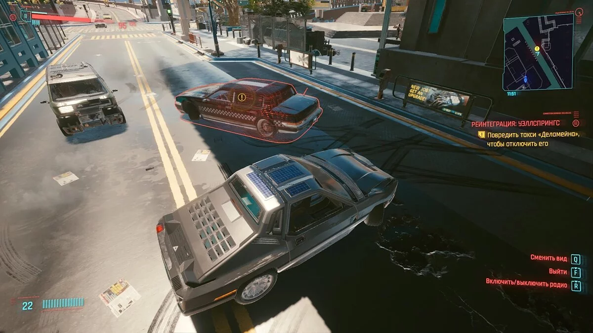 Когда в сюжетном прохождении доберетесь до второго акта, спуститесь на парковку и садитесь в свой автомобиль. В этот момент ваше авто протаранит такси Деламейн, что очень удивит главного героя. Задание завершится, а вместо него начнется квест «Компенсация».