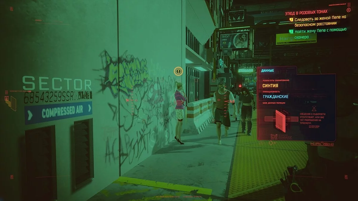 Задание можно взять в любое время неподалеку от точки быстрого перемещения «Рынок: Цветок Сакуры». Слева от большой лестницы вы увидите торговца брейндансами. Вы можете заплатить за брейнданс, но чтобы довести квест до логичного финала, вам также потребуется согласиться на просмотр записи при помощи оборудования торговца. Заплатите еще 4000 евробаксов, пройдите в здание неподалеку и взаимодействуйте с плеером.