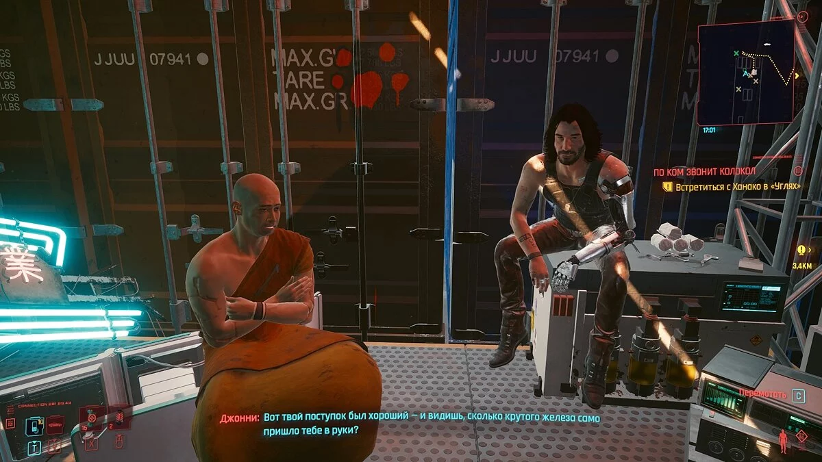 Обойдите здание и поднимитесь на платформу перед вами. Убейте всех врагов, используйте сканер на украденном грузе в одном из контейнеров (дополнительно) и победите Грейсона. Парень попытается откупиться от вас и отдаст ключ от контейнера с автомобилем Сильверхенда (убивать его или нет — решать вам). В любом случае заберите автомобиль и отправляйтесь на трассу 101 к месту захоронения Джонни, после диалога с которым квест завершится.