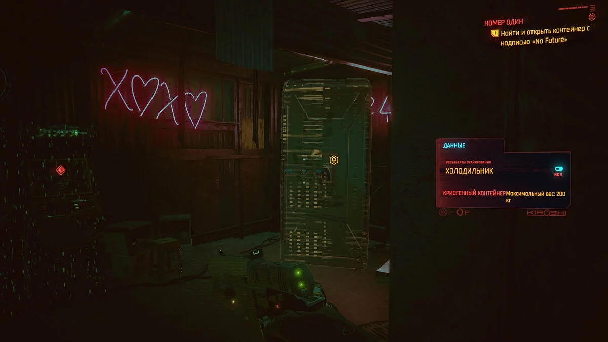 Задание можно взять у странного мужчины в клубе «Посмертие». Он предложит вам работу напрямую, без участия фиксеров. Это очень заинтересует Джонни, поэтому он посоветует быть осторожнее. Доберитесь до маркера на карте, спуститесь к берегу и осмотрите крайнее здание у воды слева. Внутри здания вы увидите большой холодильник. Откройте его и свяжитесь с заказчиком.