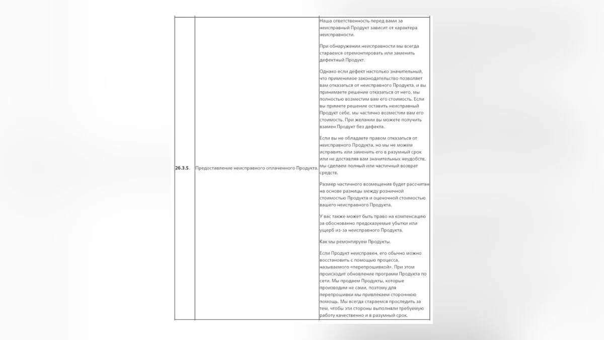 - Приложите к ней видео, ответ техподдержки, чек о покупке и скриншот из пользовательского соглашения, на котором расписано, что вам обязаны возместить стоимость неисправного продукта (п. 26.3.5). Отправляйте это в техподдержку Sony по тому же адресу — info@sony.ru.