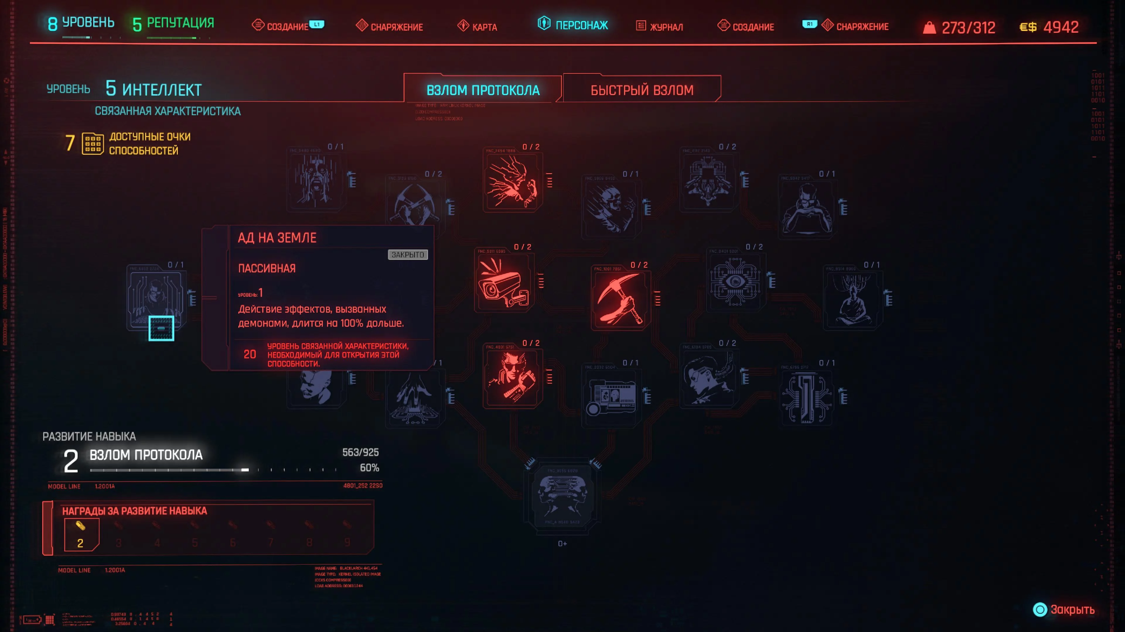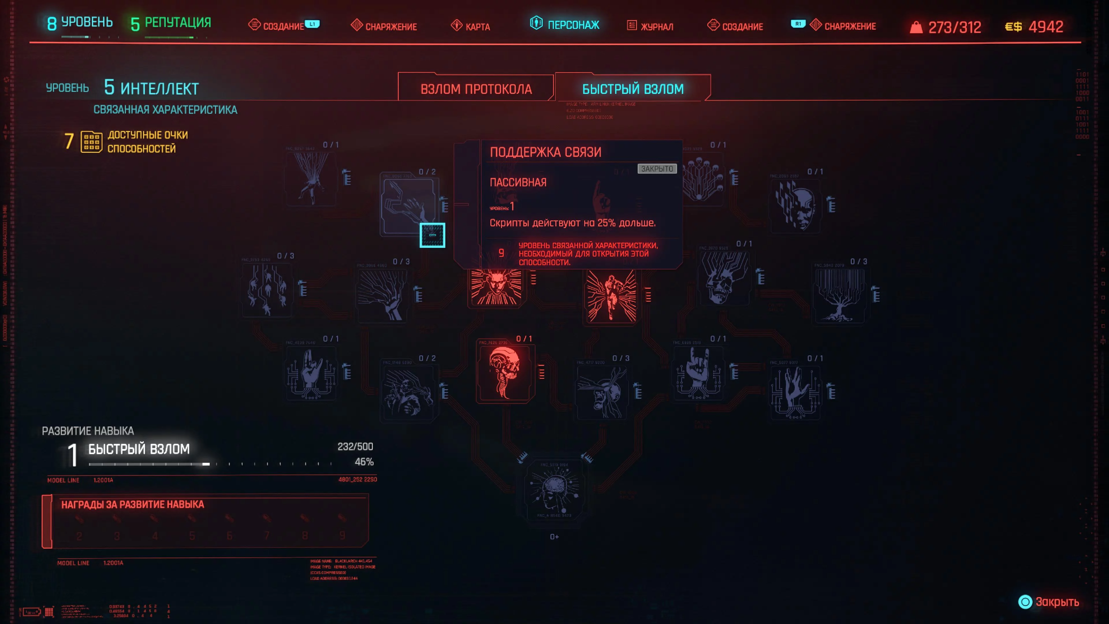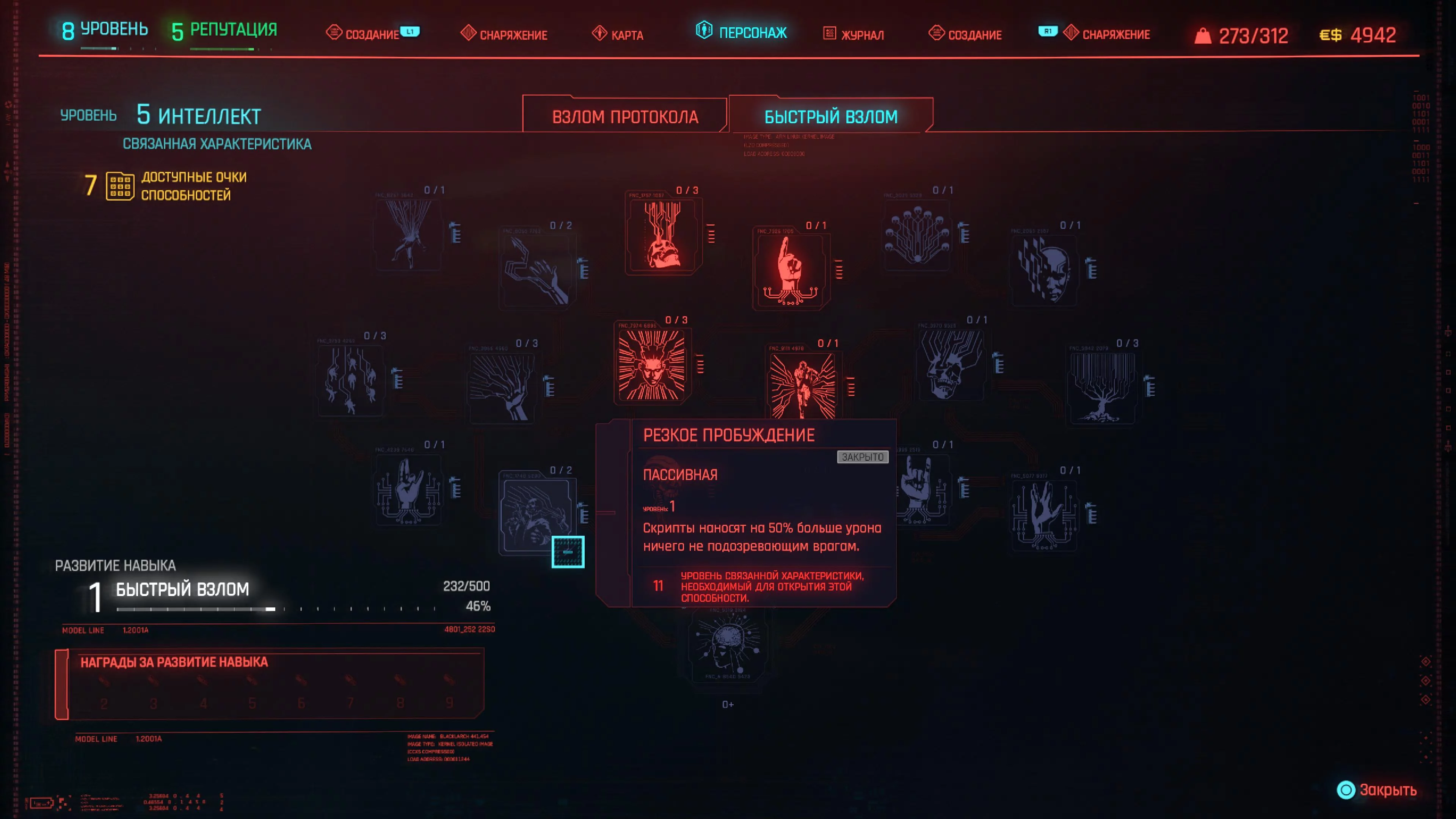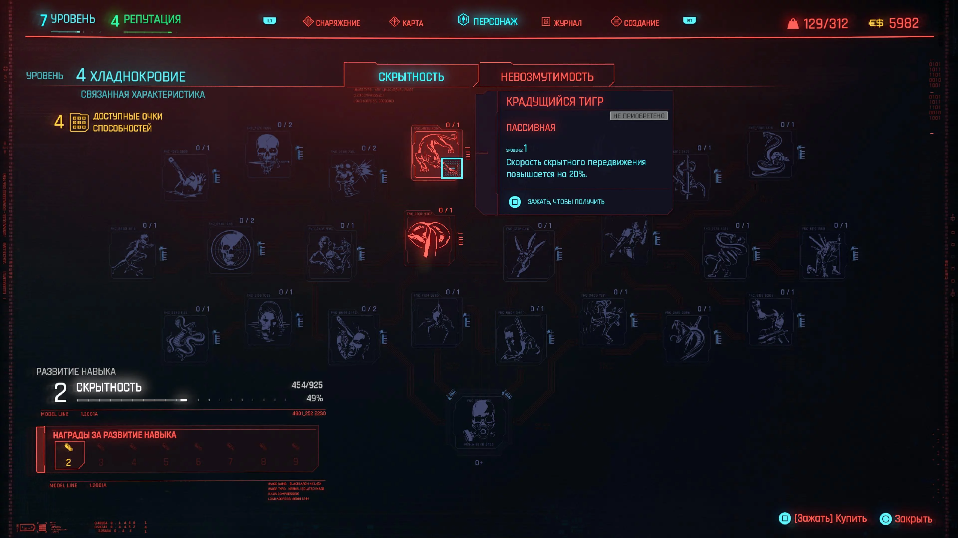 Навыки — это группа способностей, связанных с характеристикой. Выполняя действия, относящиеся к навыку, такие как взлом или бег, вы повышаете их уровень. По мере повышения уровня вы будете получать награды, связанные с этими действиями.