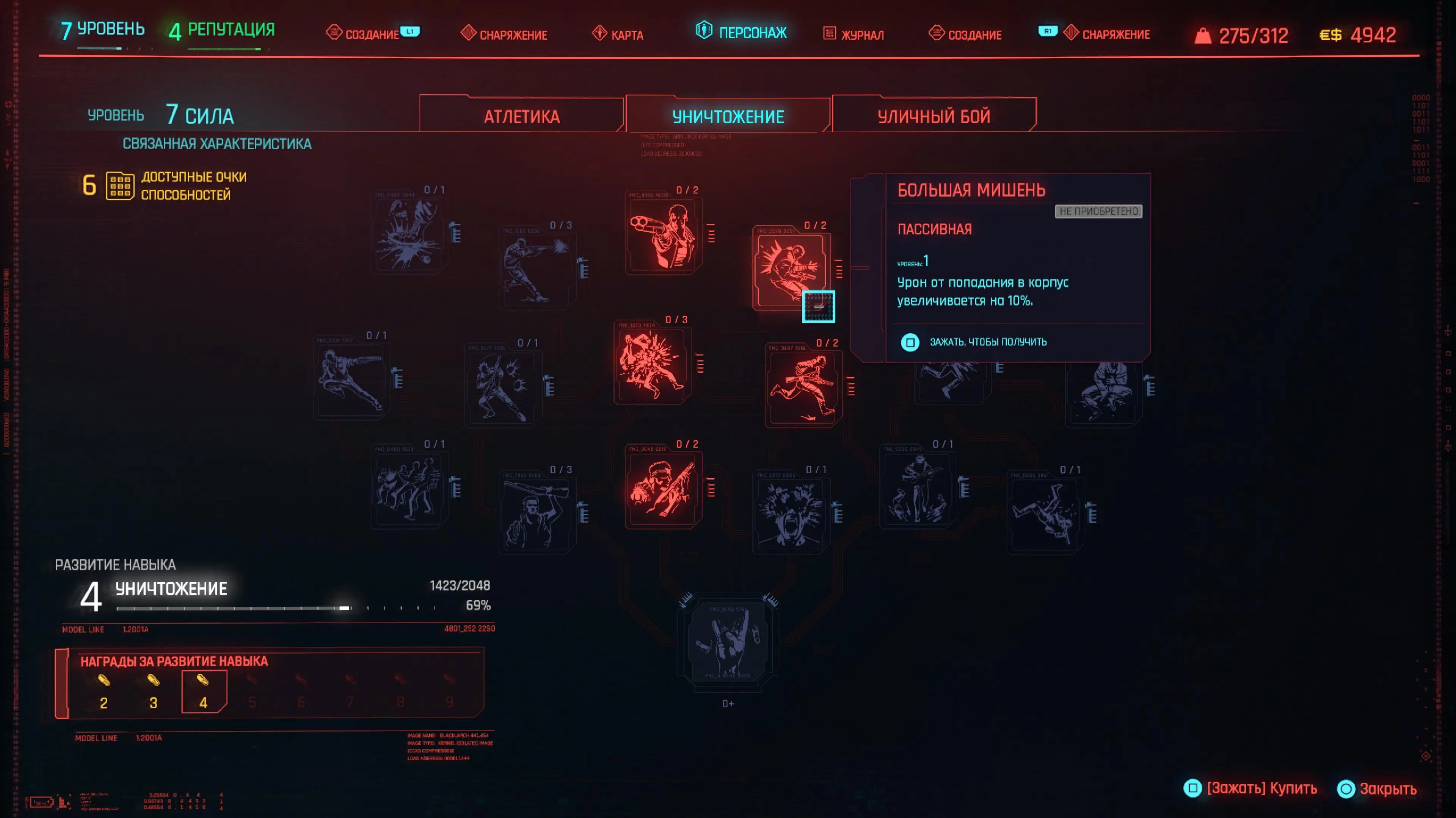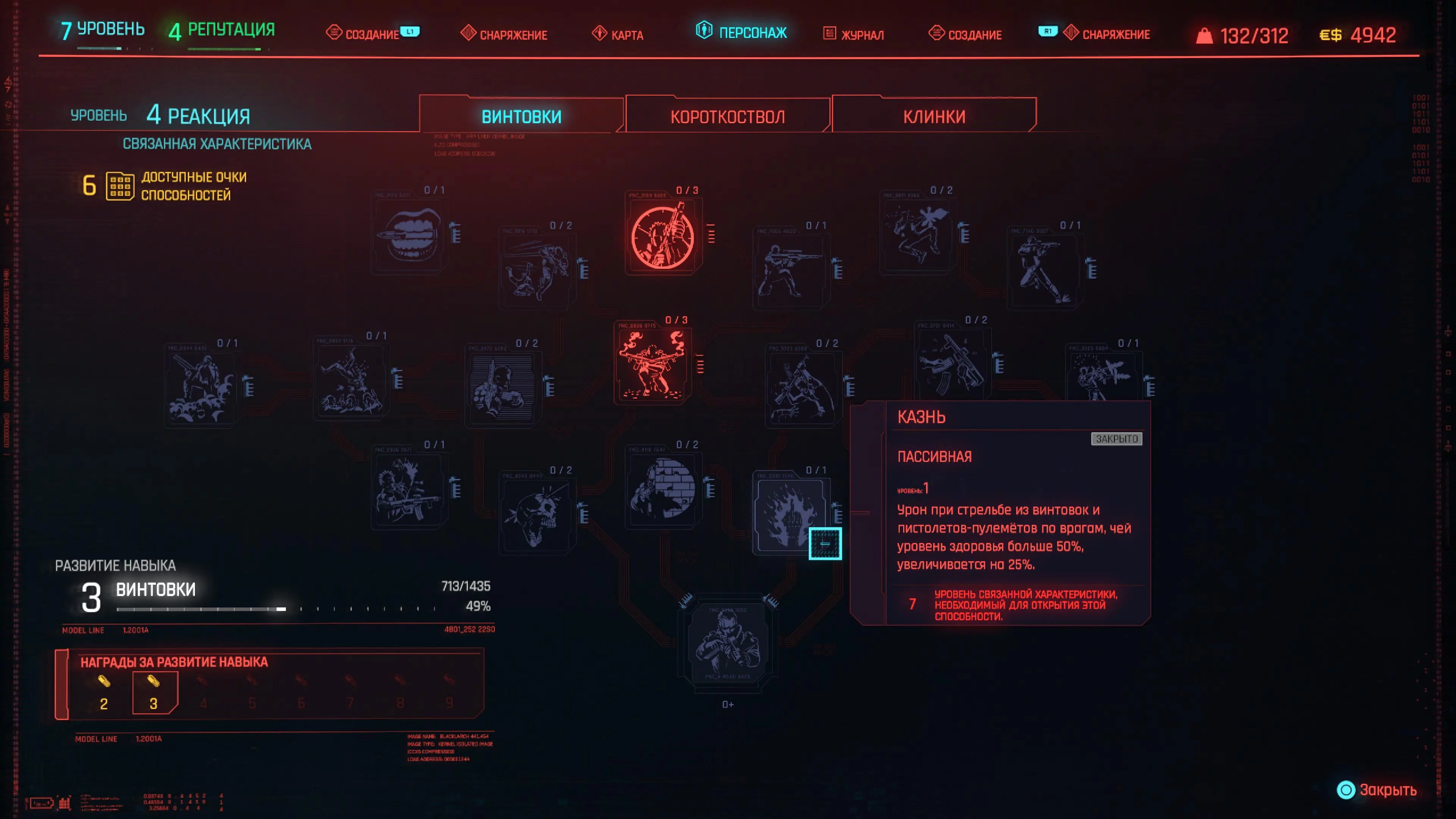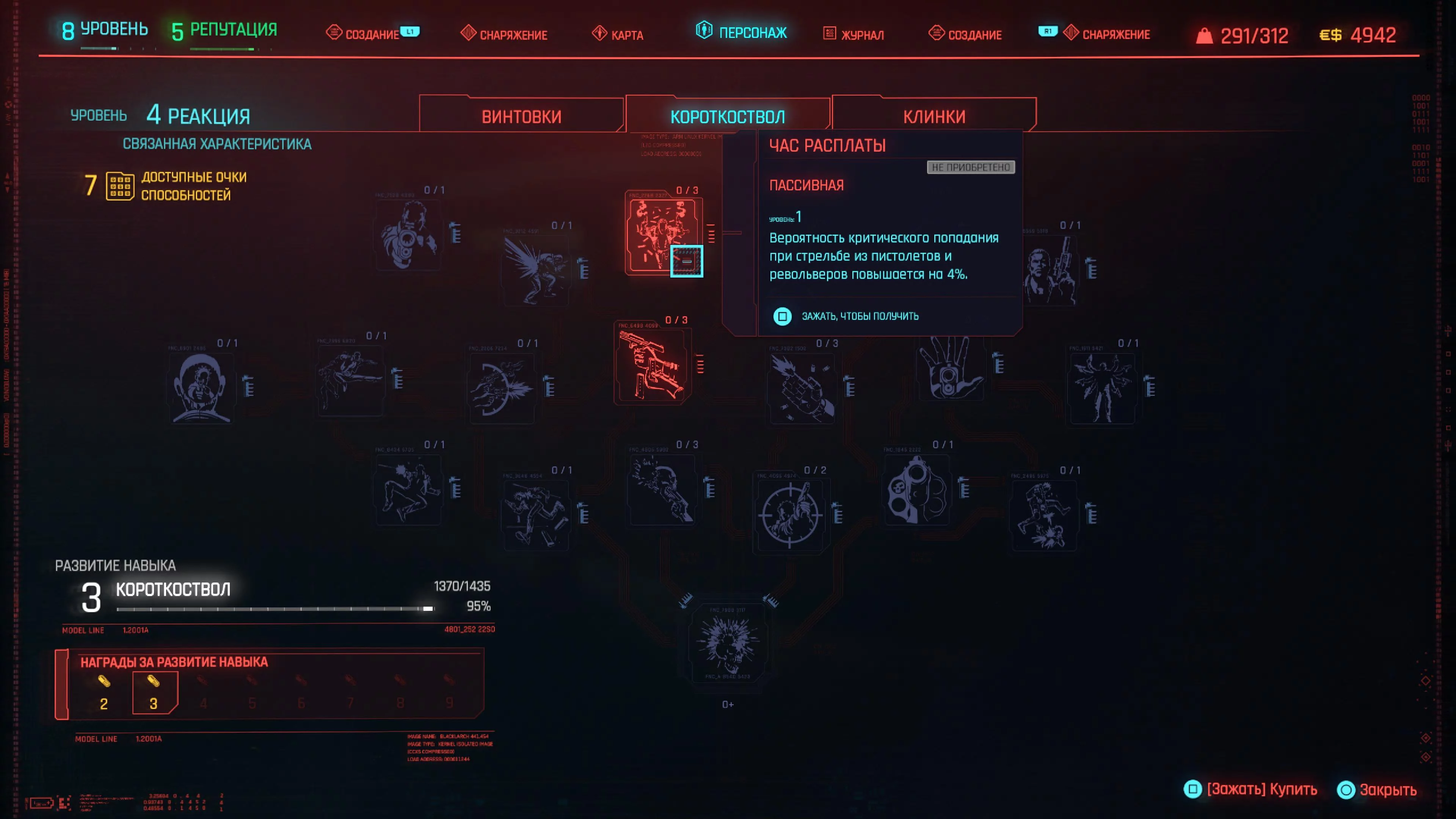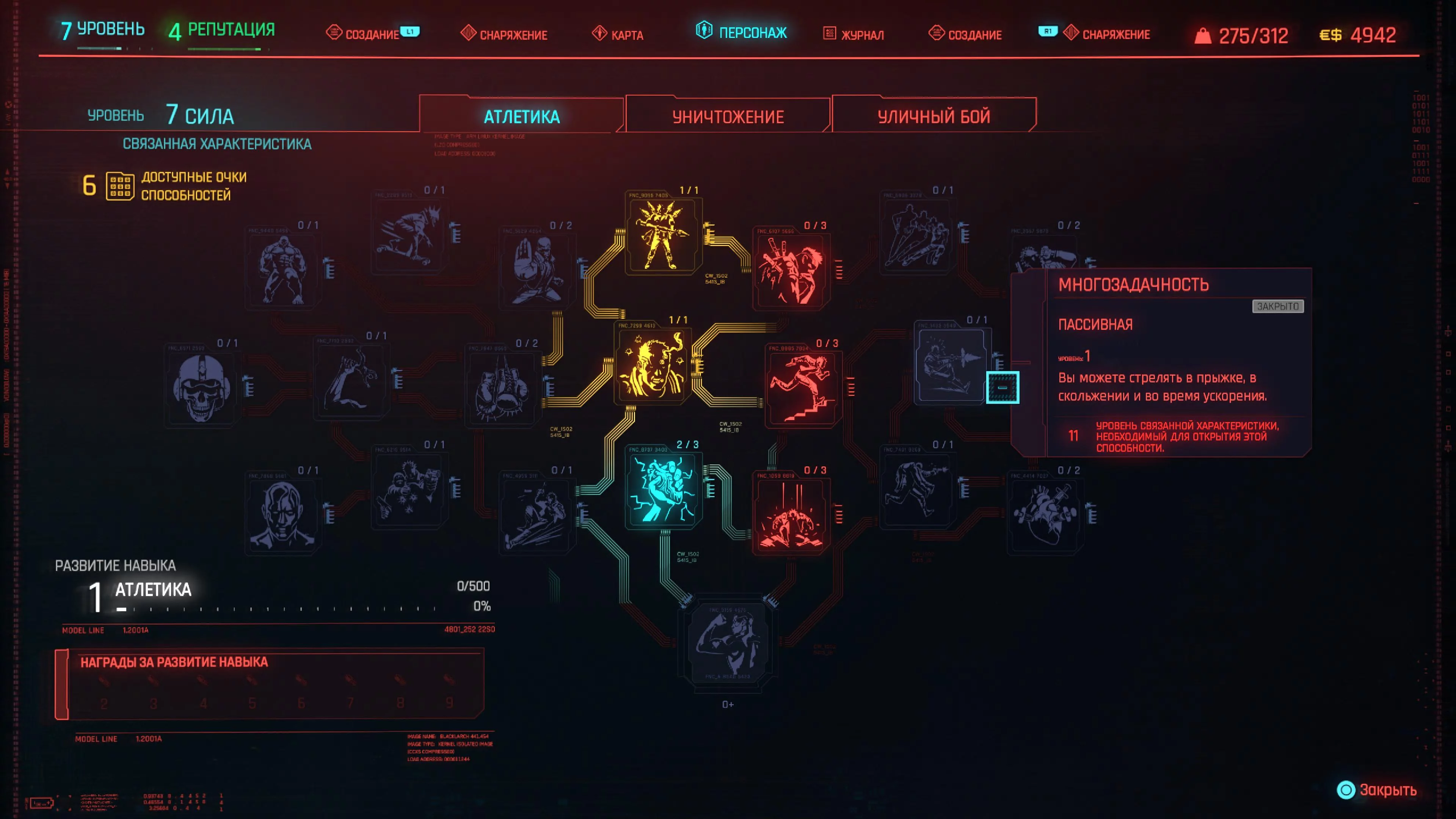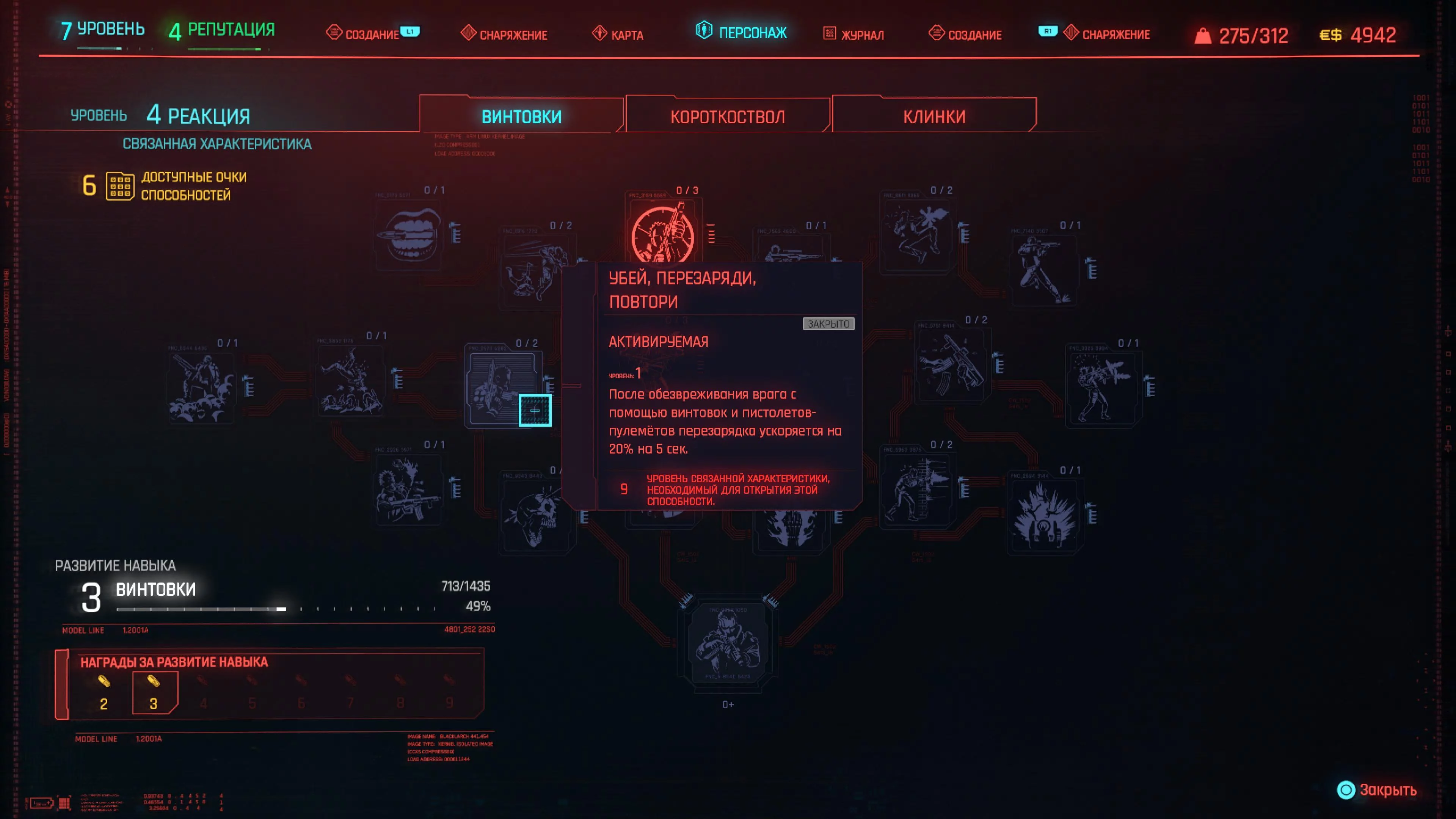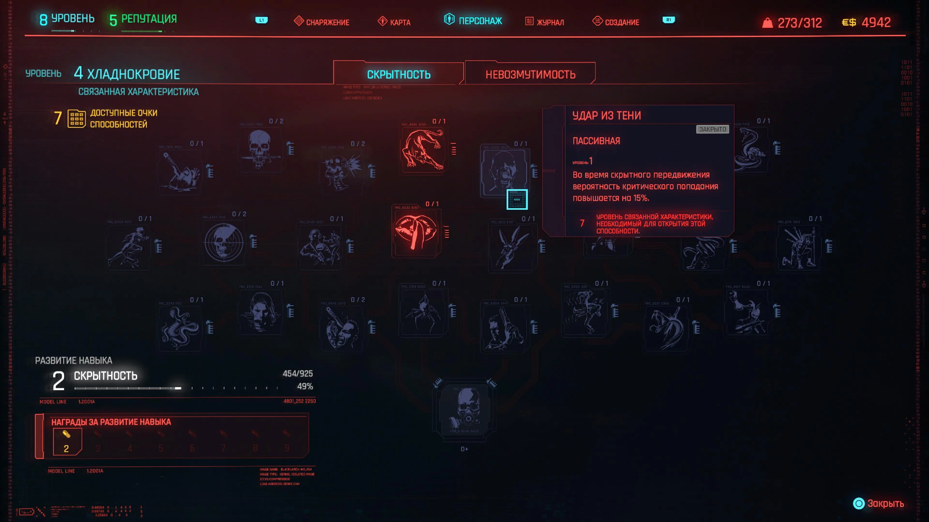 Реакцию и силу прокачиваем равномерно. Это потому, что от них нам нужны пассивные эффекты, которые не только помогут выжить, но и улучшат урон. Хладнокровие оставляем напоследок, потому что здесь нужны серьезные вложения очков, чтобы заметить большую разницу.